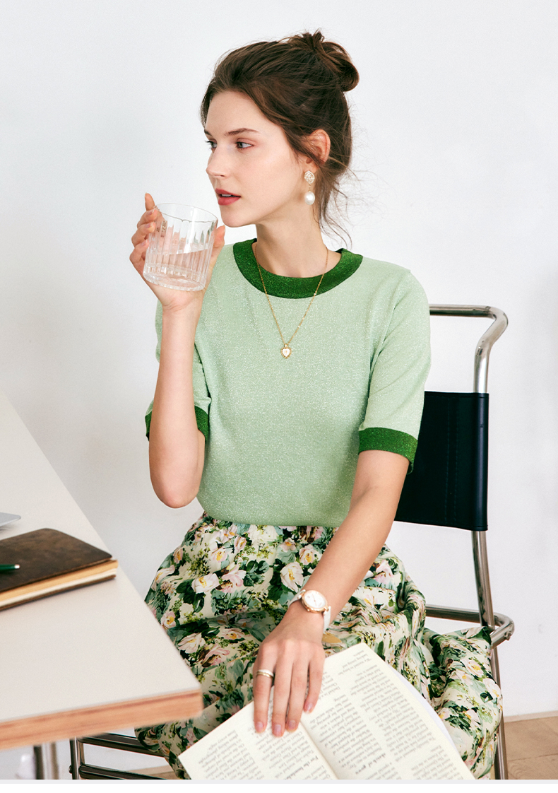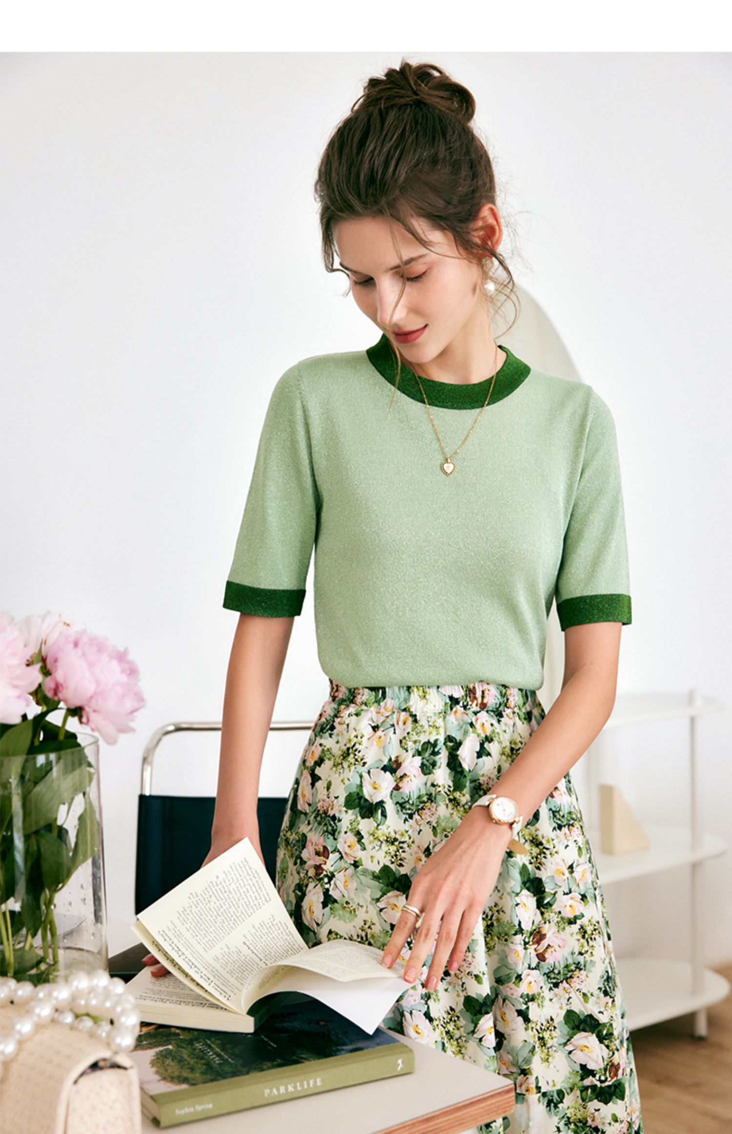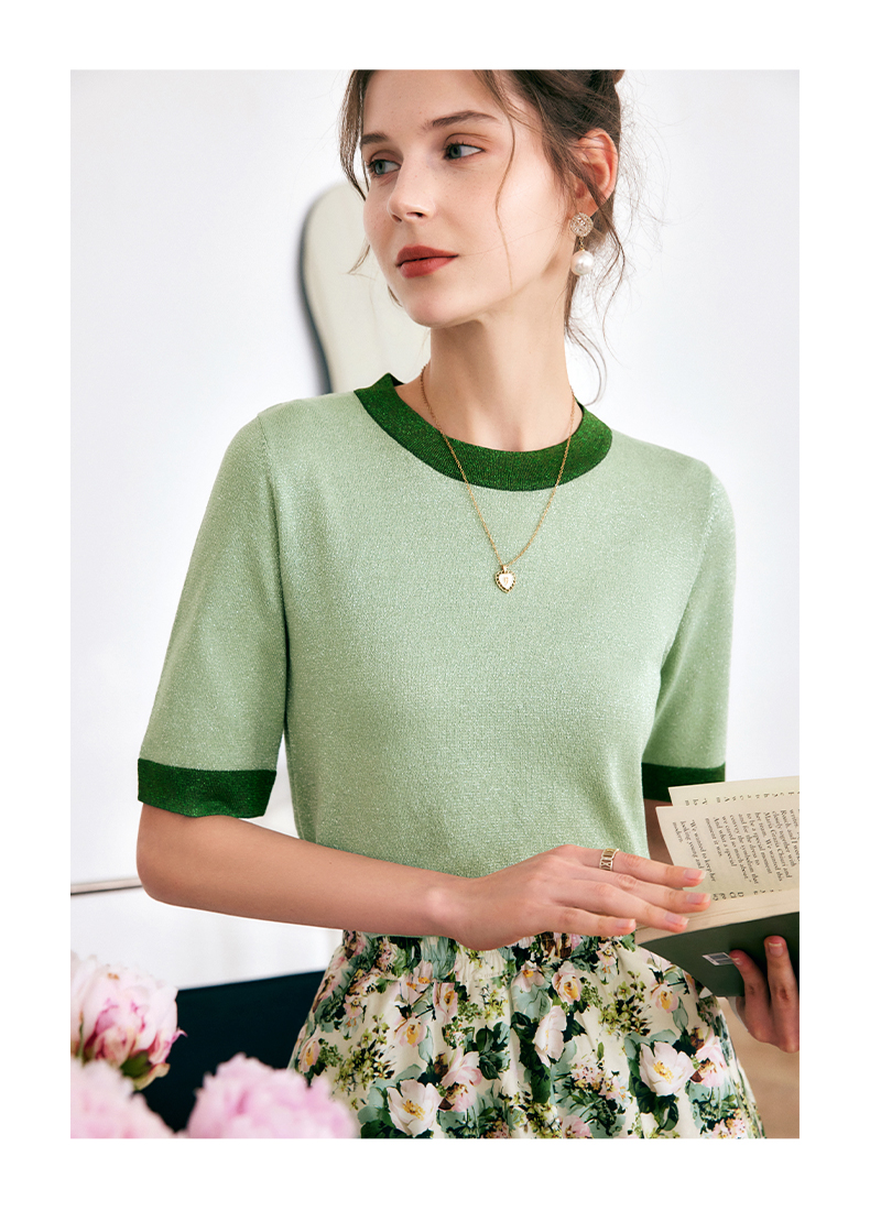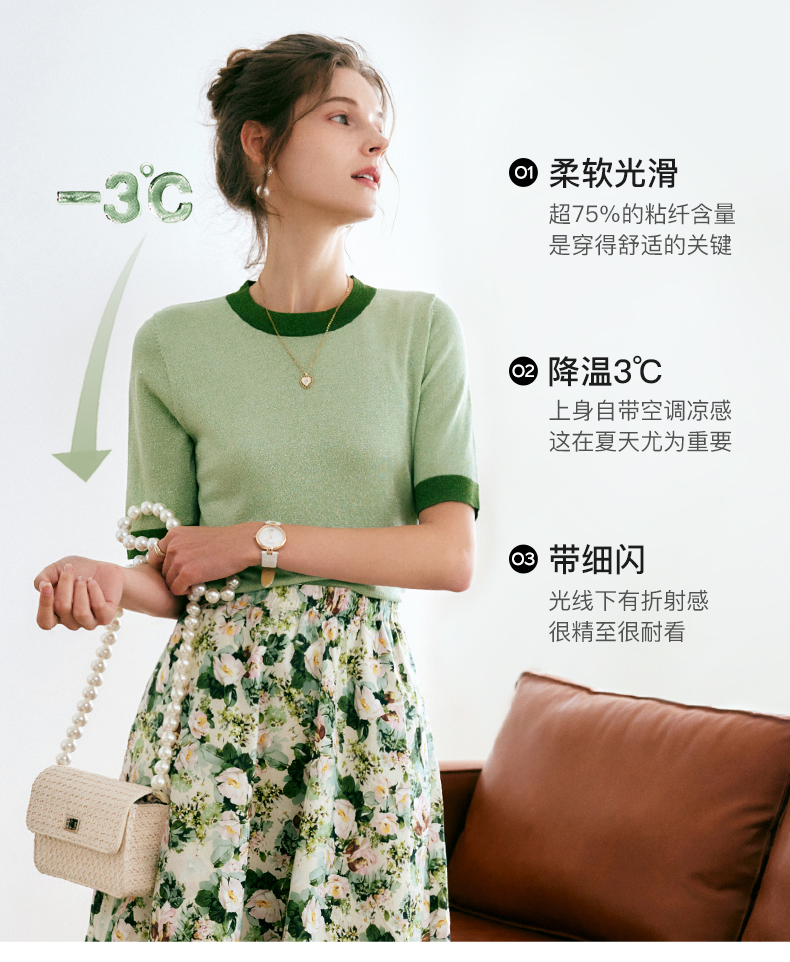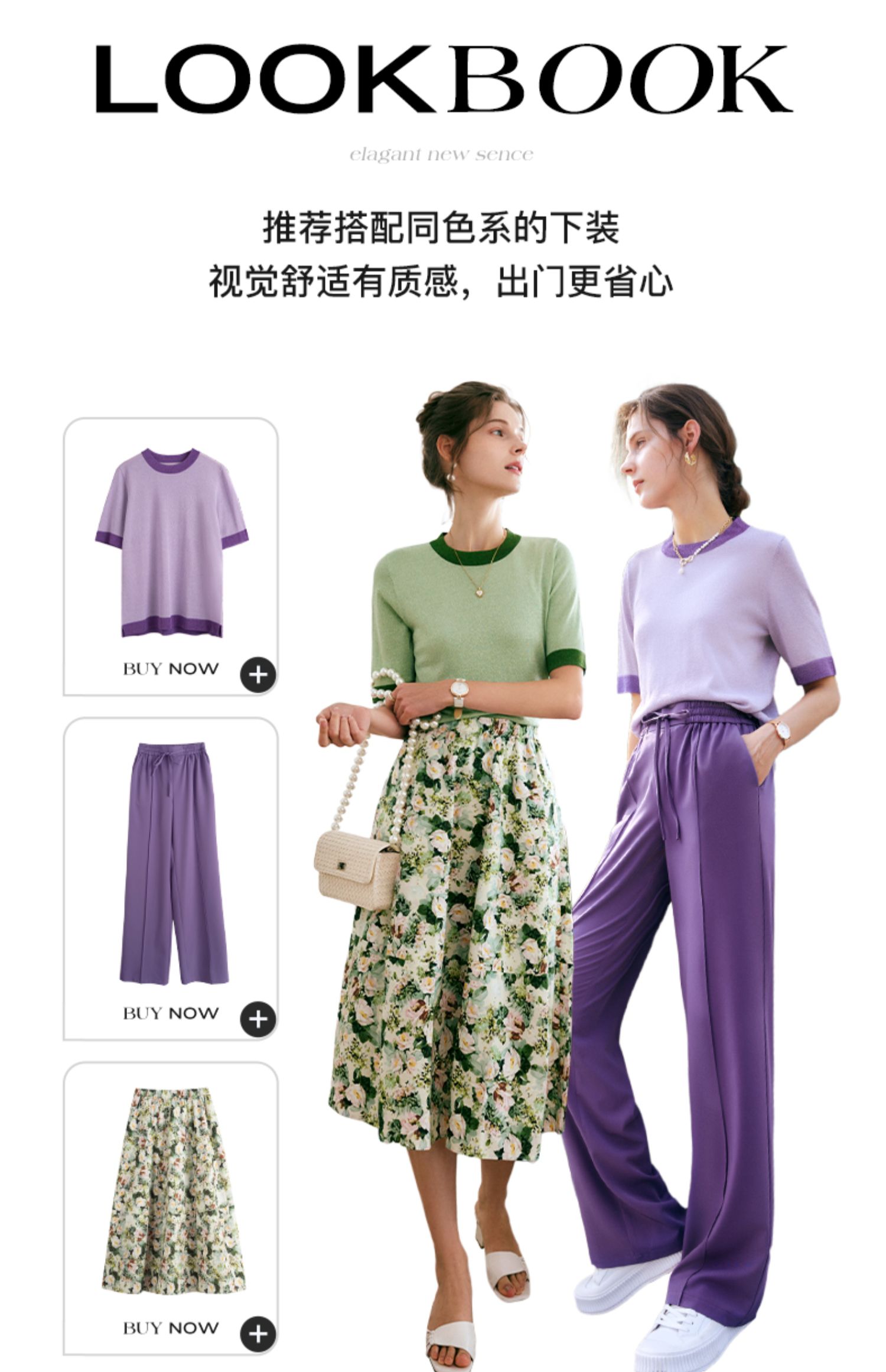 欧芮儿OLrain法式高级紫色针织衫女夏季2024短袖高端冰丝薄款上衣