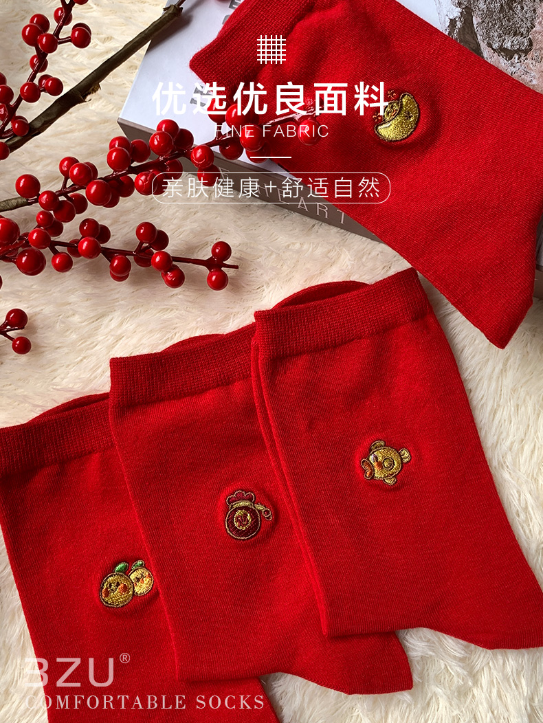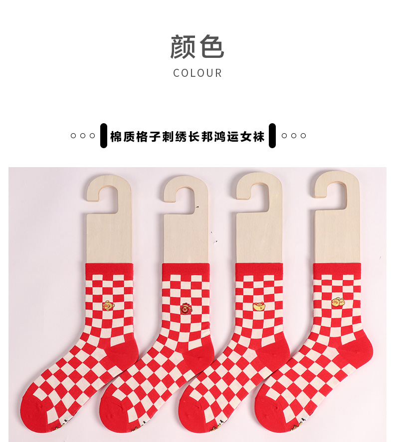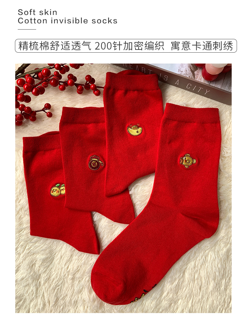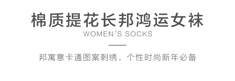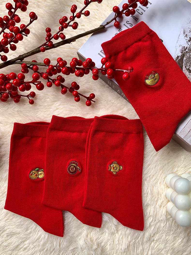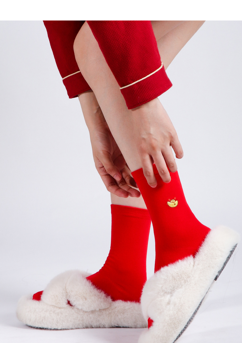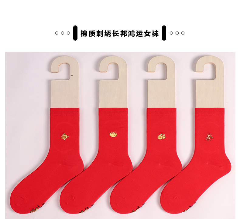 足装秀新品女棉质长筒袜龙年红运喜庆寓意刺绣新年送礼长邦女袜子