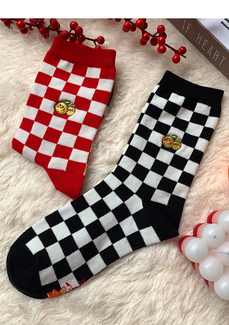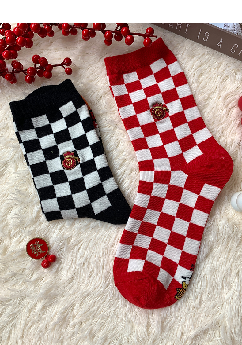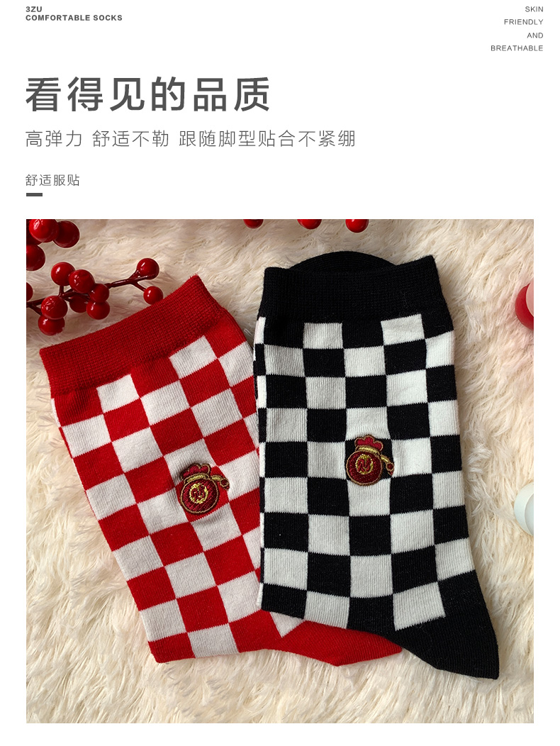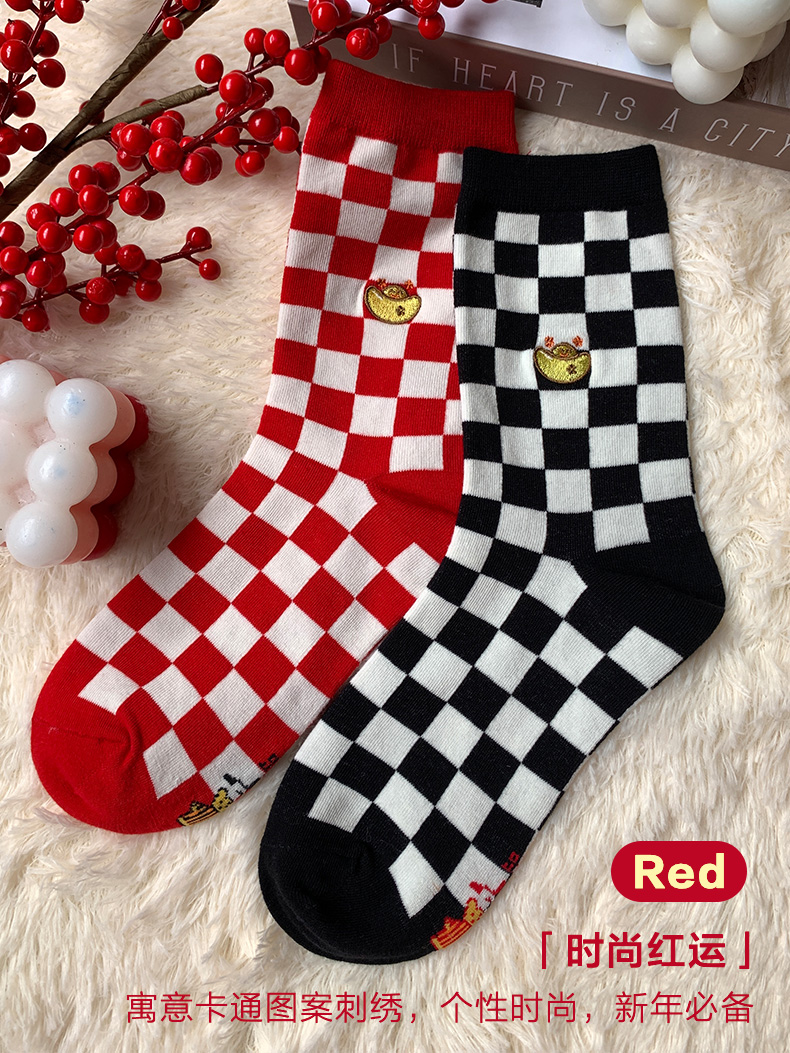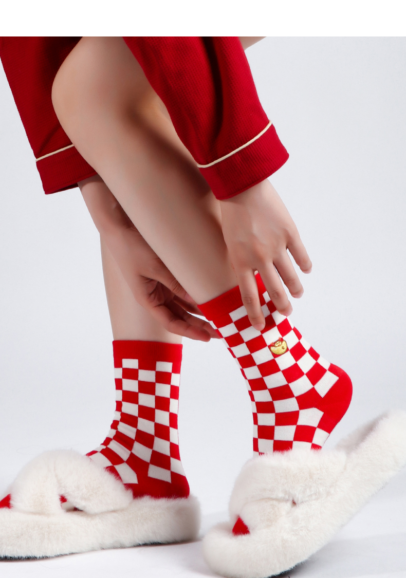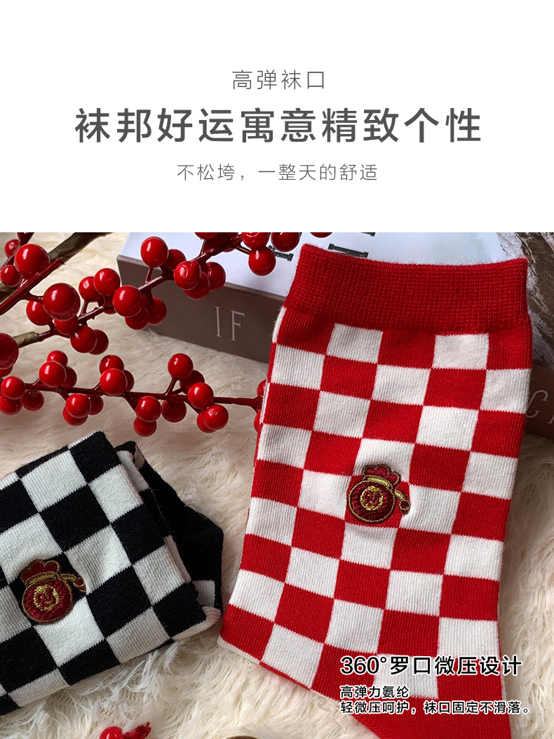 足装秀新品女棉质长筒袜龙年红运喜庆寓意刺绣新年送礼长邦女袜子