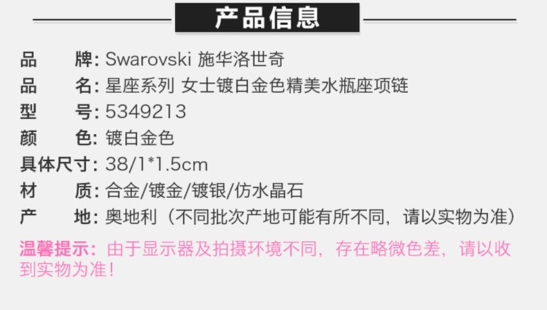 SWAROVSKI/施华洛世奇 星座系列精美水瓶座项链 5349213JPY带授权招加盟代理