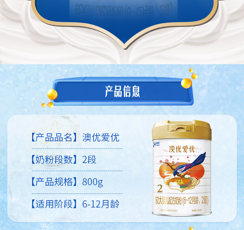 澳优爱优较大婴儿配方奶粉800g