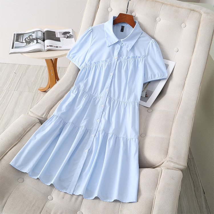 奢姿2025夏装新款胖妹妹大码女装气质泡泡袖翻领温柔风连衣裙6632809061