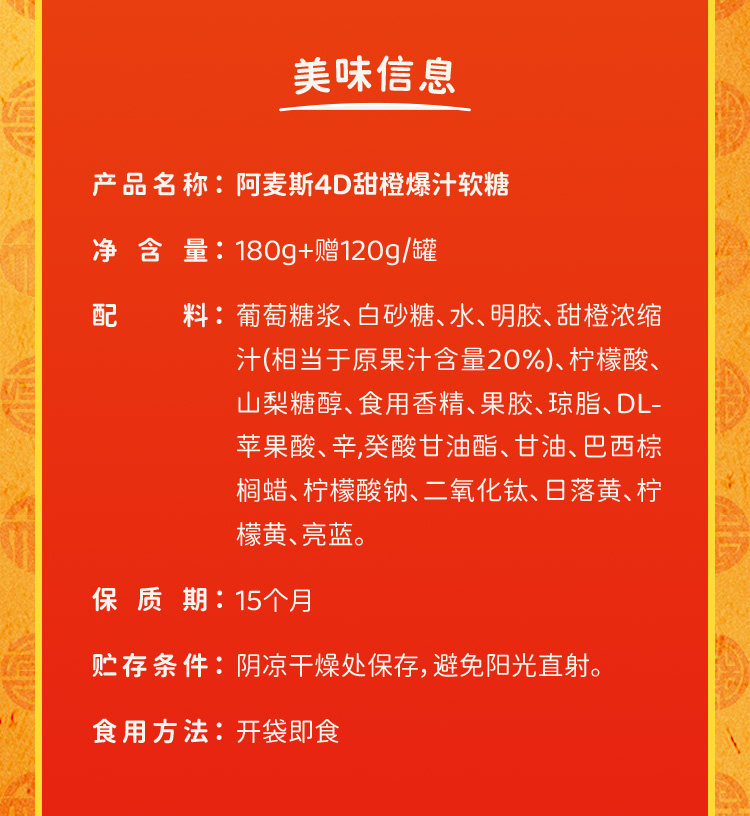 阿麦斯4D甜橙爆汁软糖(桔子罐)300g