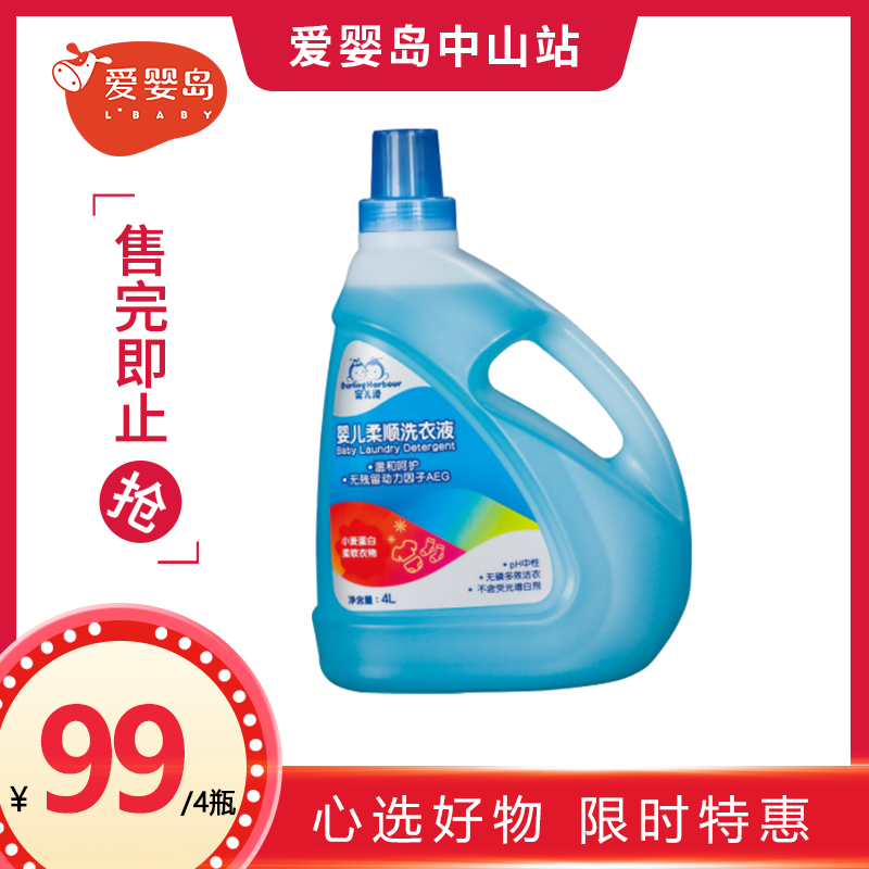 蜜儿港婴儿柔顺洗衣液4L(4瓶)
