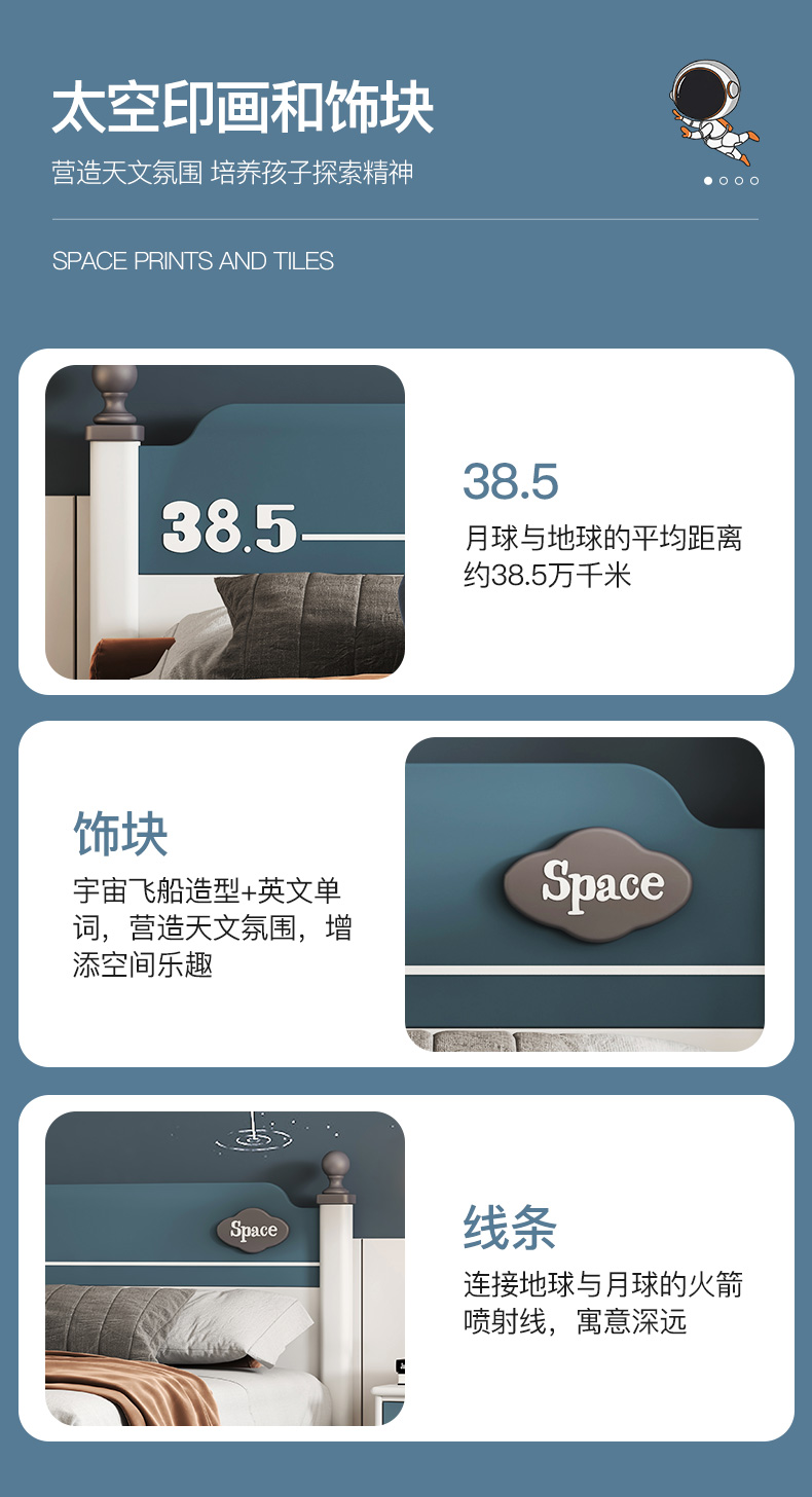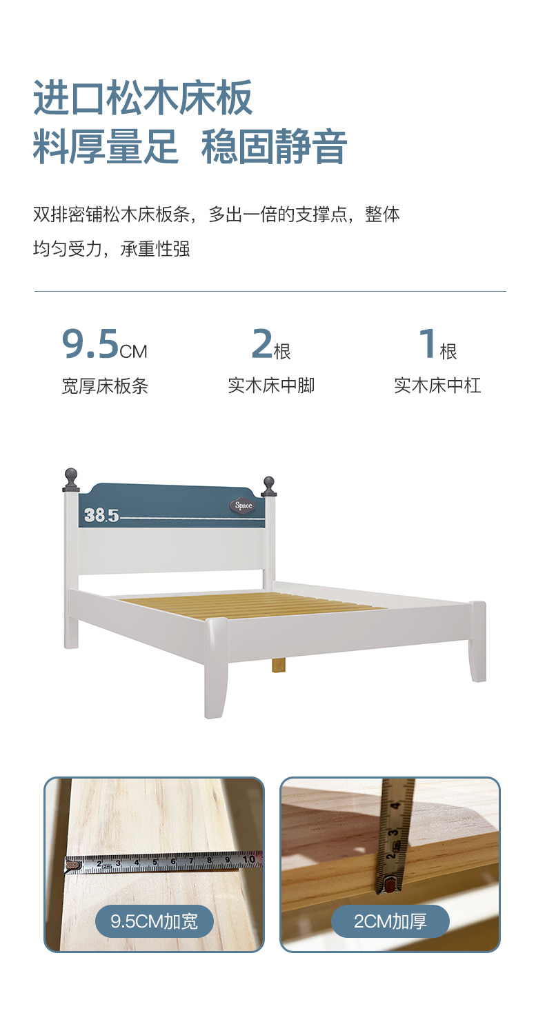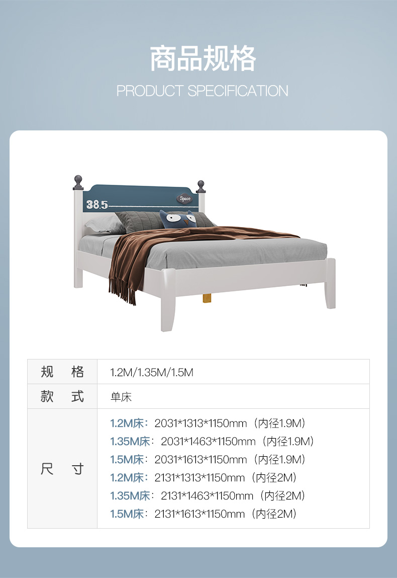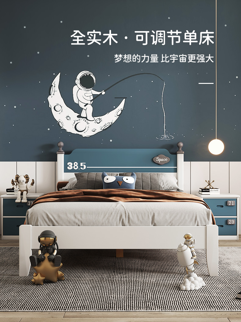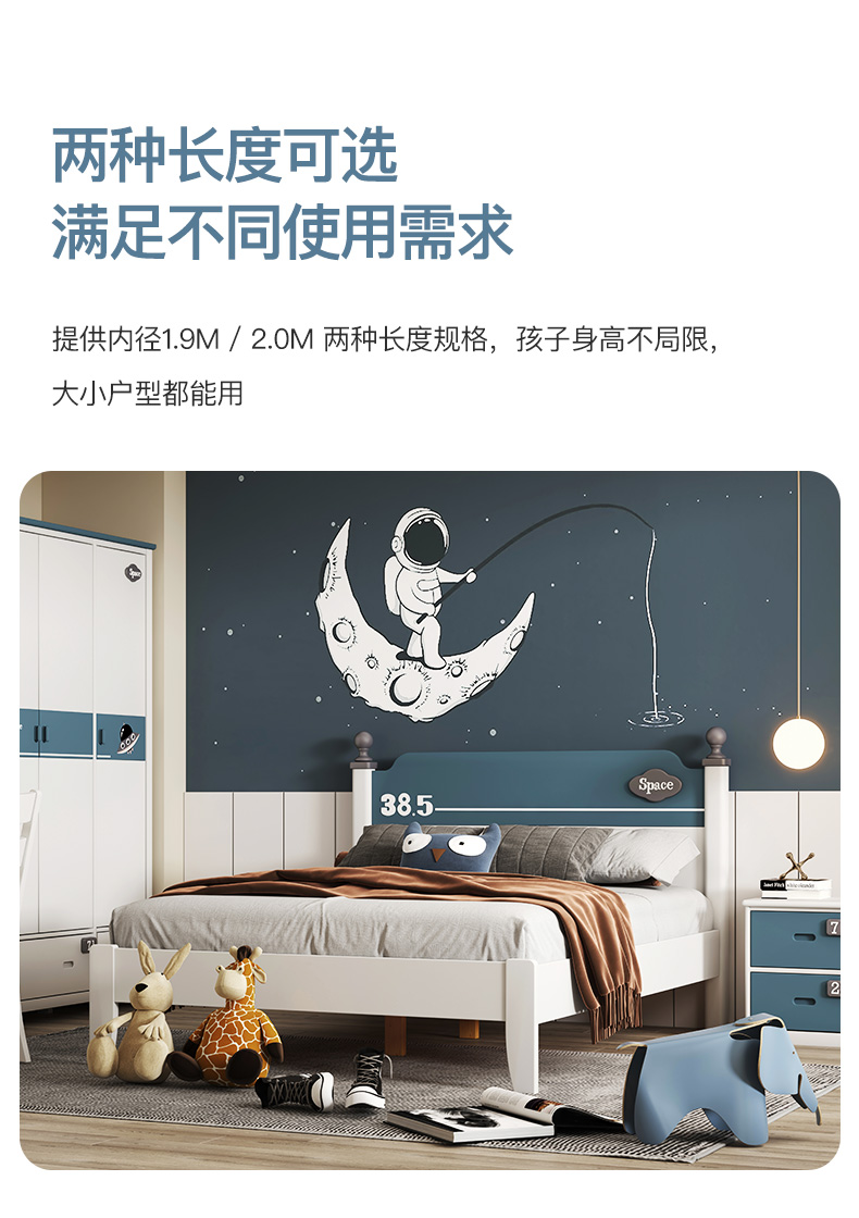 喜梦宝全实木成人床儿童床男孩女孩1.35米蓝色卡通1.5米床屏卧室家具巴斯光年
