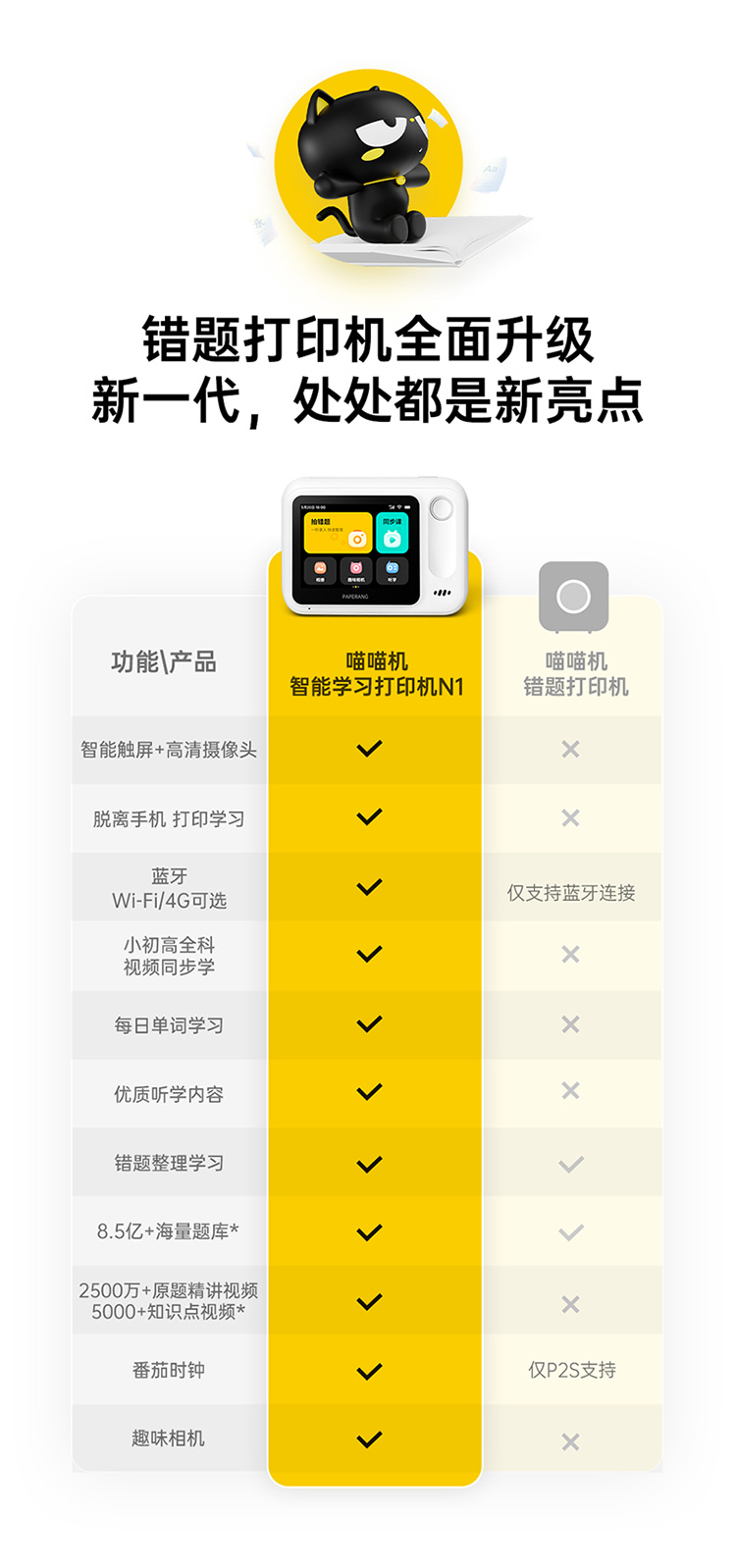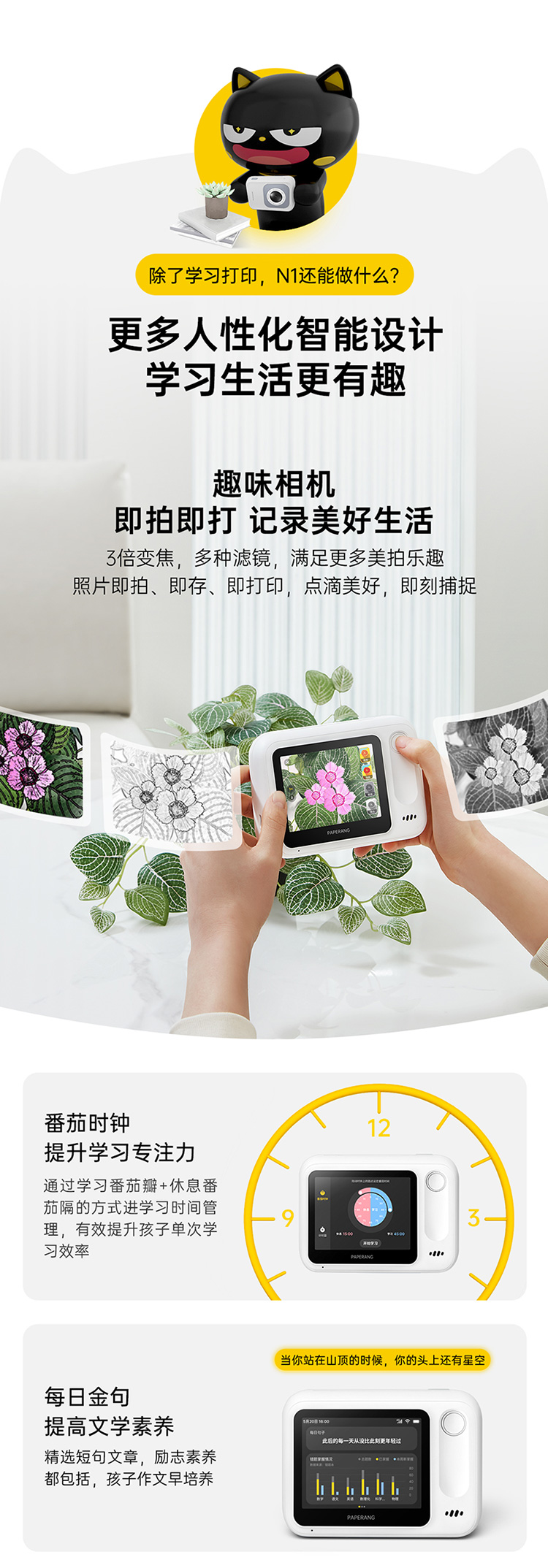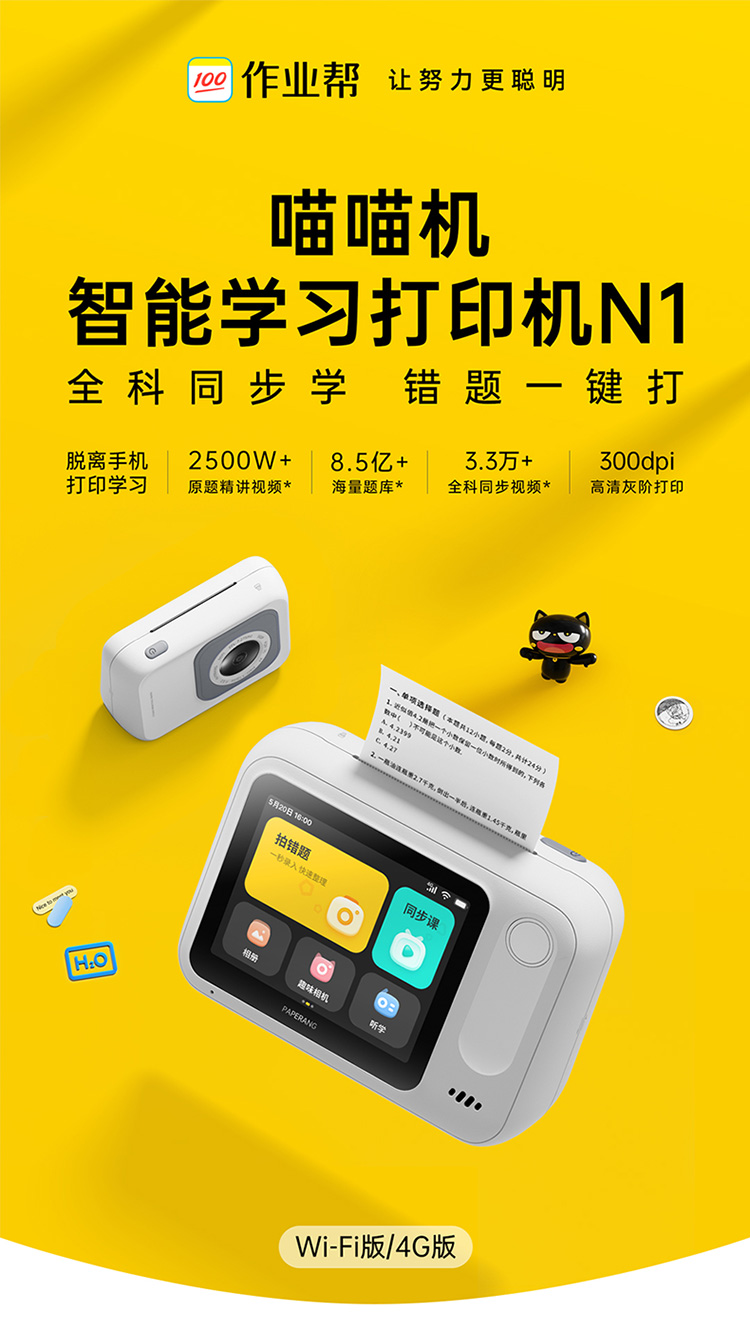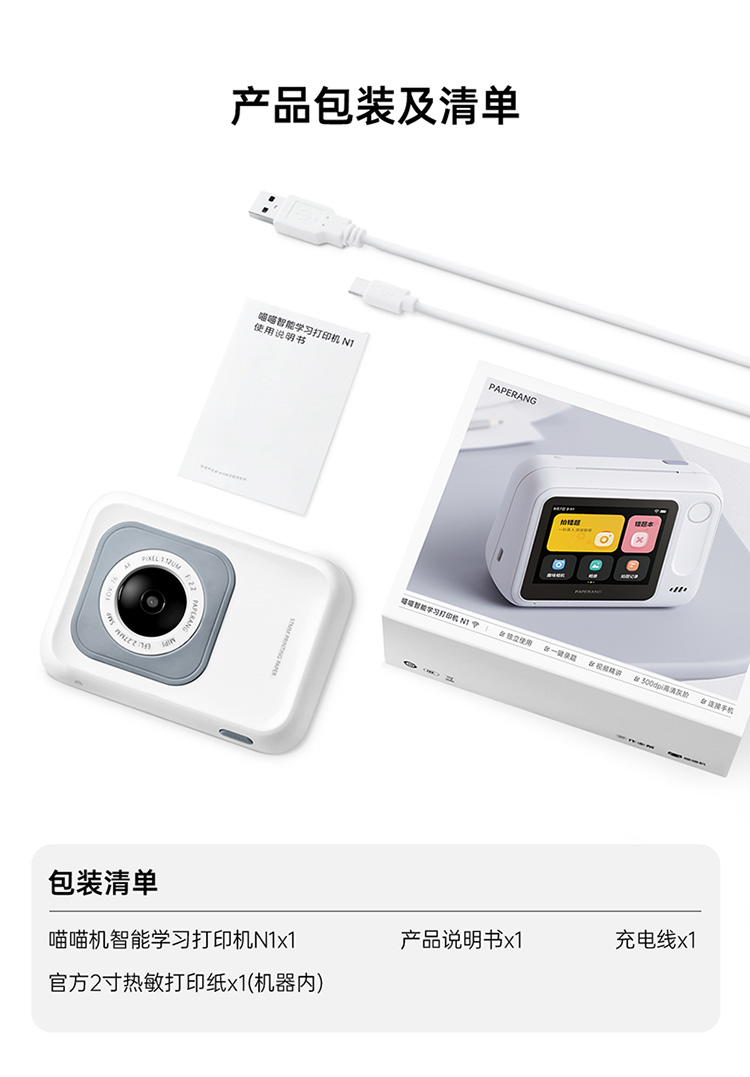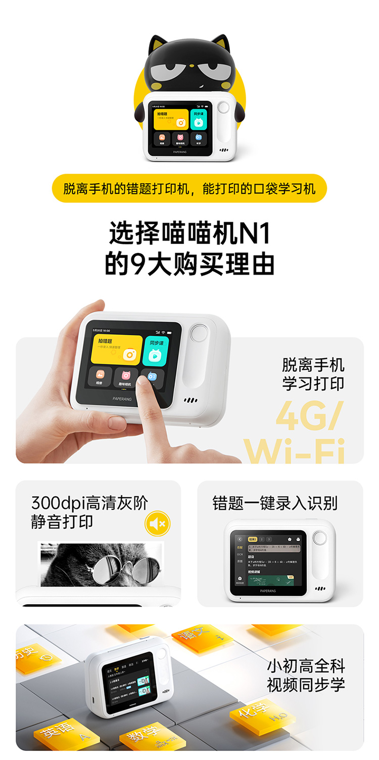 【限时特惠额外加赠一盒灰阶纸一盒不干胶】喵喵机N1智能学习错题打印机 脱离手机 即拍即打 上学也能打