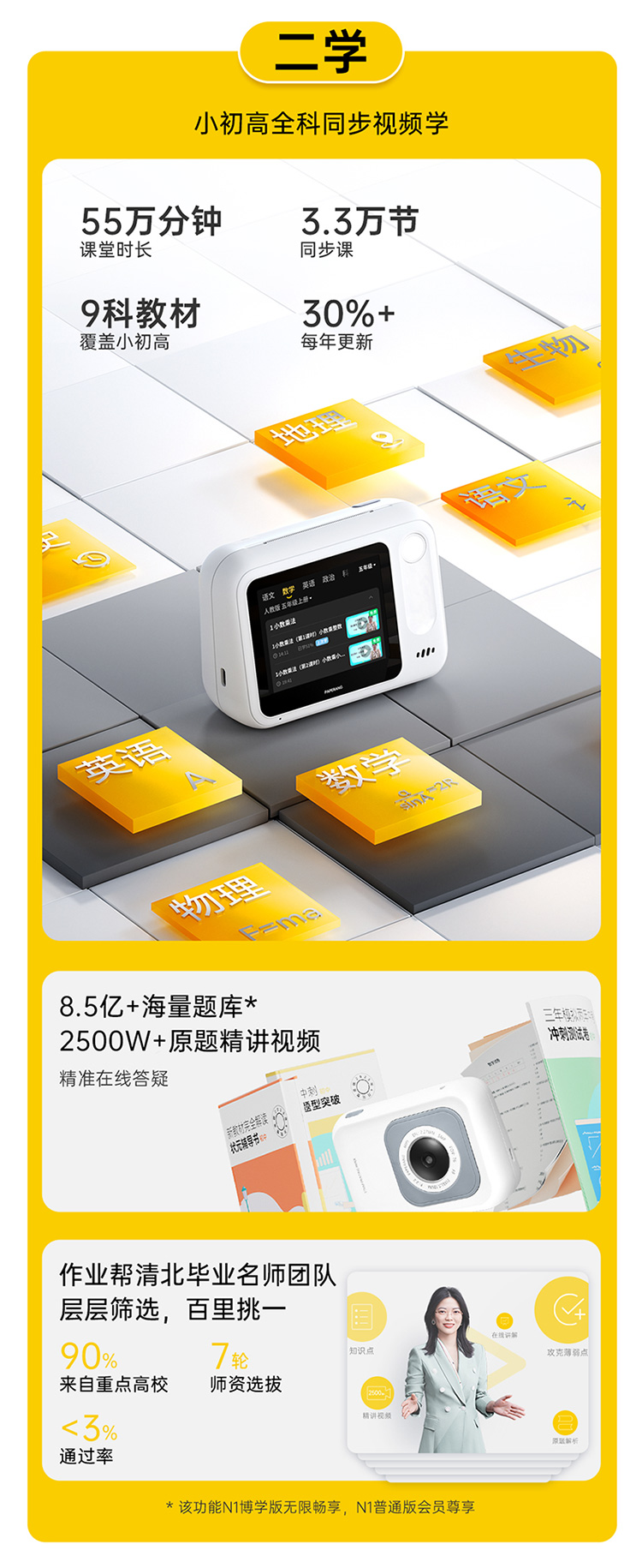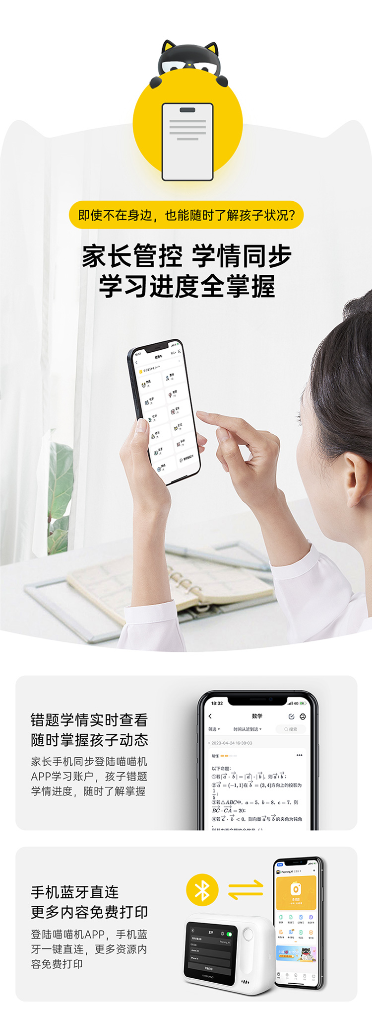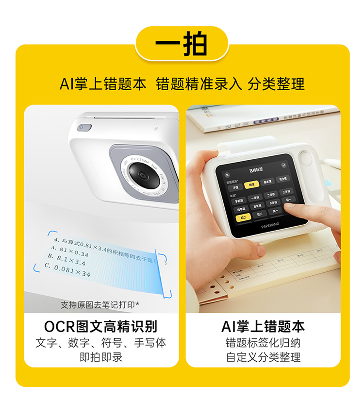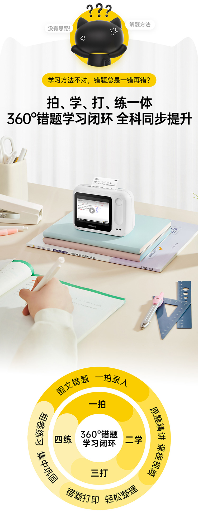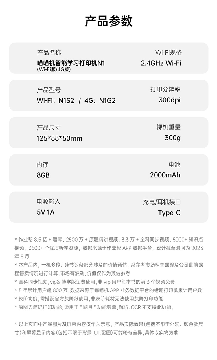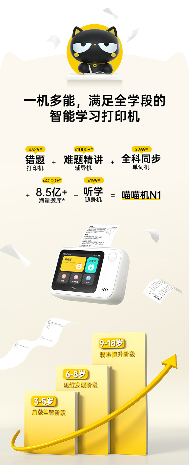 【限时特惠额外加赠一盒灰阶纸一盒不干胶】喵喵机N1智能学习错题打印机 脱离手机 即拍即打 上学也能打