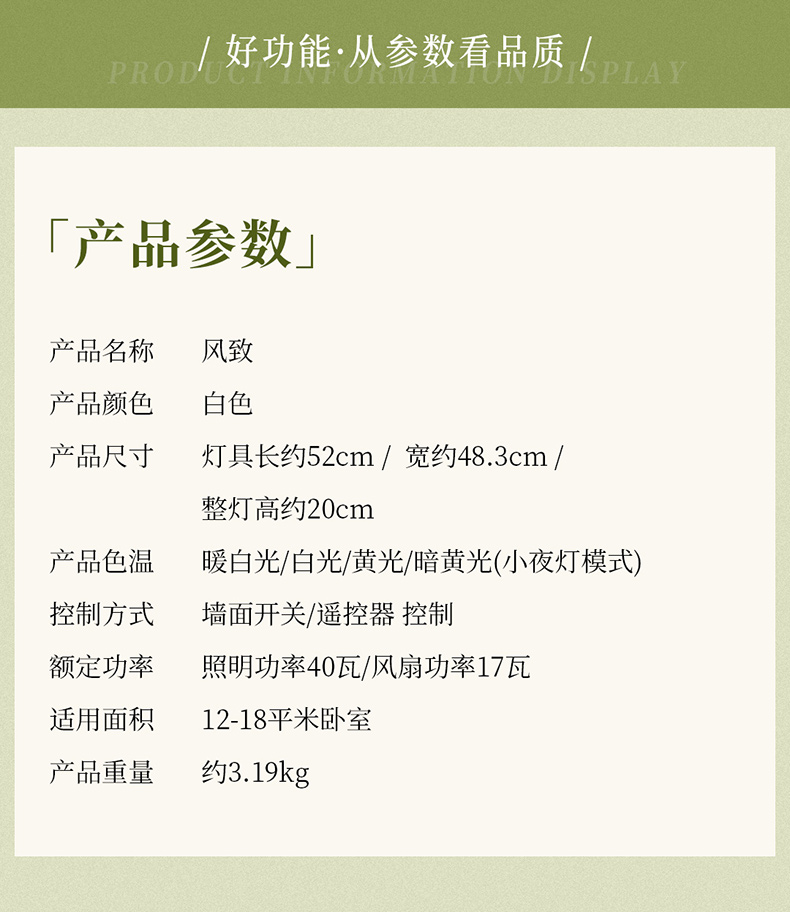 欧普(OPPLE)风致全光谱轻奢风卧室吸顶风扇灯