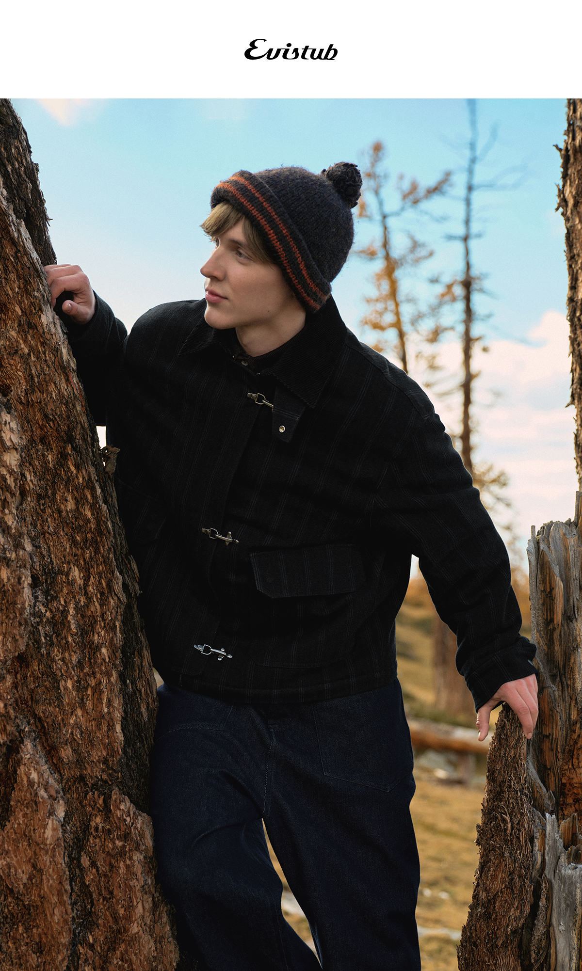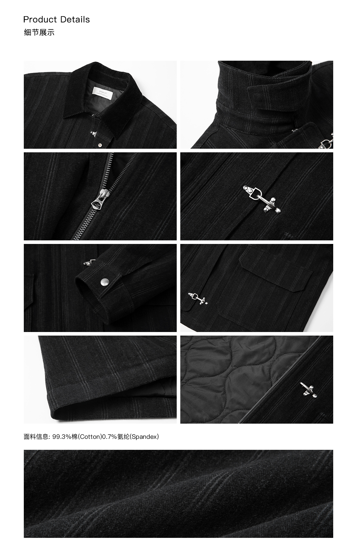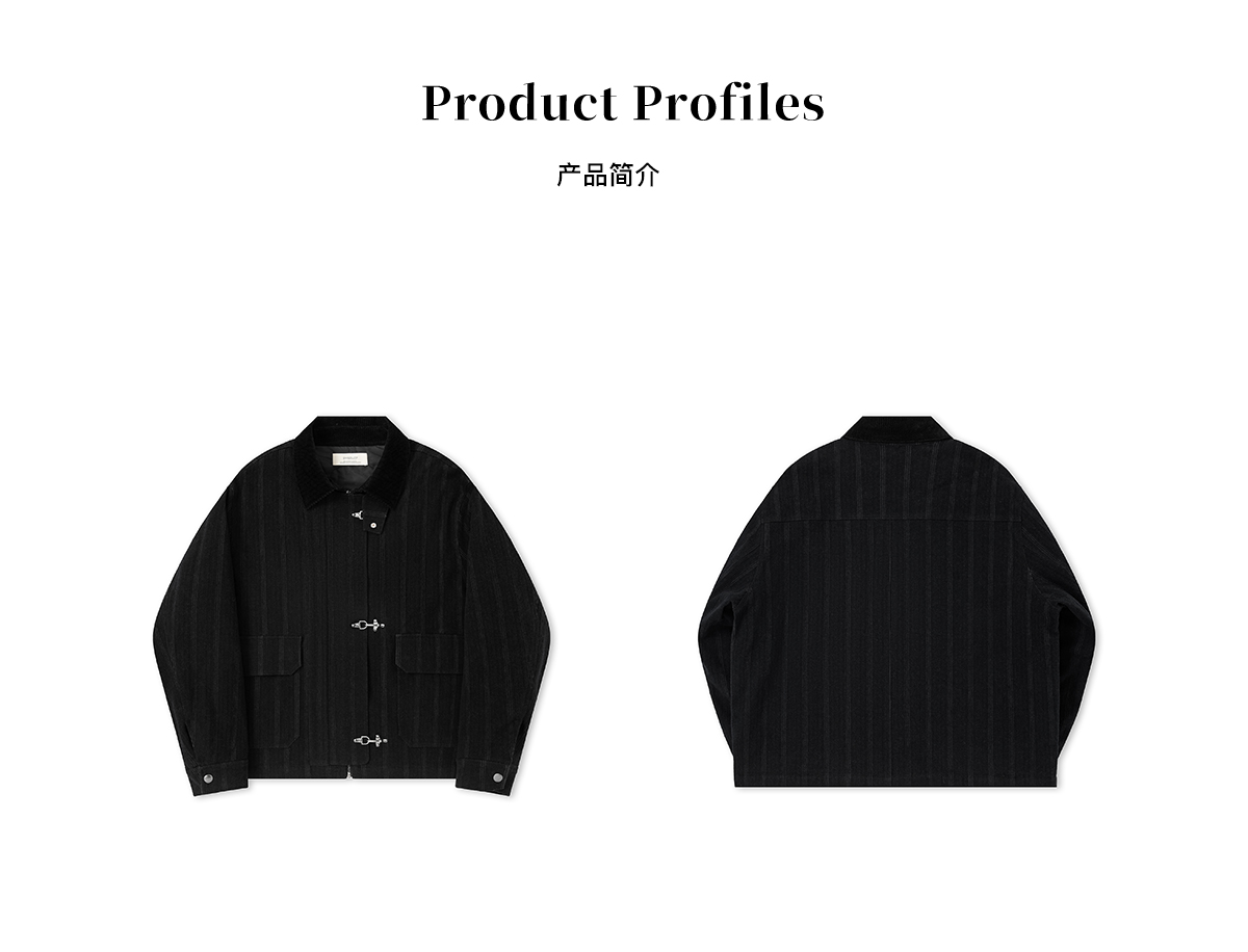 Evistub/E-4DWT906/暗纹刷毛灯芯绒复古龙虾扣保暖绗线夹克