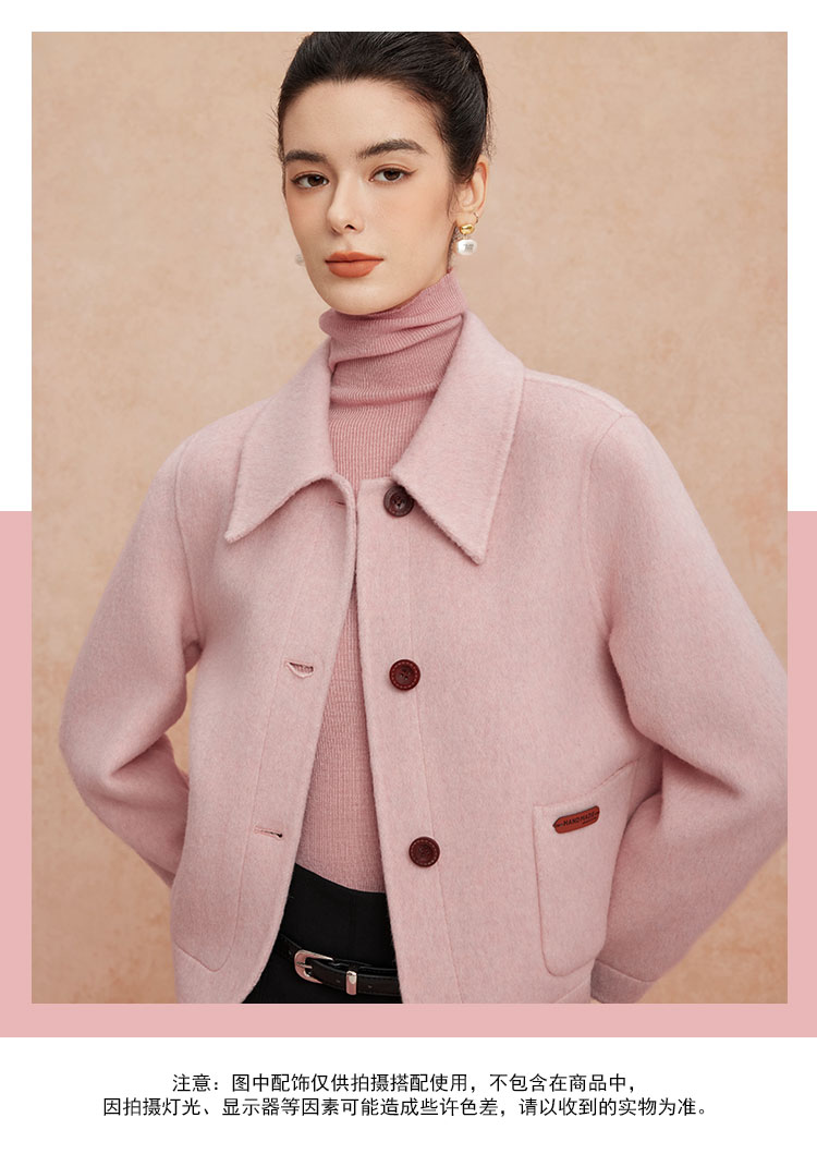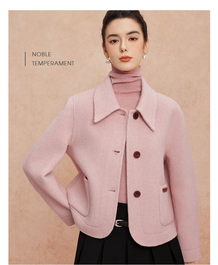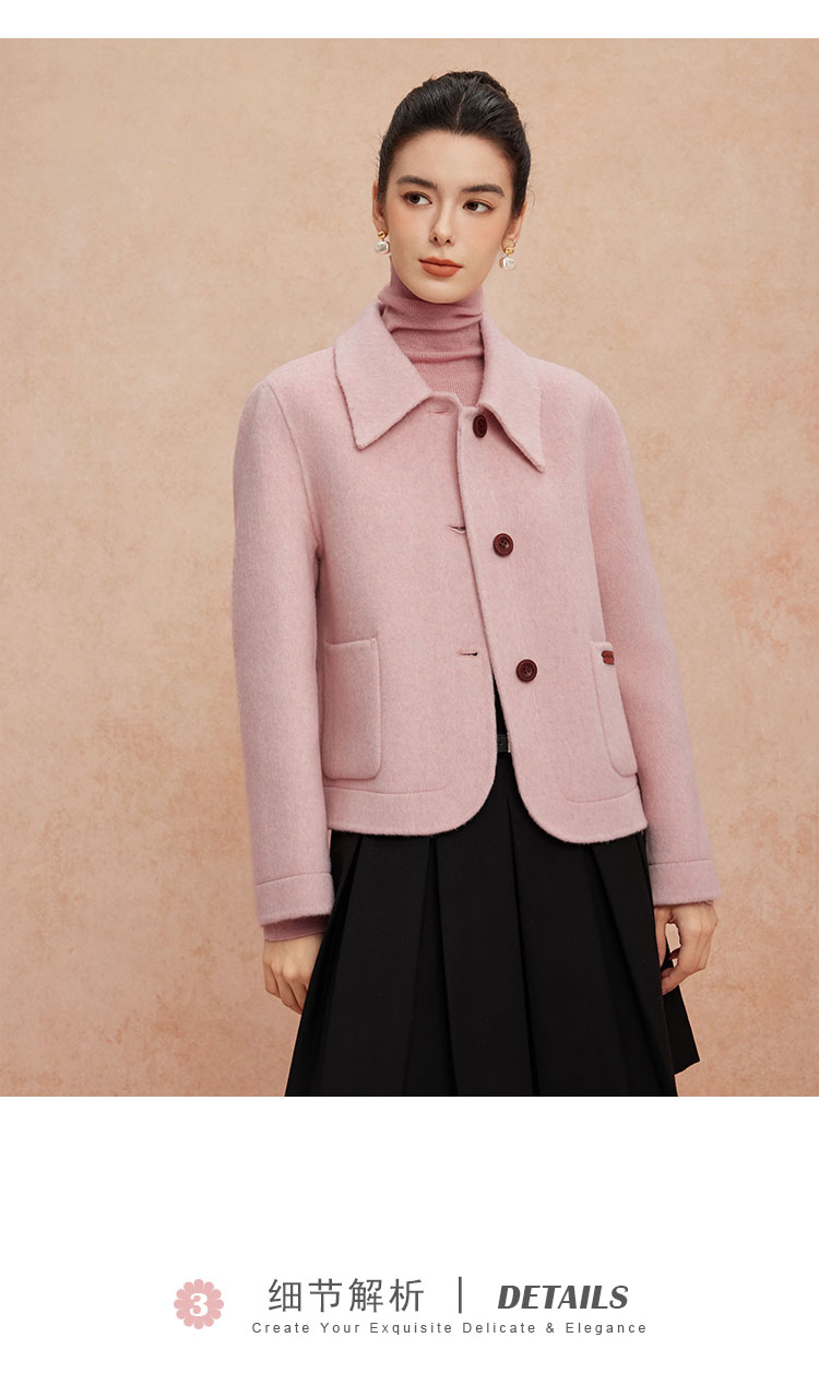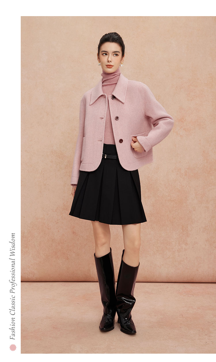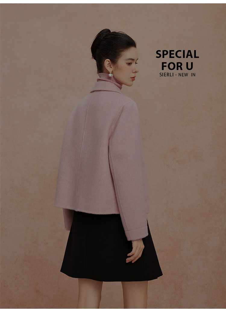 QH903斯尔丽2025新款双面呢手感滑爽软糯正肩易搭配减龄短款羊毛大衣