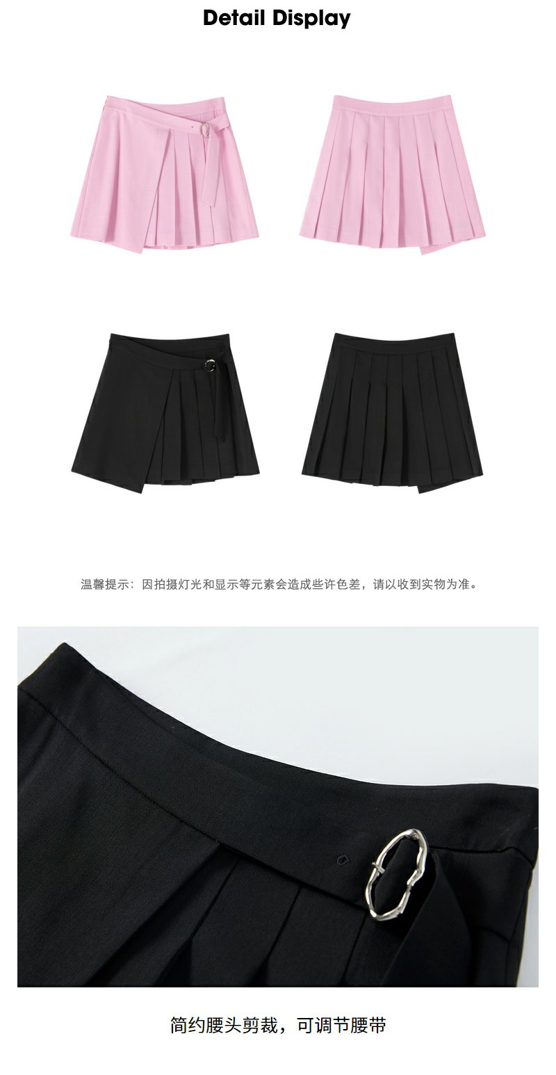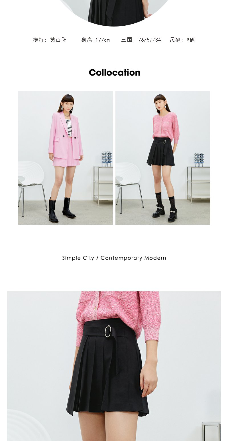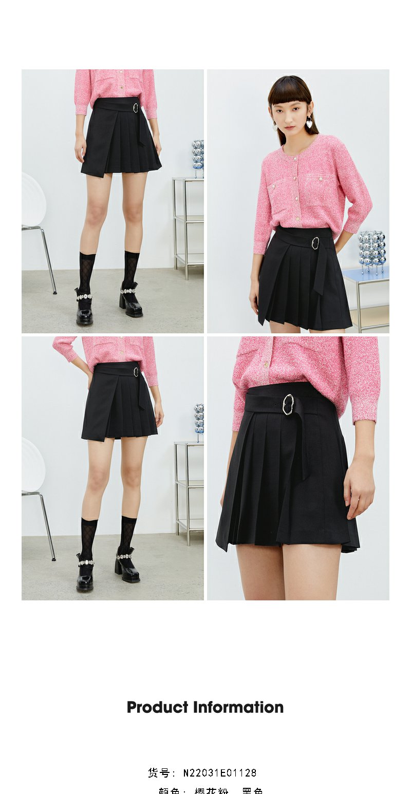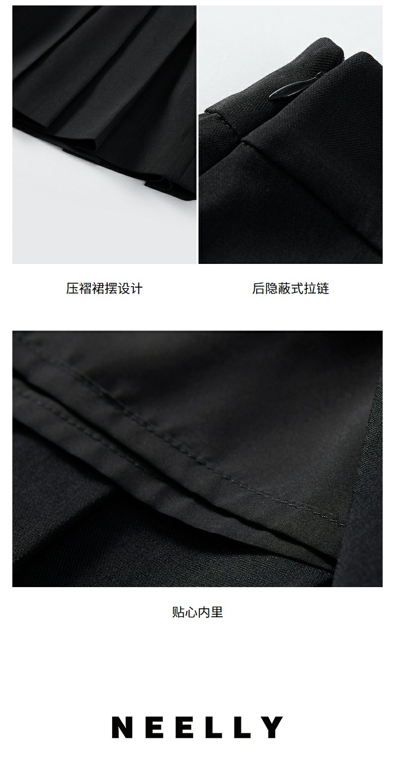 NEELLY纳俪商场同款半身裙女春夏新款短裙女百褶裙系带黑色裙子N22031E01128
