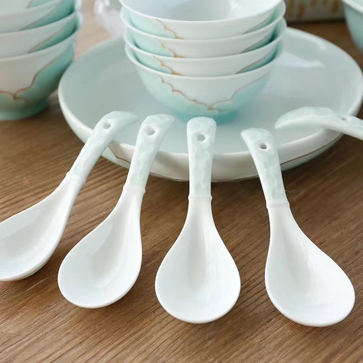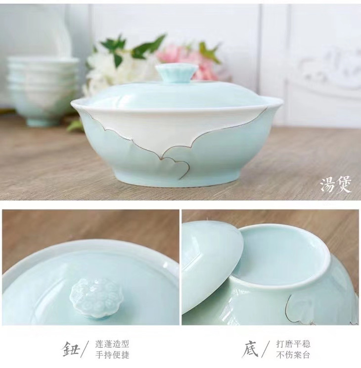 青瓷+24K金描金装饰58头10人份套碗
