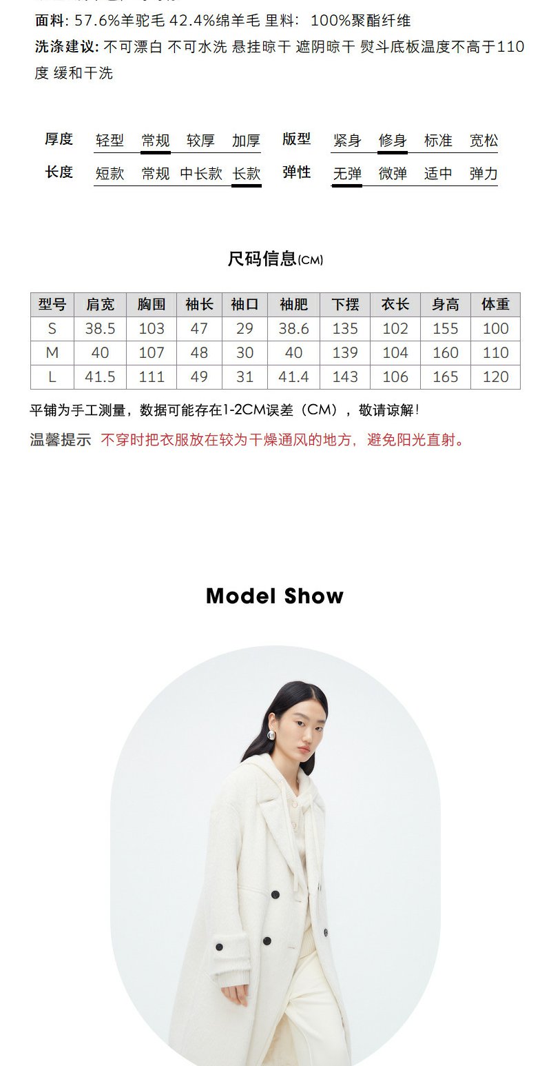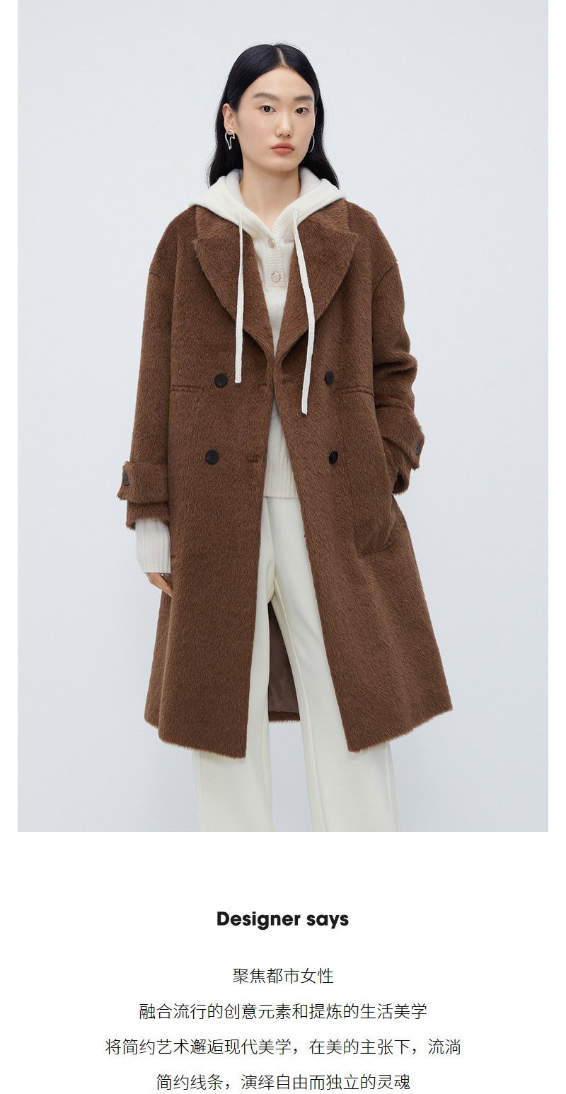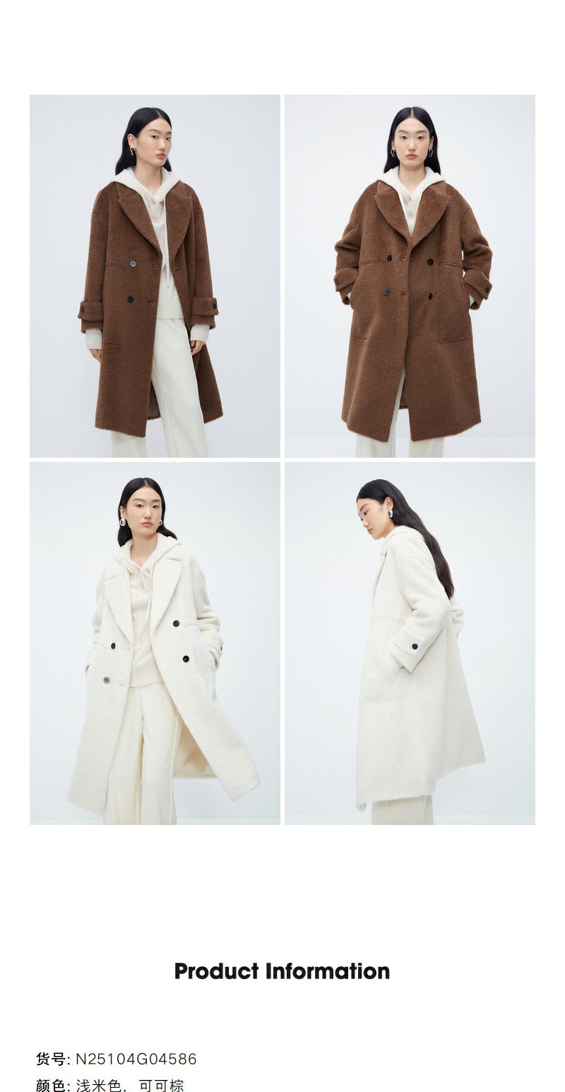 NEELLY纳俪商场同款冬新款复古美拉德羊驼毛大衣女羊毛呢外套N25104G04586