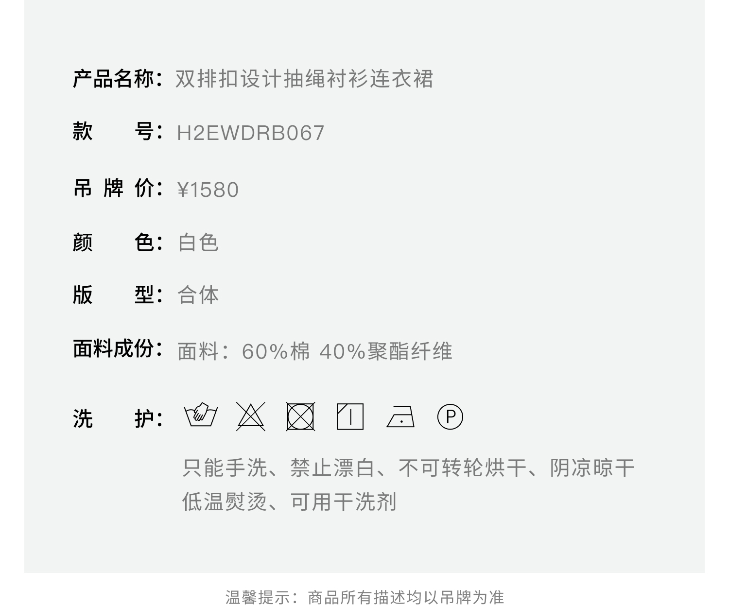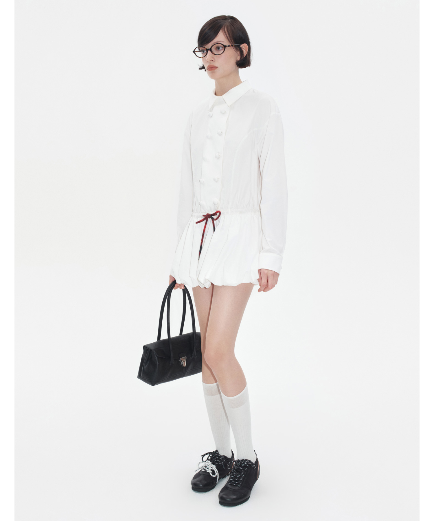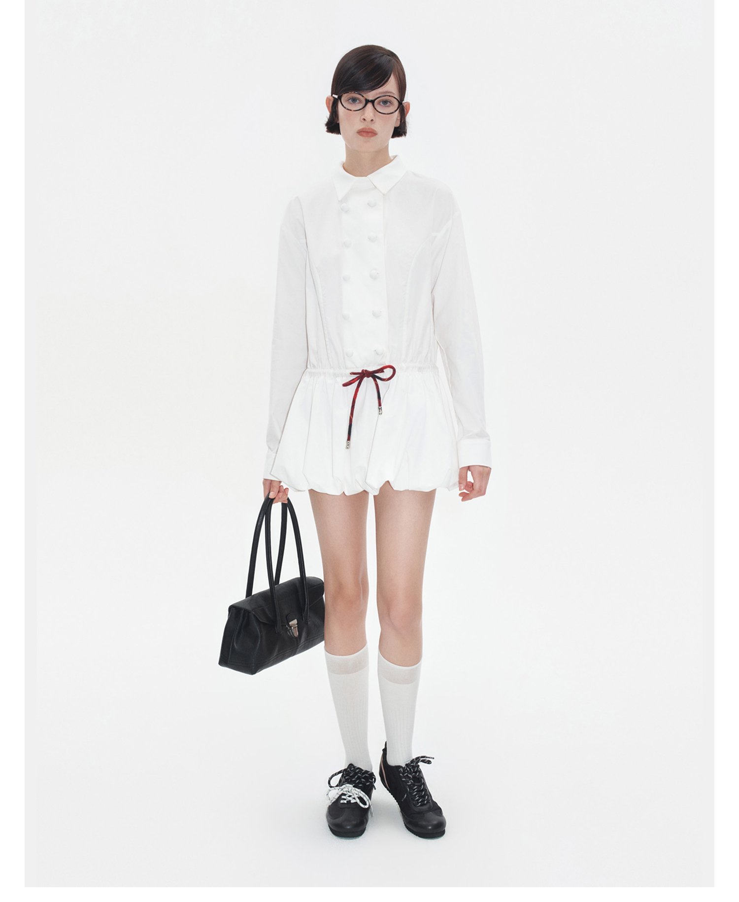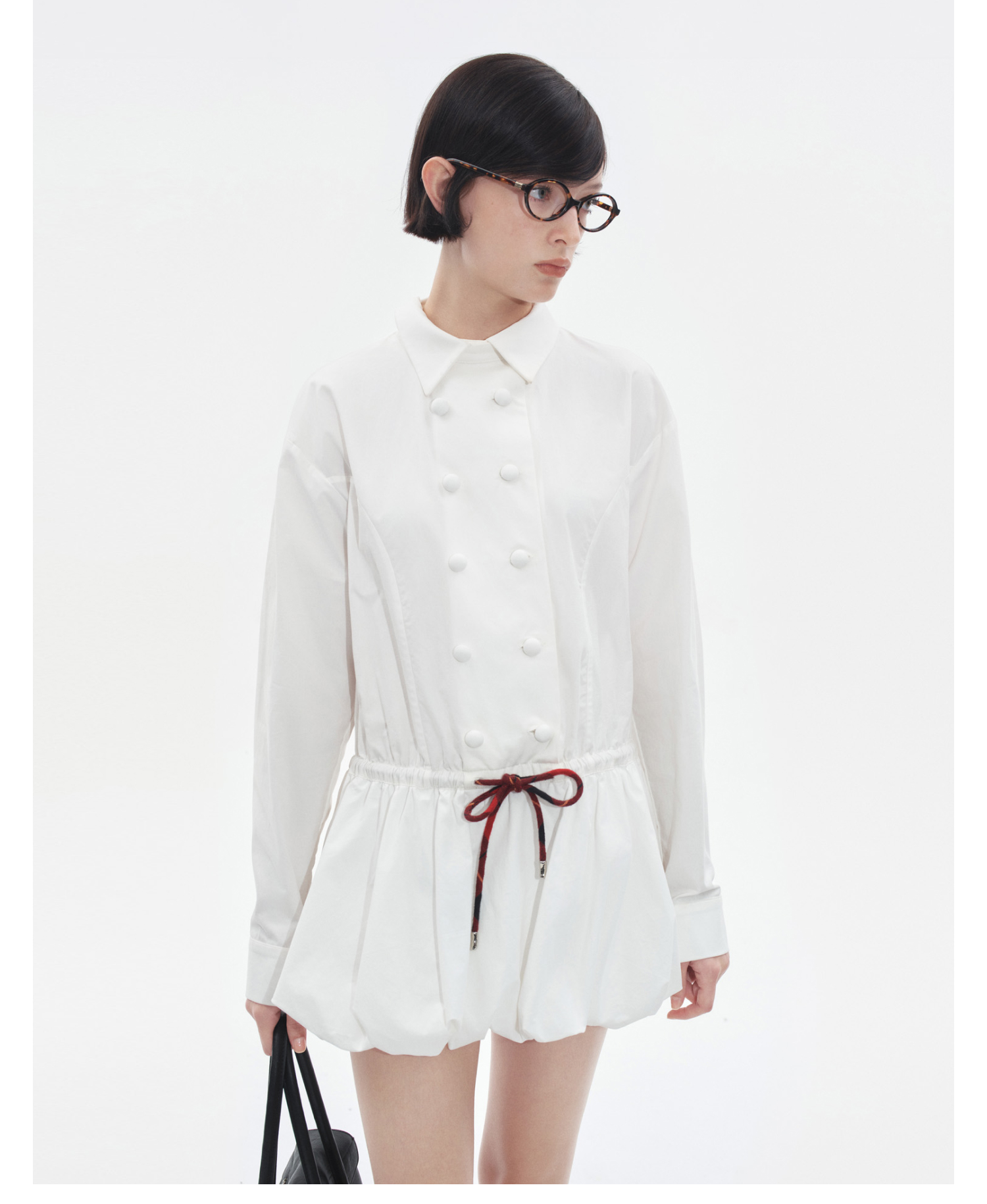 HERLIAN 2025冬季新品 双排扣设计抽绳衬衫连衣裙女士
