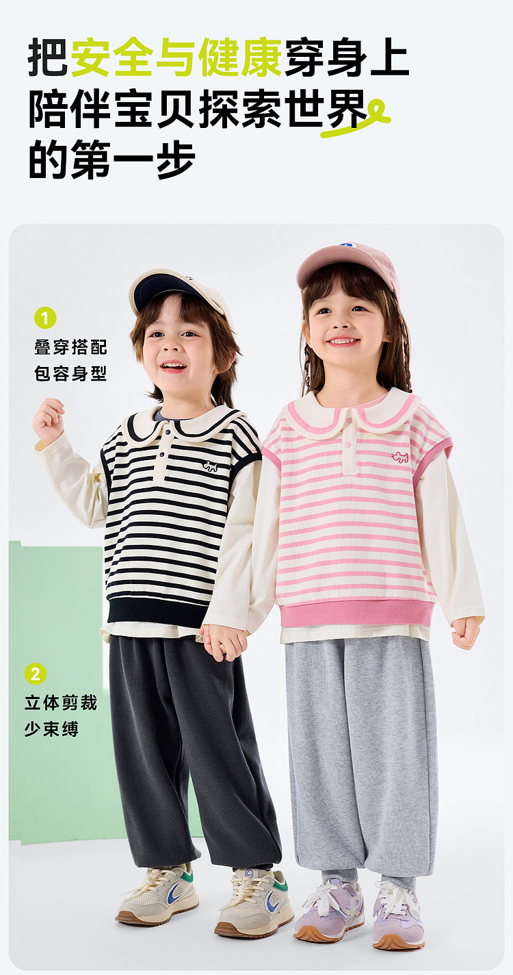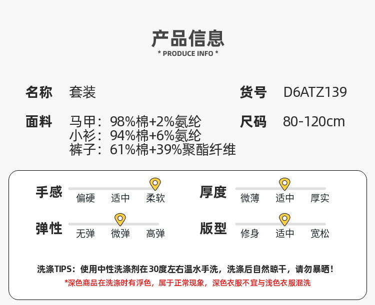 【三件套】嘟嘟家儿童套装男童春秋t恤马甲裤子宝宝春装女童衣服D6ATZ139