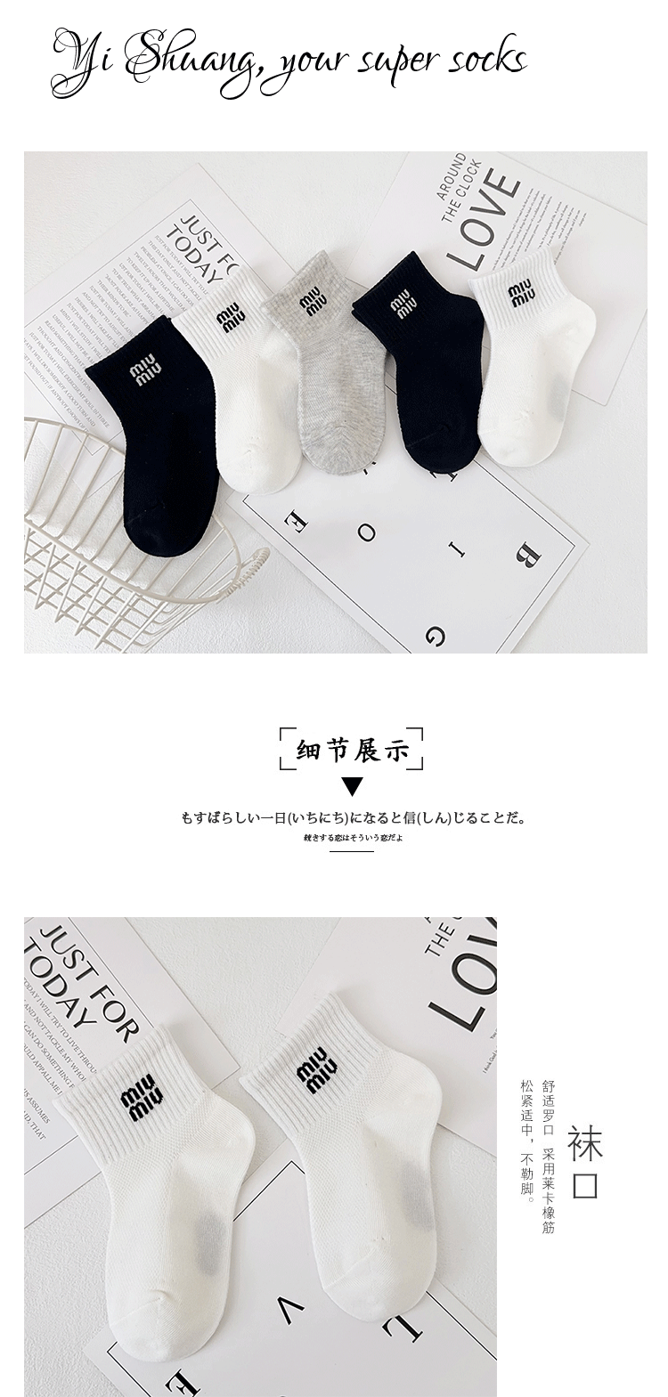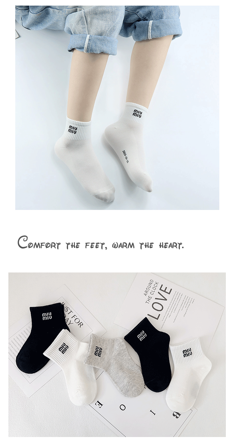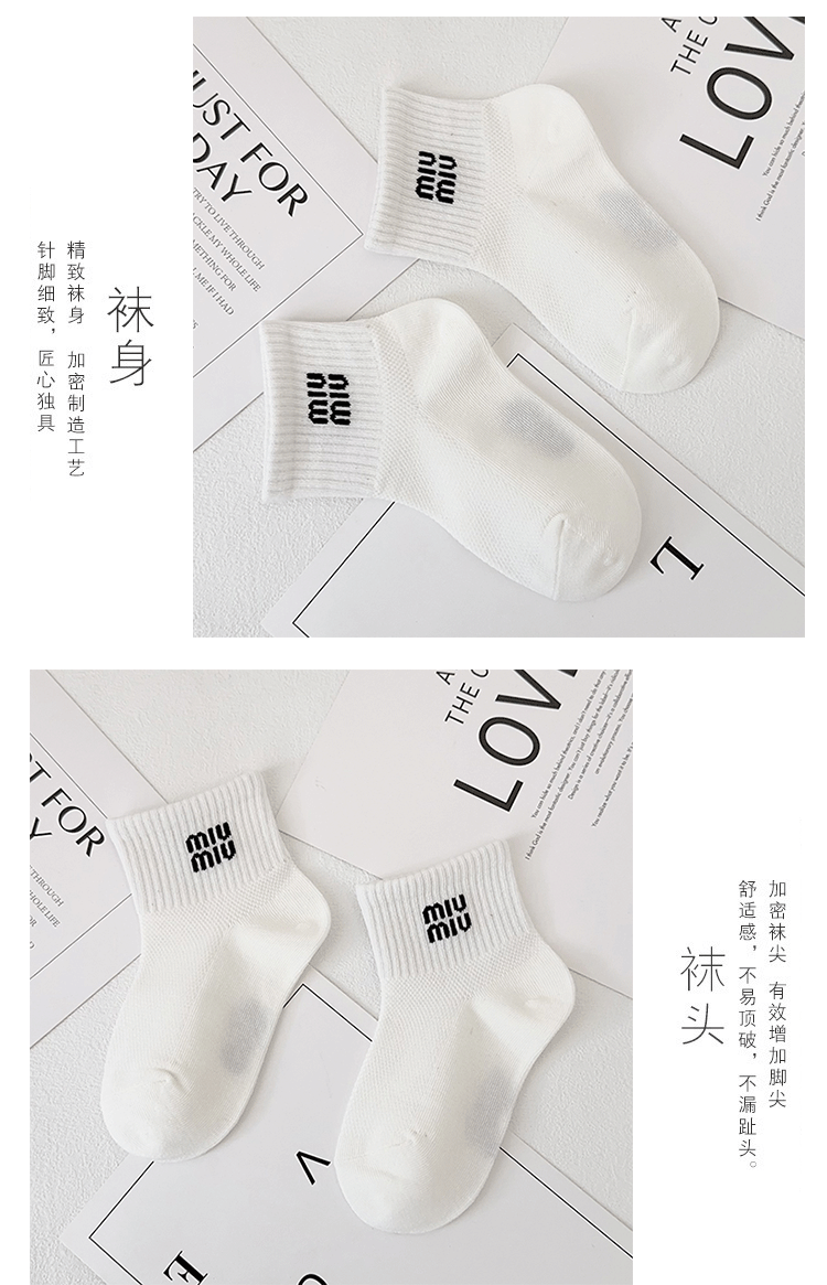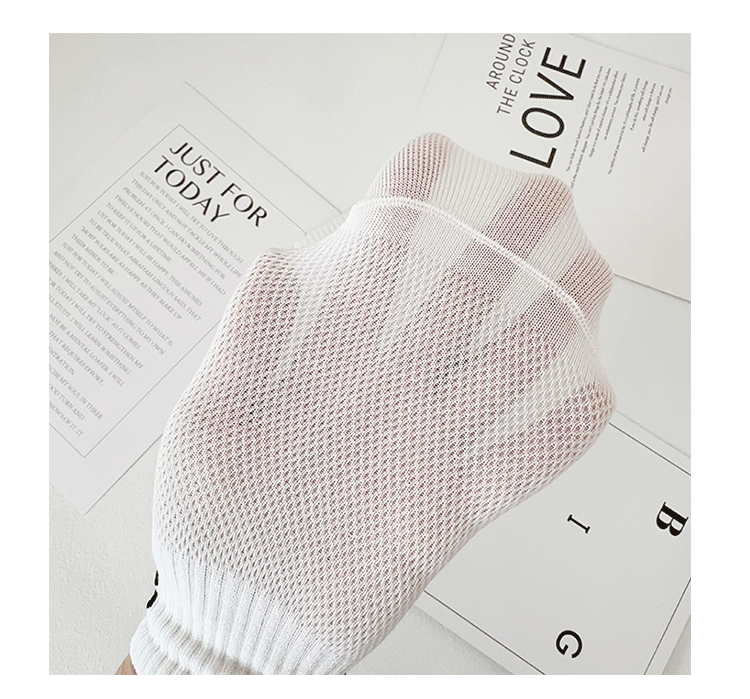 【5双双儿童袜子】夏季新款网眼透气 韩版字母短袜精梳棉黑白运动棉袜