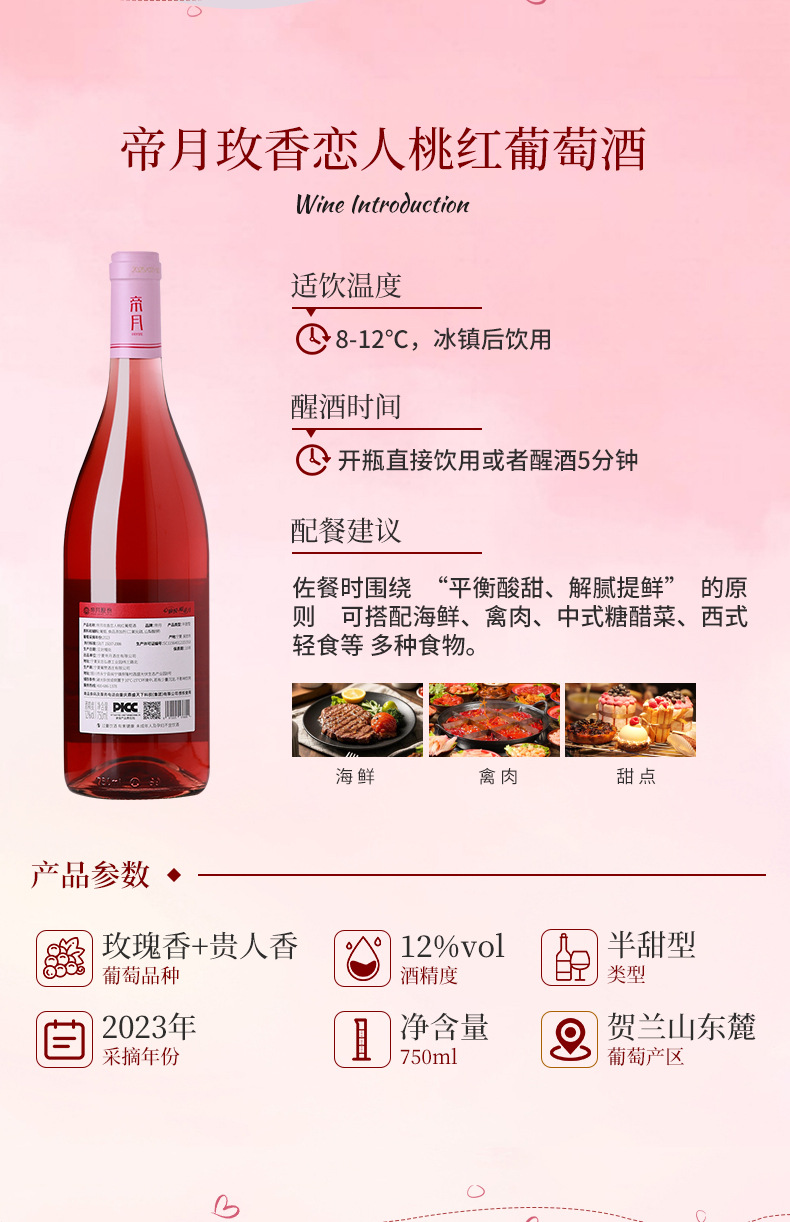 【桃红葡萄酒750ml】玫香低度半甜红酒 元旦春节送礼物酒  商品图2