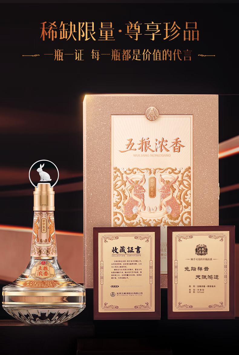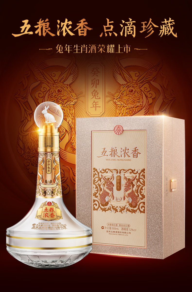 52度五粮浓香生肖系列癸卯兔年(礼盒装)888ml 单瓶