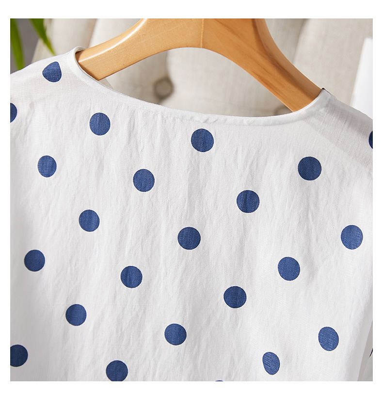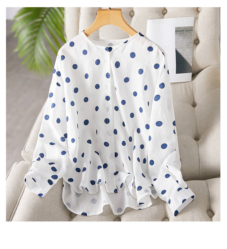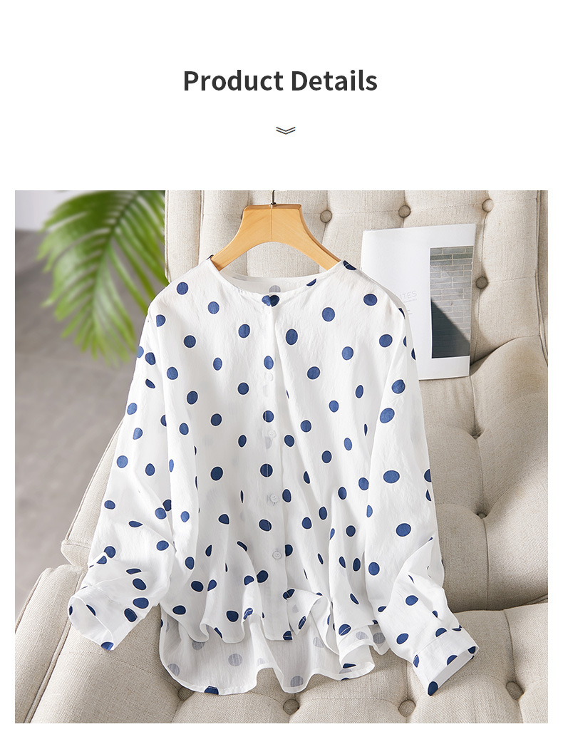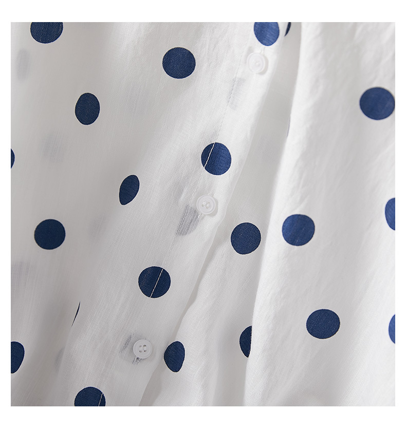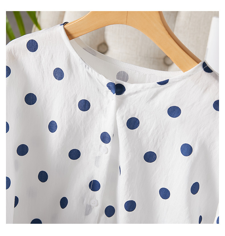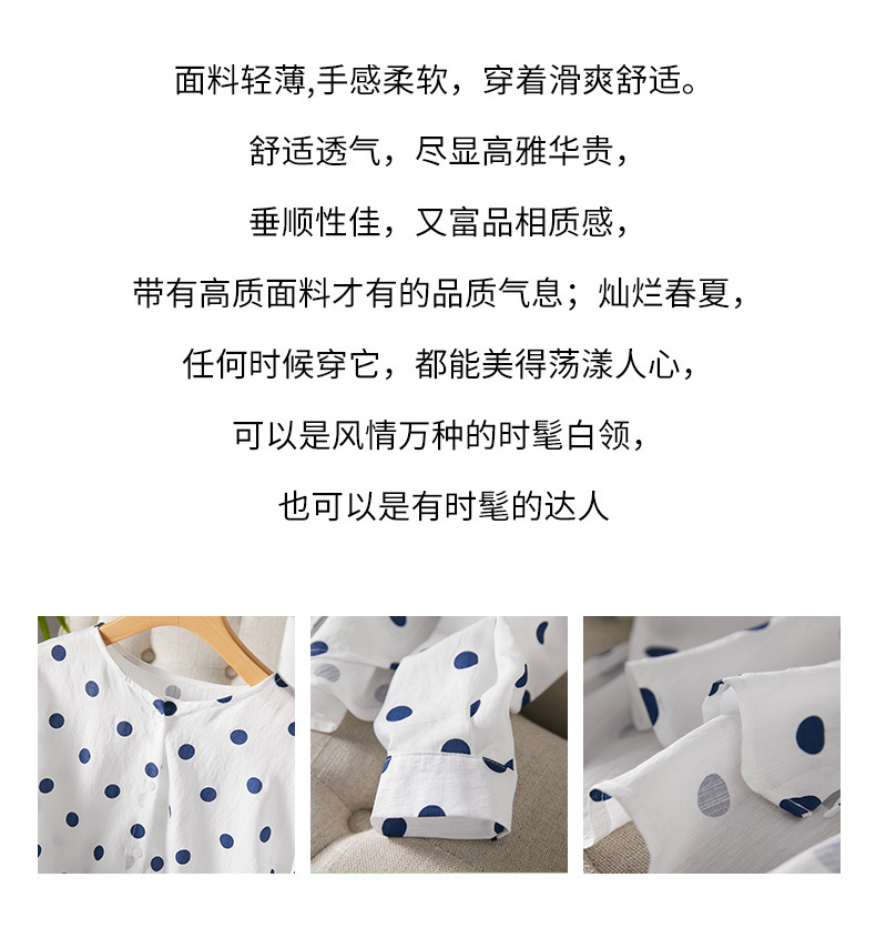 波点印花灯笼袖雪纺衫,透气宽松上衣MJ23061