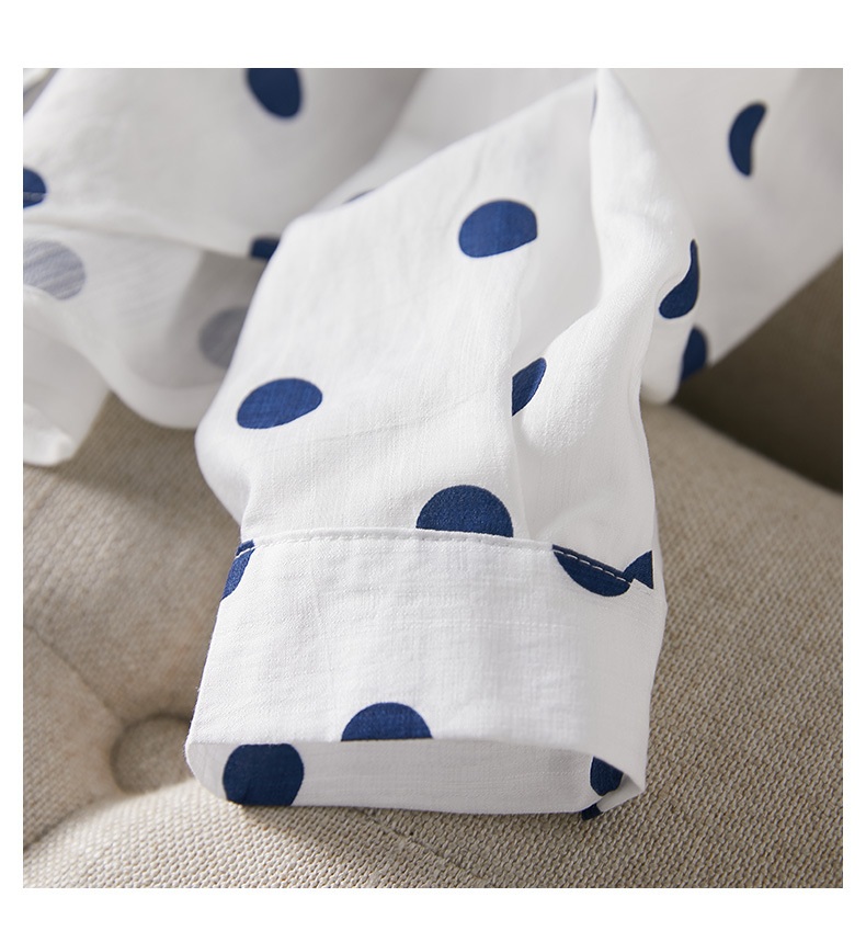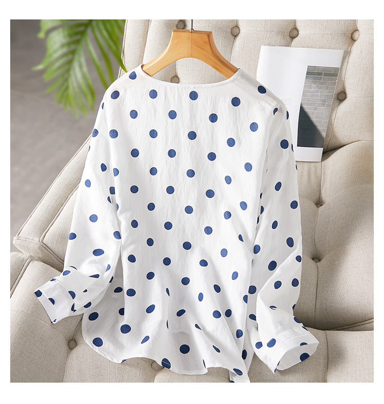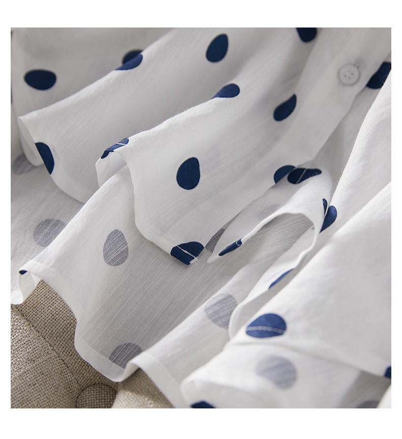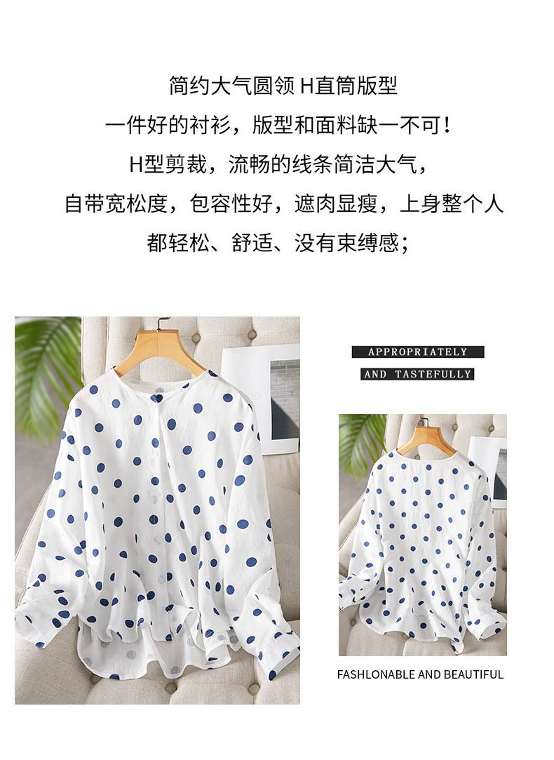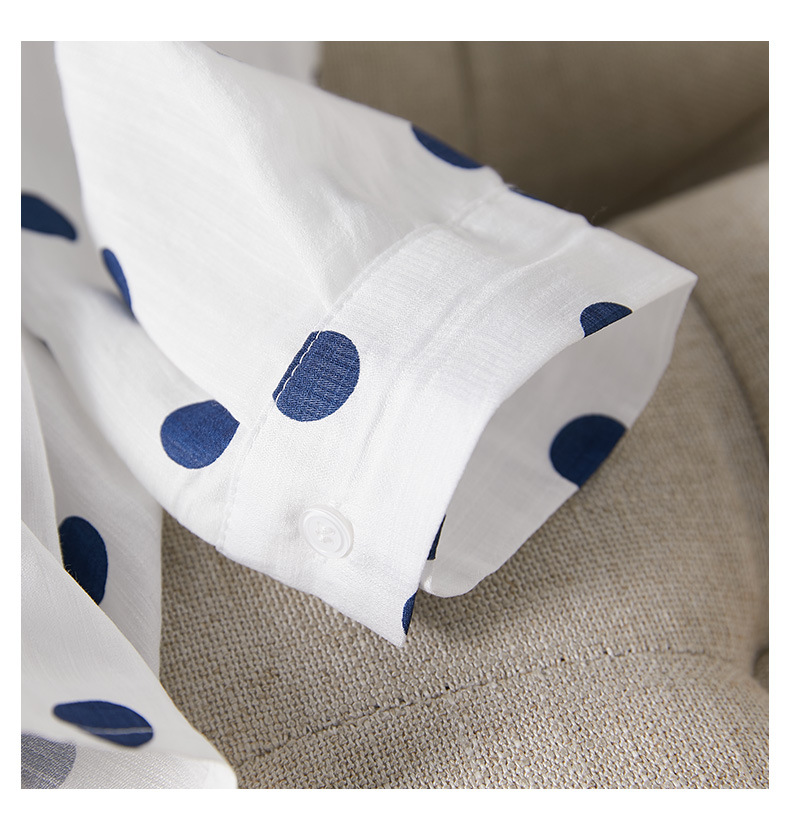 波点印花灯笼袖雪纺衫,透气宽松上衣MJ23061