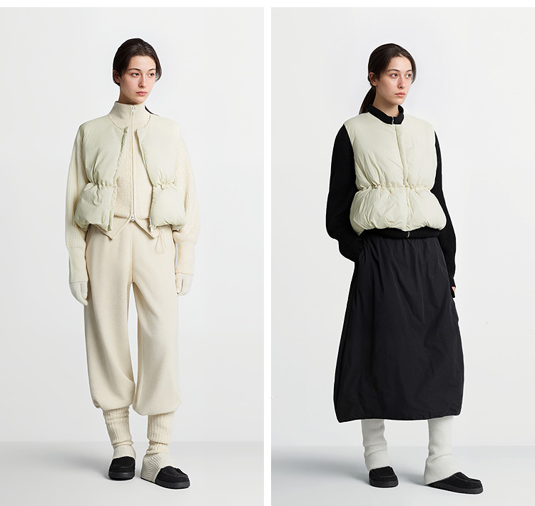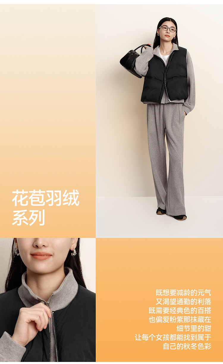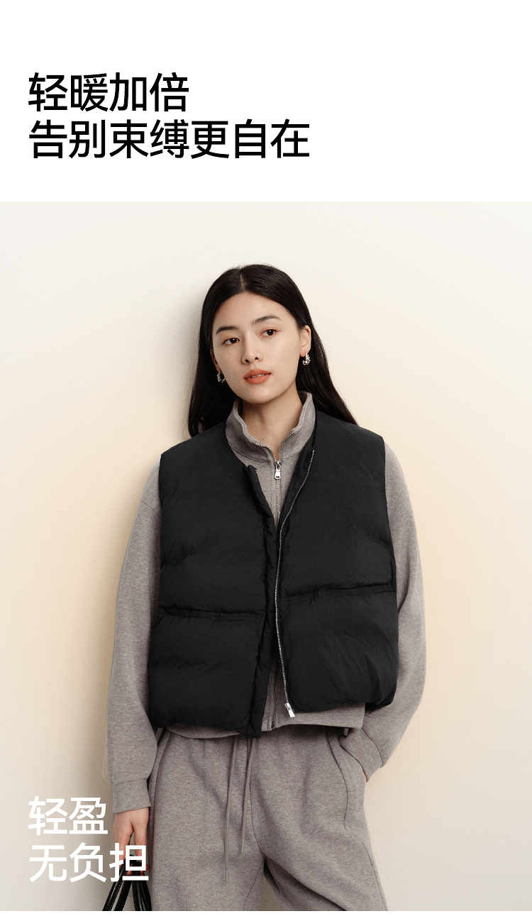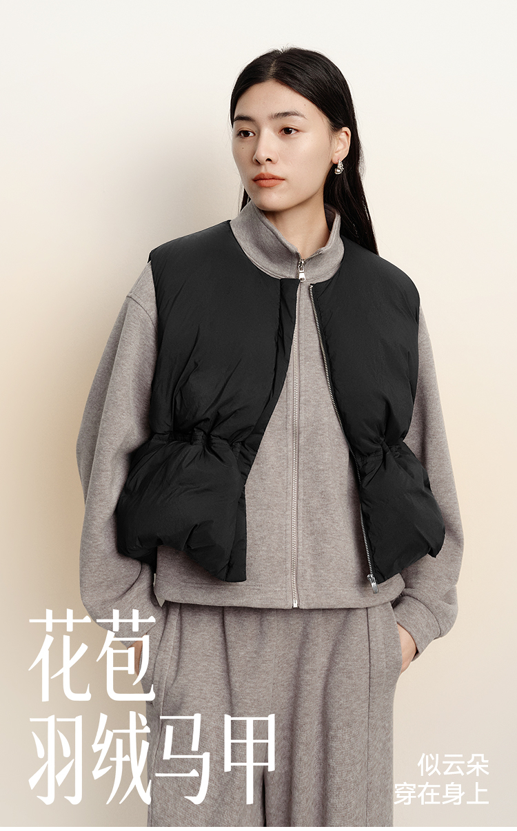 森马羽绒马甲女纯色收腰圆领叠穿2025冬新款oversize肌理花苞外套