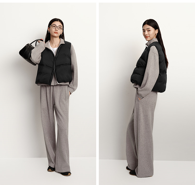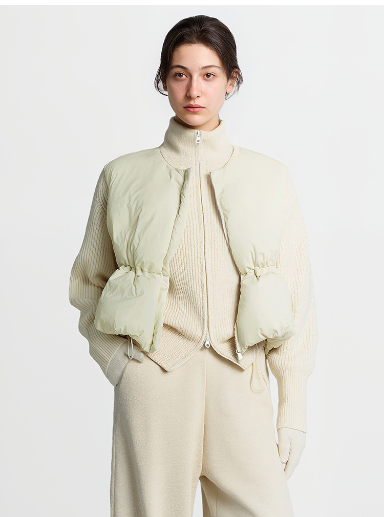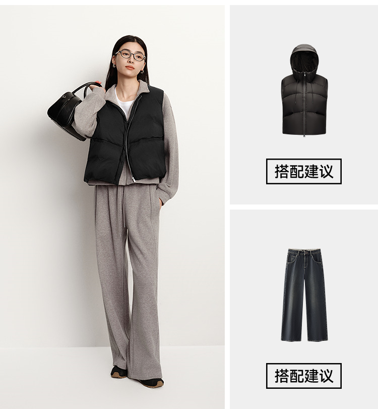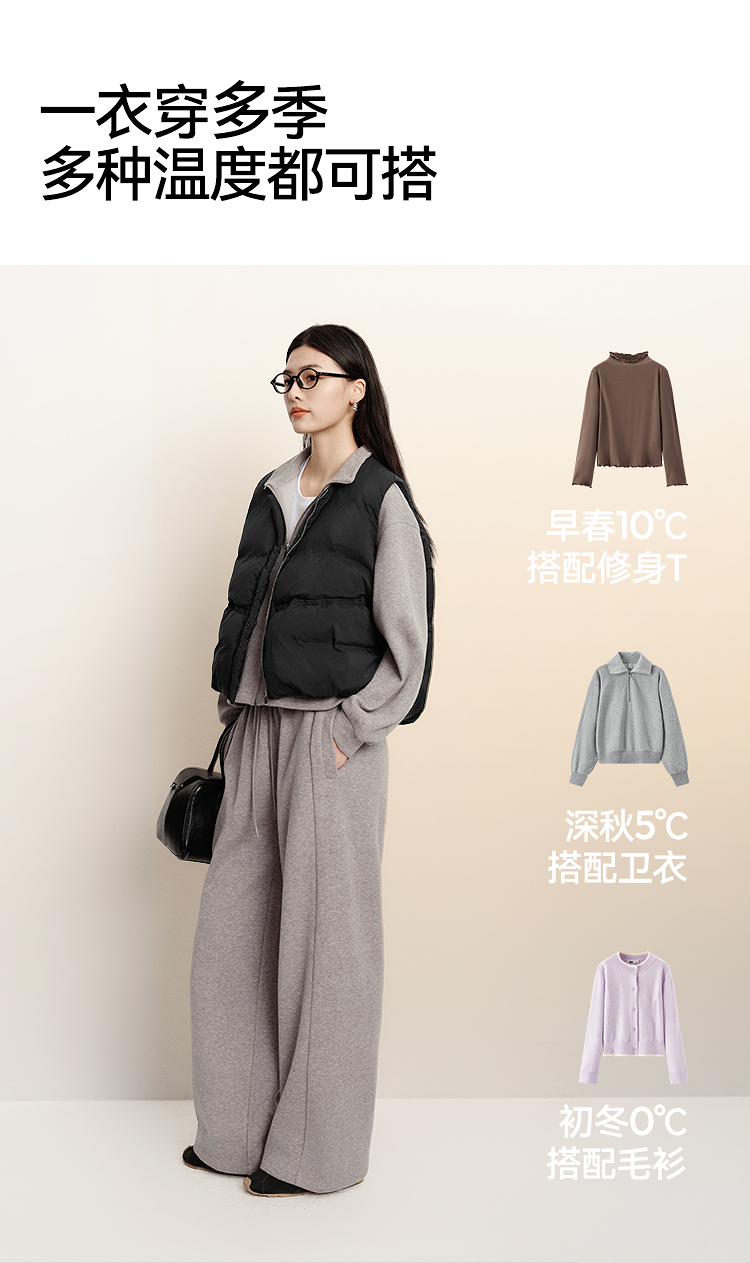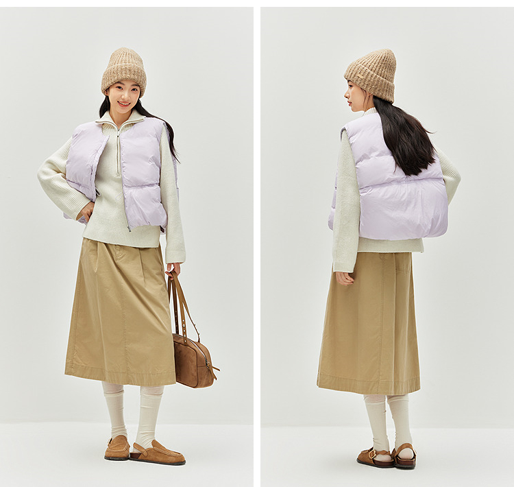 森马羽绒马甲女纯色收腰圆领叠穿2025冬新款oversize肌理花苞外套