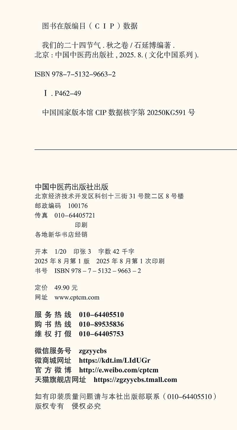 我们的二十四节气(秋之卷)石延博 编著 文化中国系列 民俗、谚语、诗词、饮食、养生等诸多方面 9787513296632中国中医药出版社