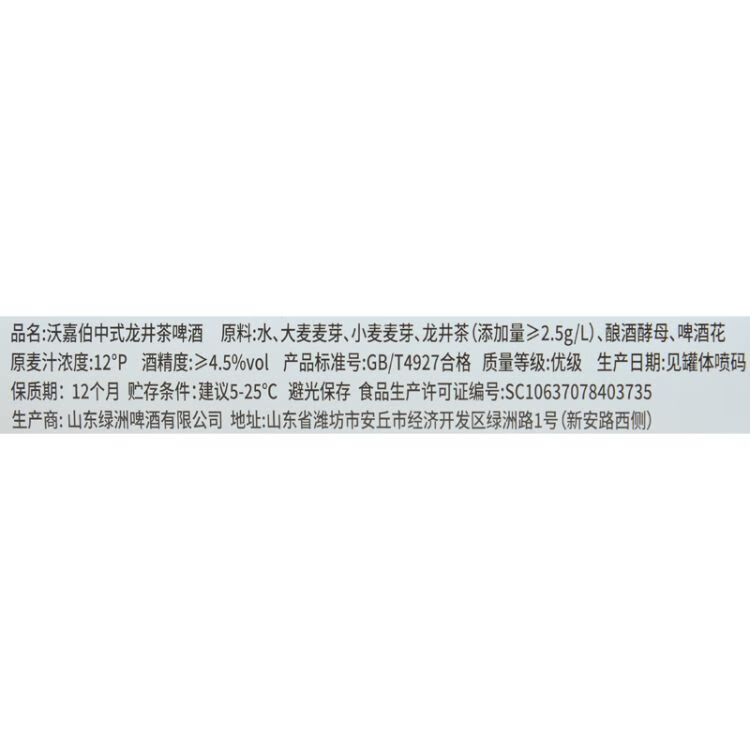 沃嘉伯中式龙井茶啤酒1L/瓶