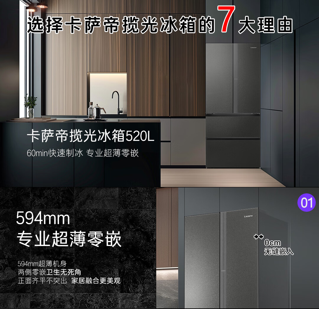 卡萨帝(Casarte)揽光冰箱520升594mm全自动制冰超薄零嵌入式双系统法式多门一级能效冰箱BCD-520WGCFDMGCTU1