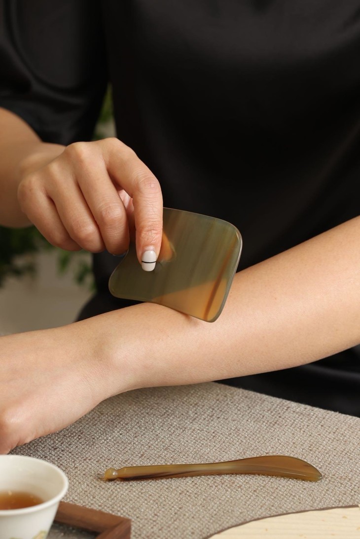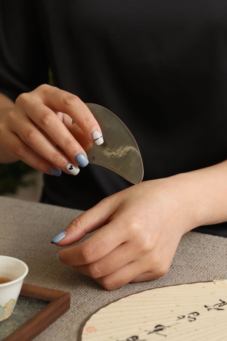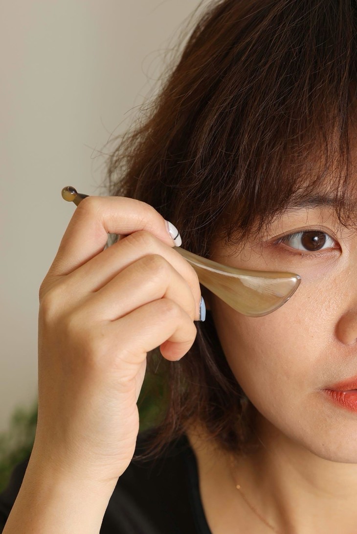 🔻刮痧是传统的自然疗法之一 它是以中医皮部理论为基础 用器具(牛角、玉石、火罐)等在皮肤相关部位刮拭 突破传统以手做按摩的方式 直接将效果作用至真皮层 比起针灸而言 同时刺激的范围更大!能刺激到的穴位更多! 而牛角刮痧板是民间传统最好的刮痧器具 是调理面部皮肤问题的上好器具 改善微循环