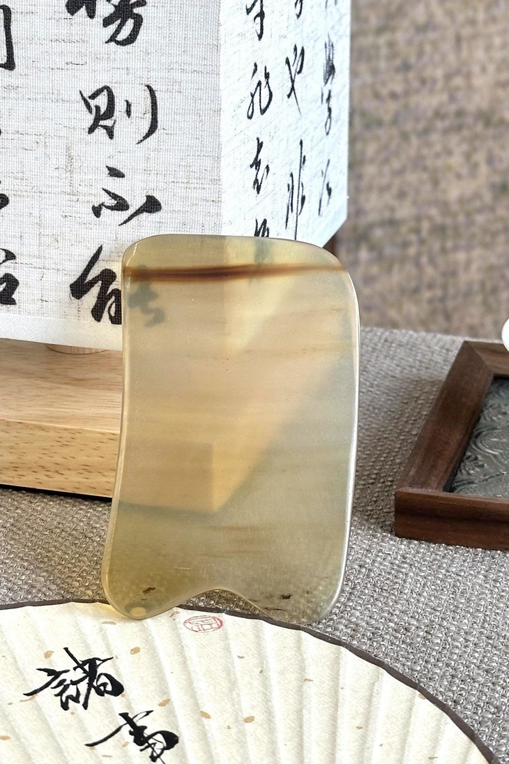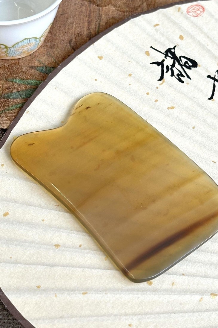🔻天然牛角特别适宜做刮痧板 精心挑选老黄牛角 摸起来相当丝滑 整块材料裁剪下来 纯手工制作 个体之间都会存在纹路、颜色、厚度、长宽等差异 纯牛角科普小课堂: 纹理:真生角纹理独特,色泽圆润,每一只都不同 味道:真牛角有股淡淡腥味,属于正常现象 血丝:真牛角有不同程度的血丝,分布不一