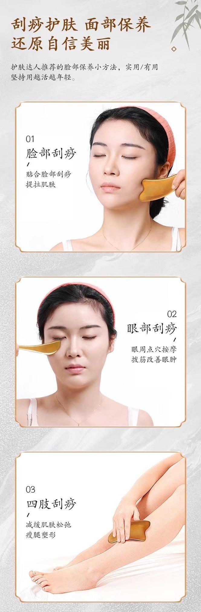 刮莎是以中医经络学为理论基础 通过技术、产品、独特按摩工具的三效合一 通过疏通面部经络 刺激脏腑面部反射点, 好的刮莎板配合正确的手法 从而达到pai毒、驻 -颜、jin致皮肤的作用 也能让护肤品中的有效成分吸收率提升200% 🔻牛角梳刮痧板功效 是中医美容仪,身体理疗仪 配合按摩手法和精油,可用于