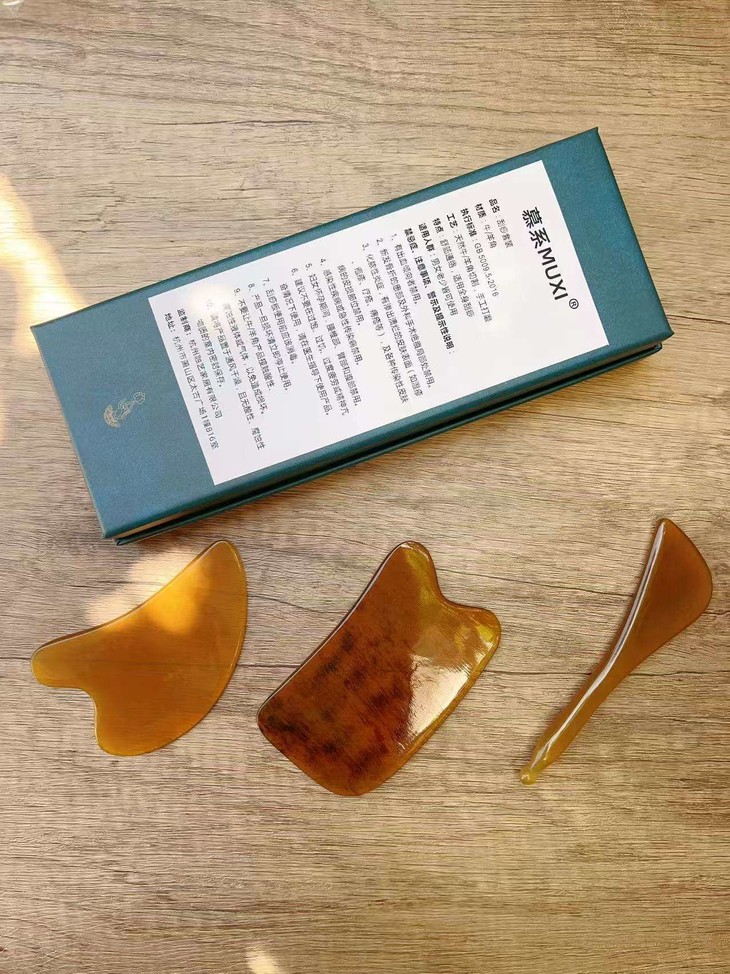【慕系MUXI牛角刮痧板三件套】🌸✅10年龄天然老牛角为原料团✅人体工程学设计 不刺激皮肤🍃购价:49一套三件💐