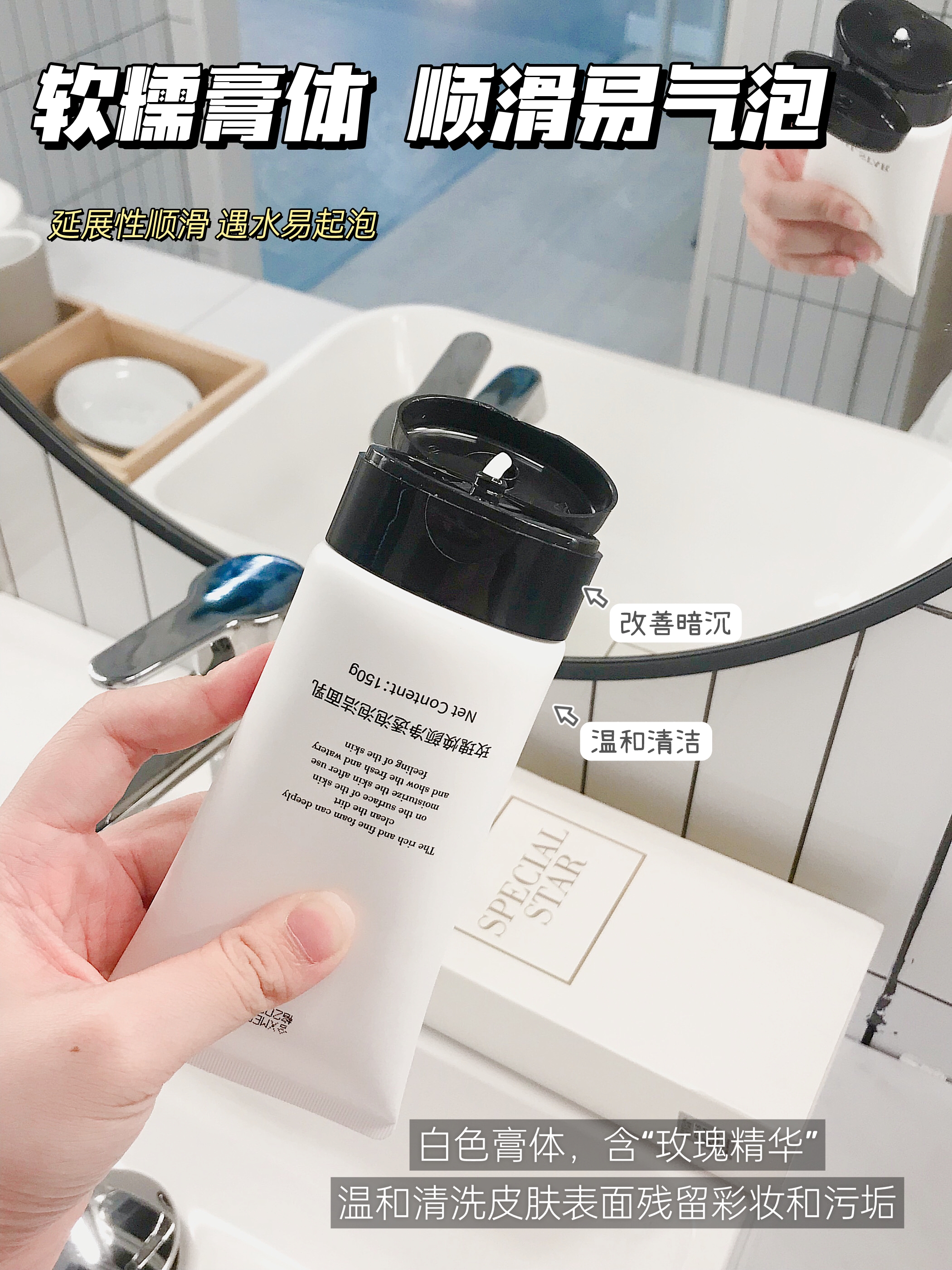 而SPECIAL STAR玫瑰焕颜净透泡泡洁面乳洗后皮肤水润清爽