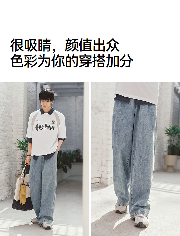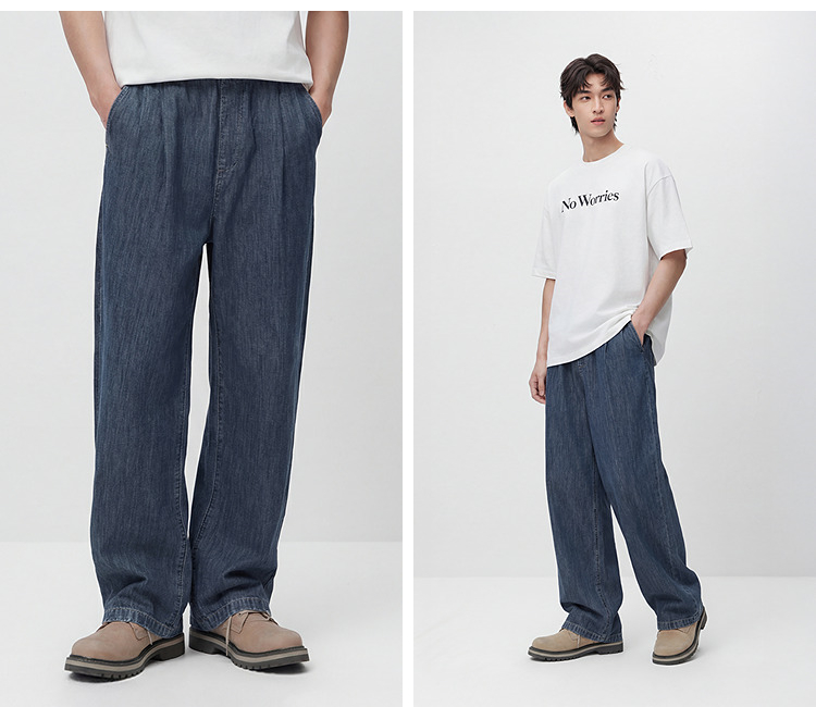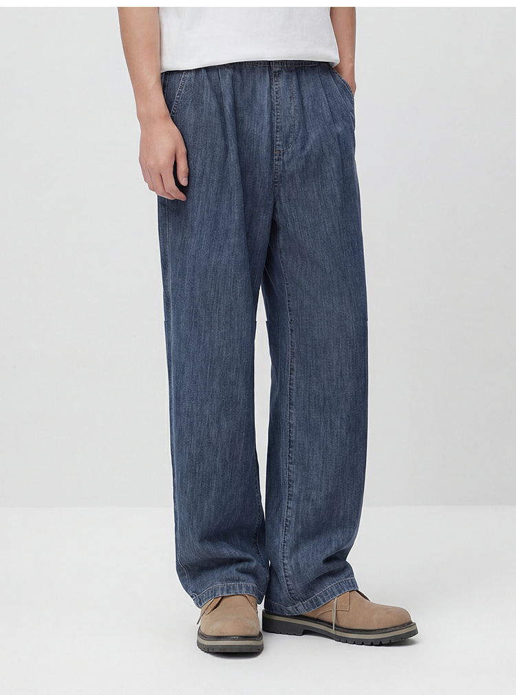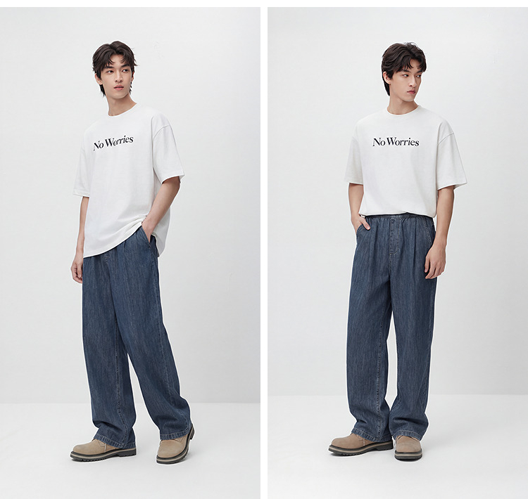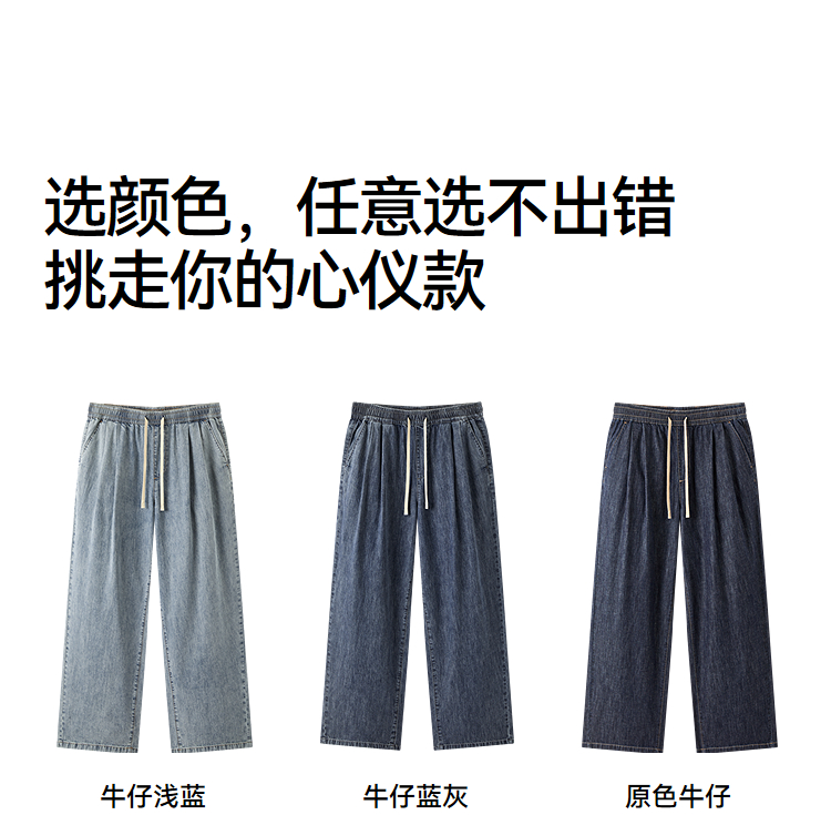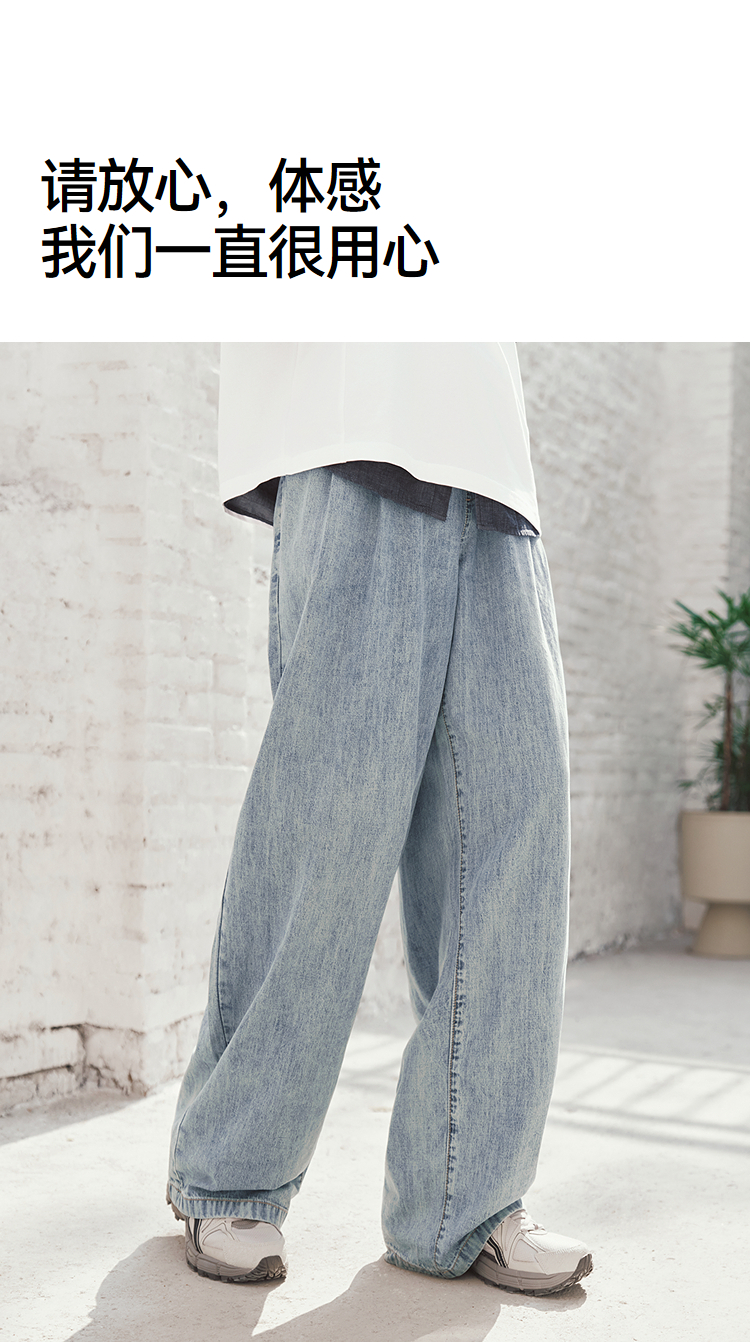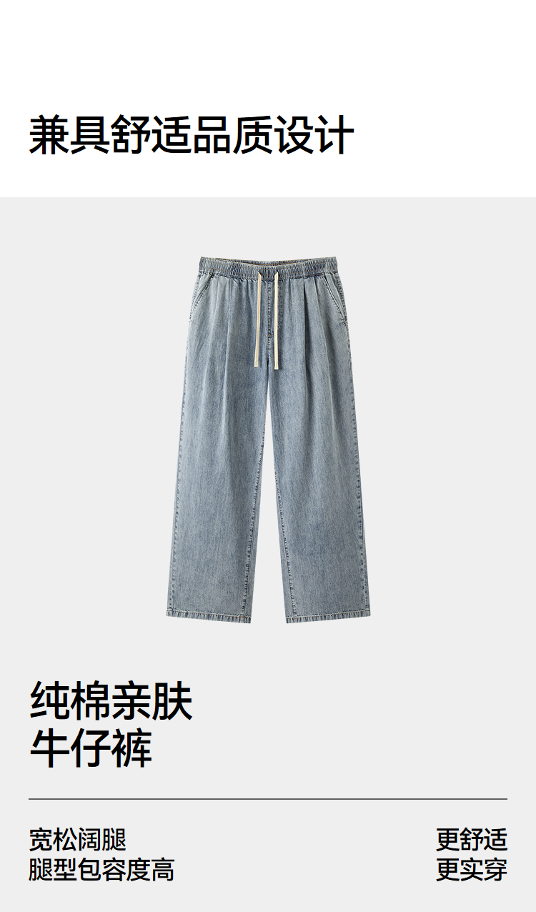森马牛仔裤男夏季纯棉亲肤宽松阔腿裤2026新款松紧腰抽绳微褶长裤