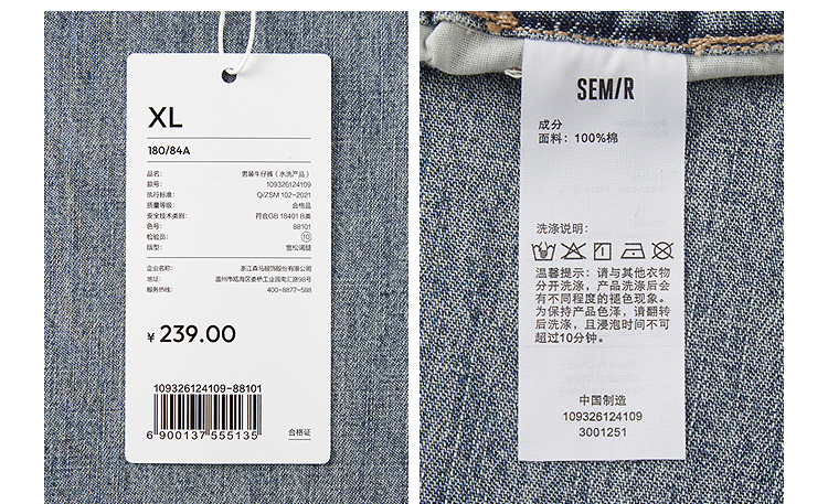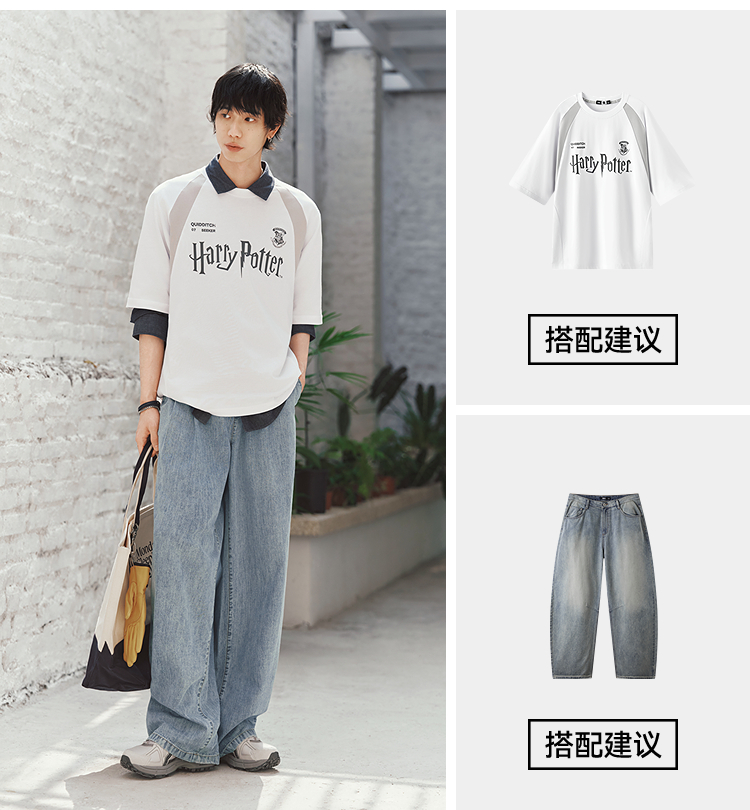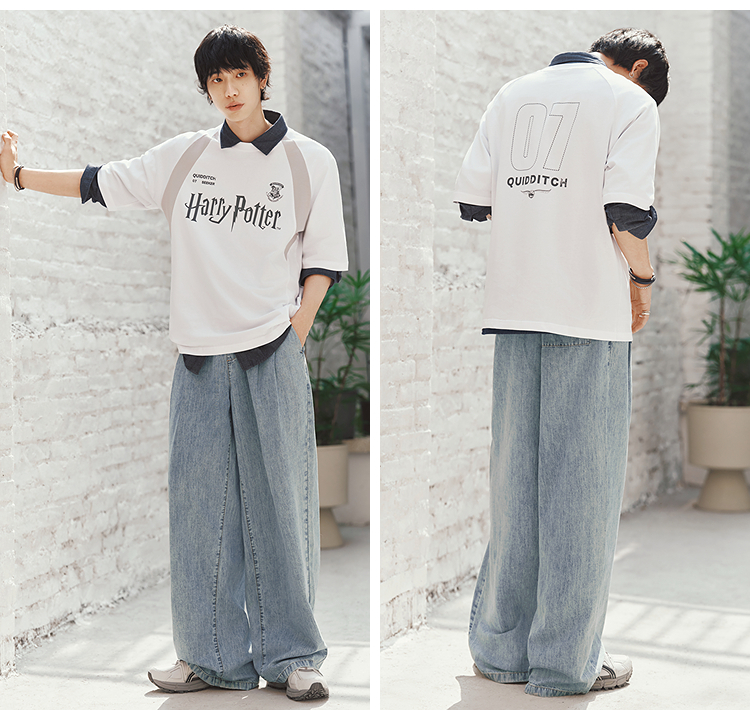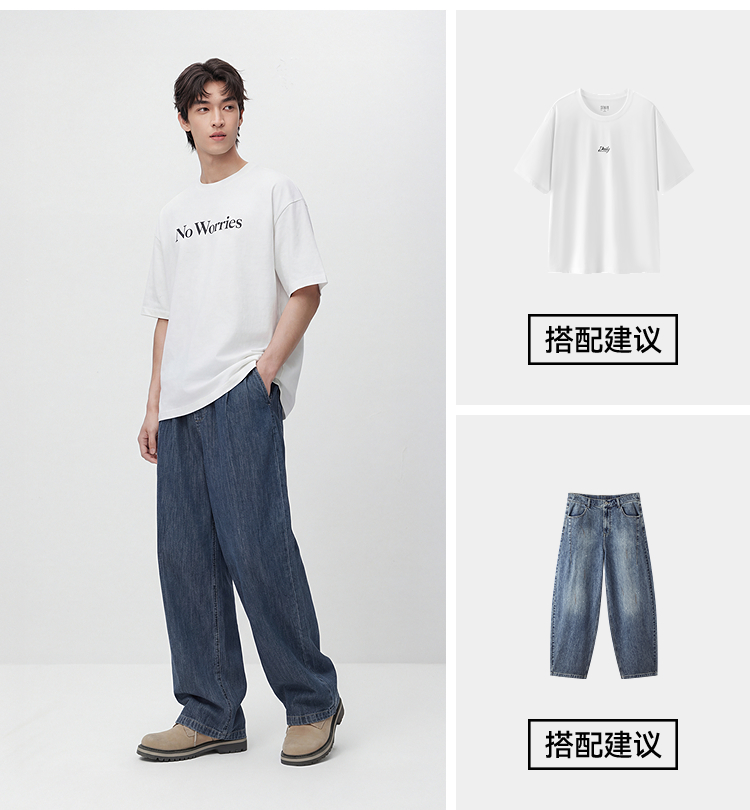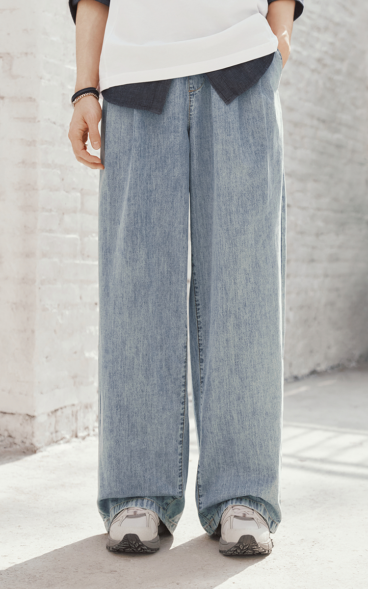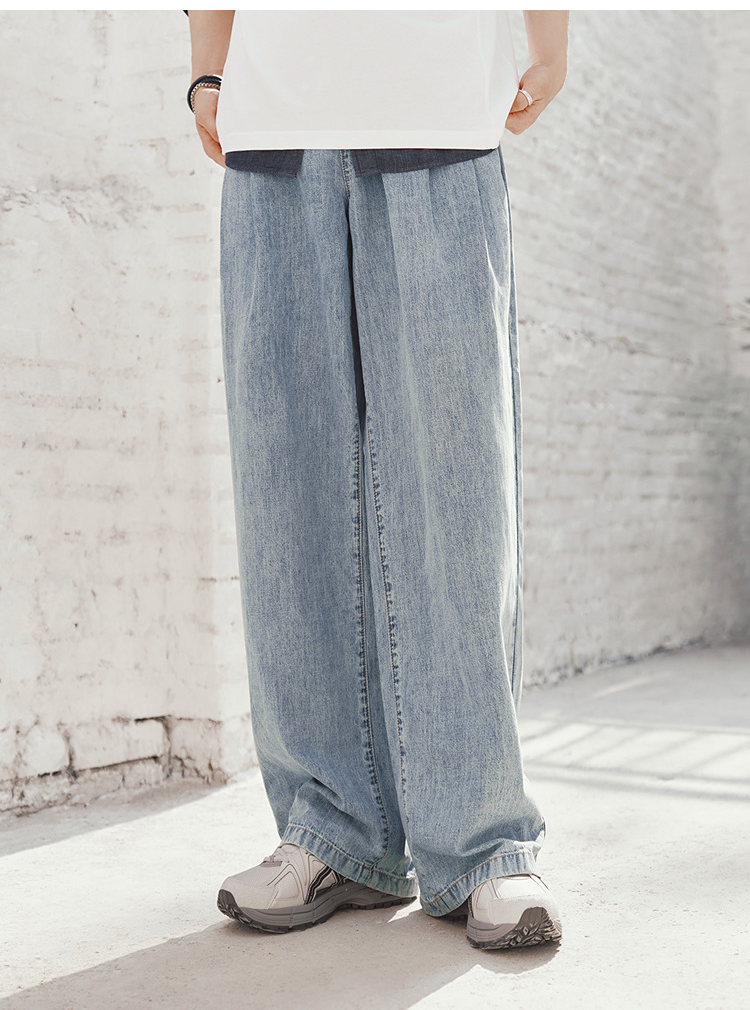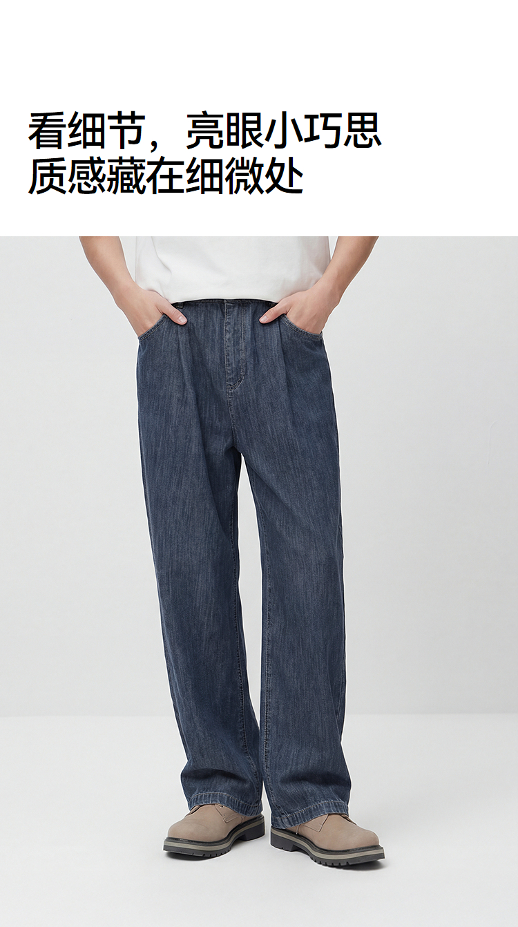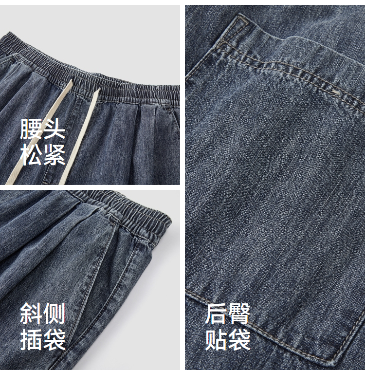 森马牛仔裤男夏季纯棉亲肤宽松阔腿裤2026新款松紧腰抽绳微褶长裤