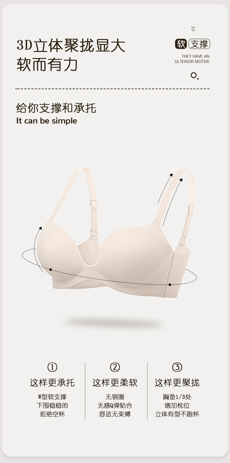 云思飞扬 文胸(VIP) 内衣女士小胸聚拢无痕光面收副乳防下垂上托文胸胸罩