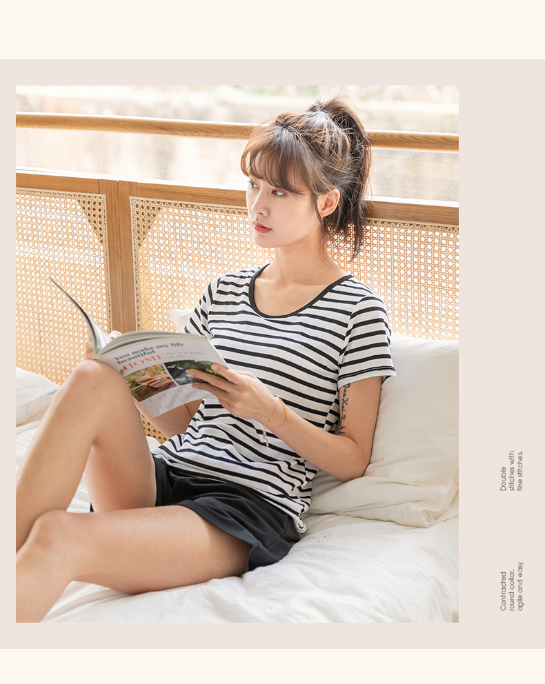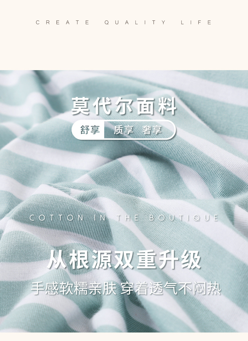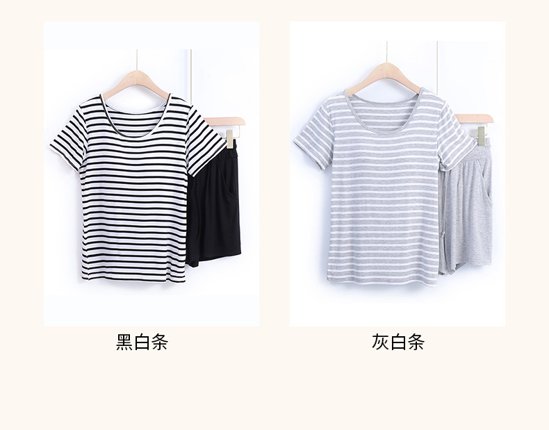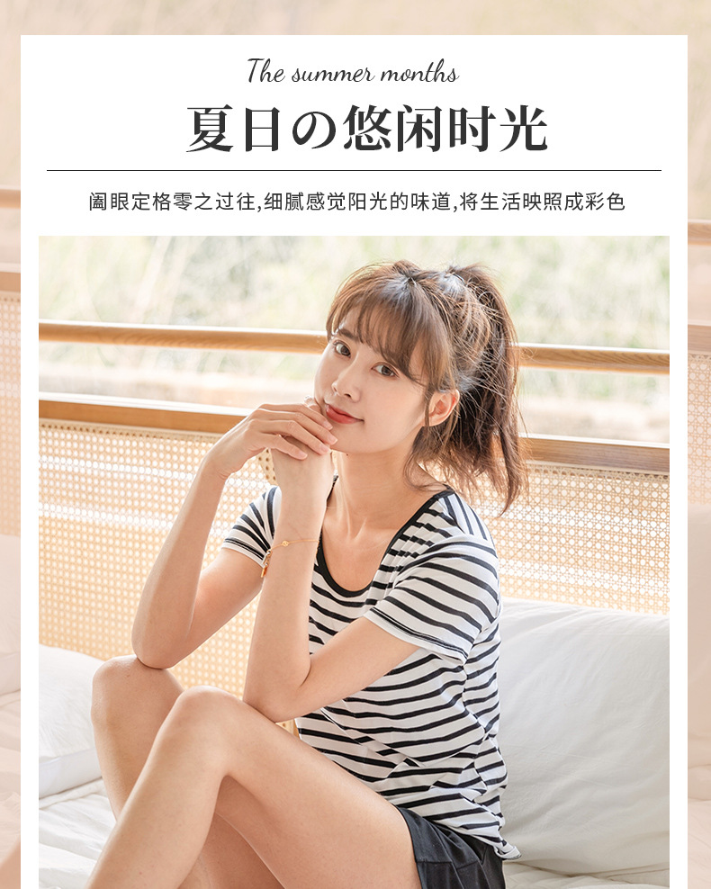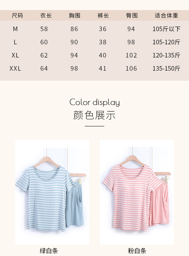 莫代尔居家服睡衣女套装带胸垫条纹女短袖t恤上衣短裤睡裙睡袍bra