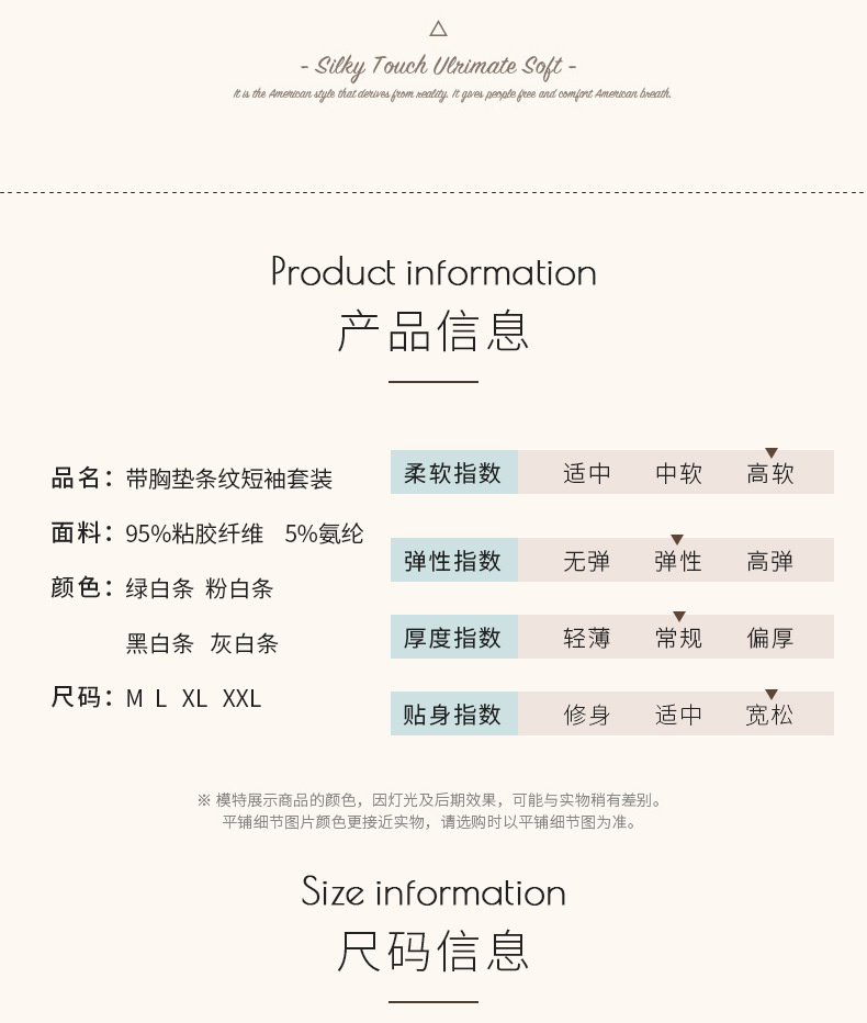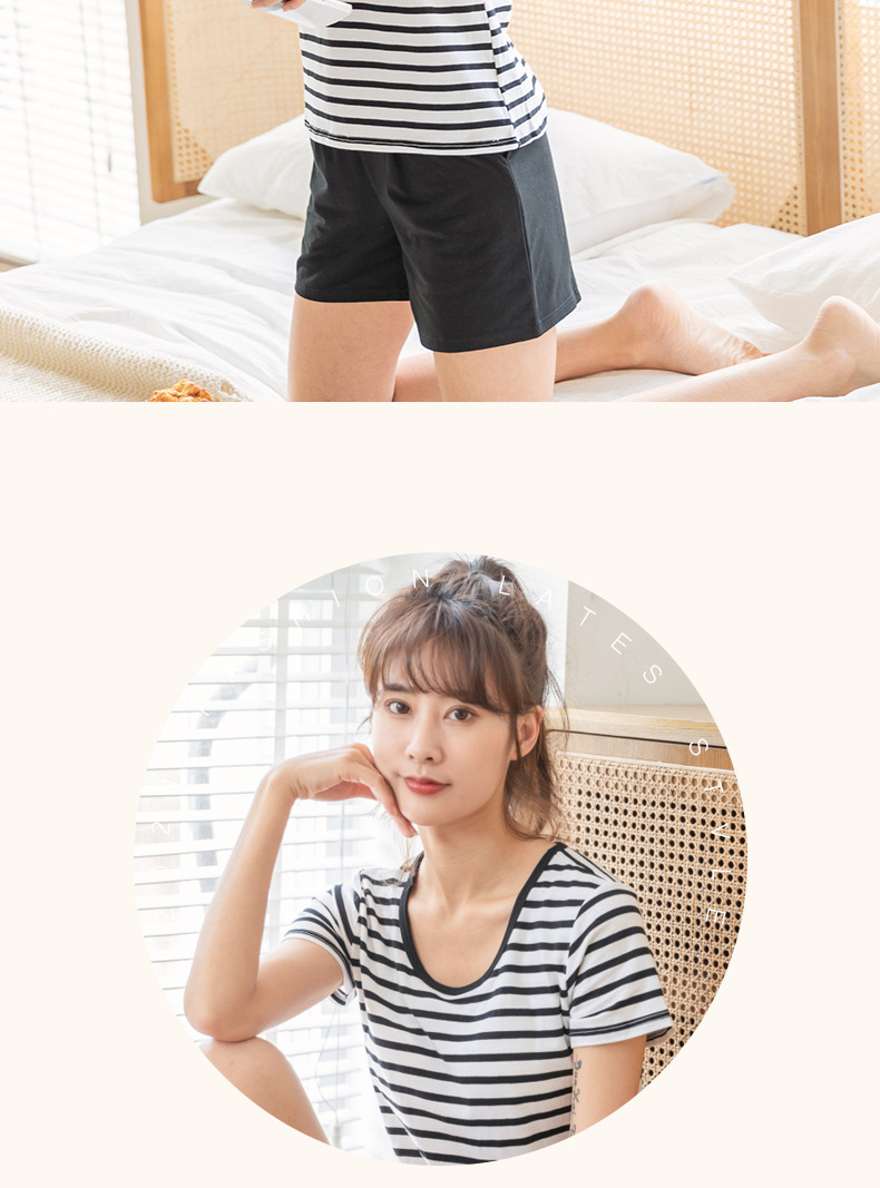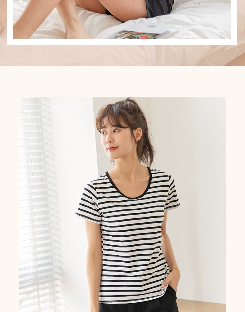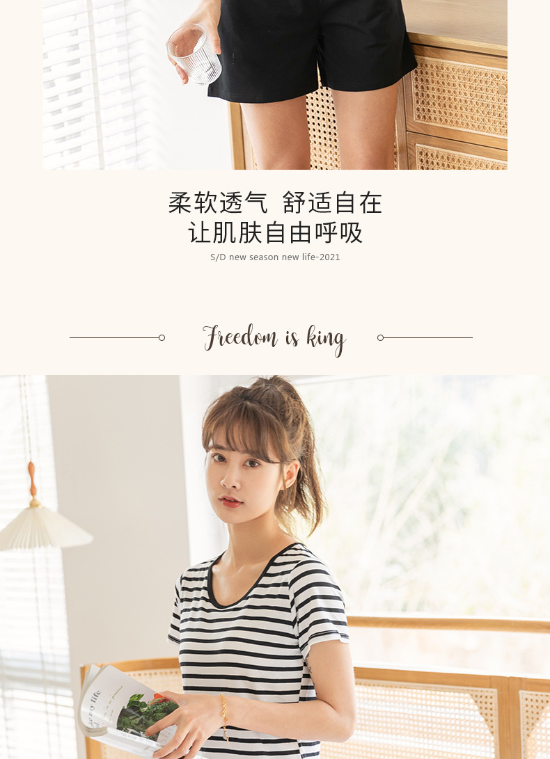 莫代尔居家服睡衣女套装带胸垫条纹女短袖t恤上衣短裤睡裙睡袍bra
