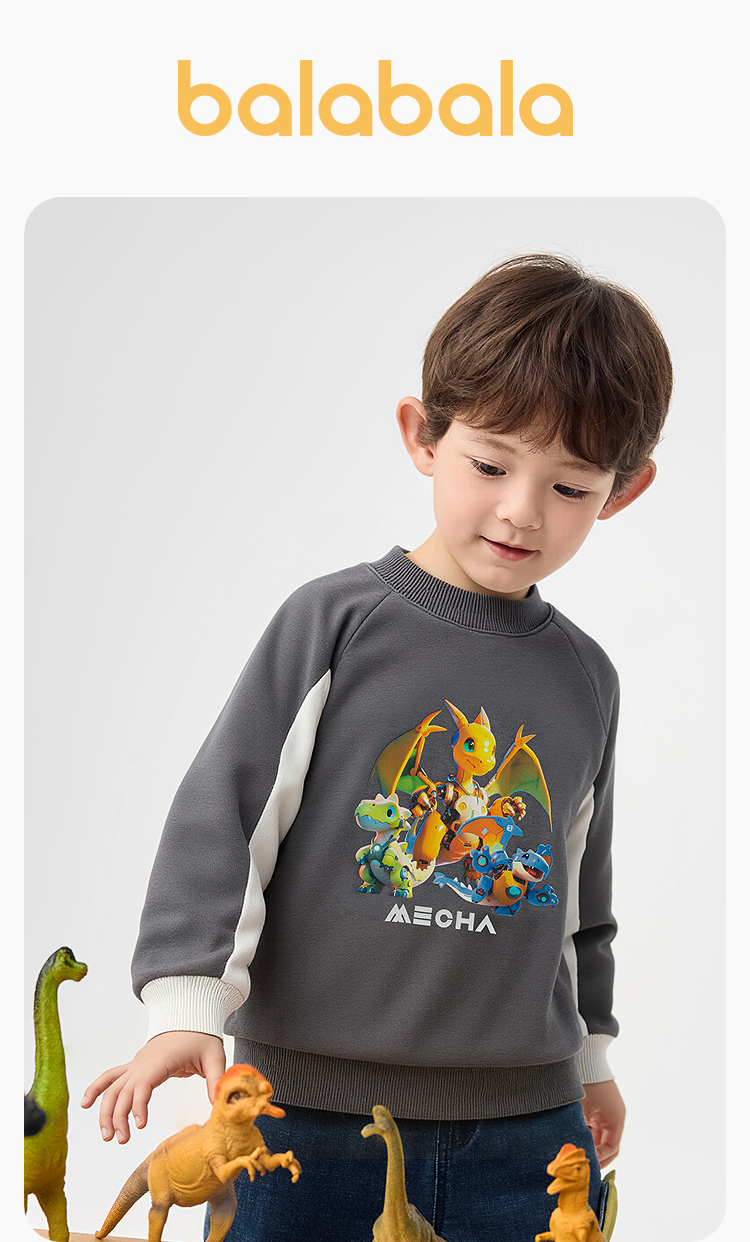 巴拉巴拉童装儿童卫衣男童秋冬加绒内搭恐龙印花潮酷户外上衣流行