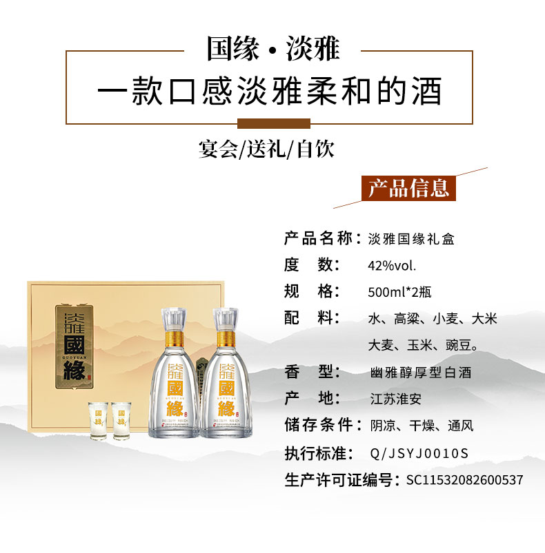 【酒厂直营】国缘淡雅礼盒 42度500ml 2瓶装