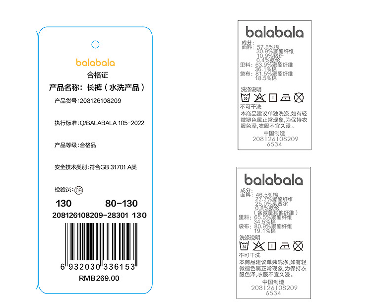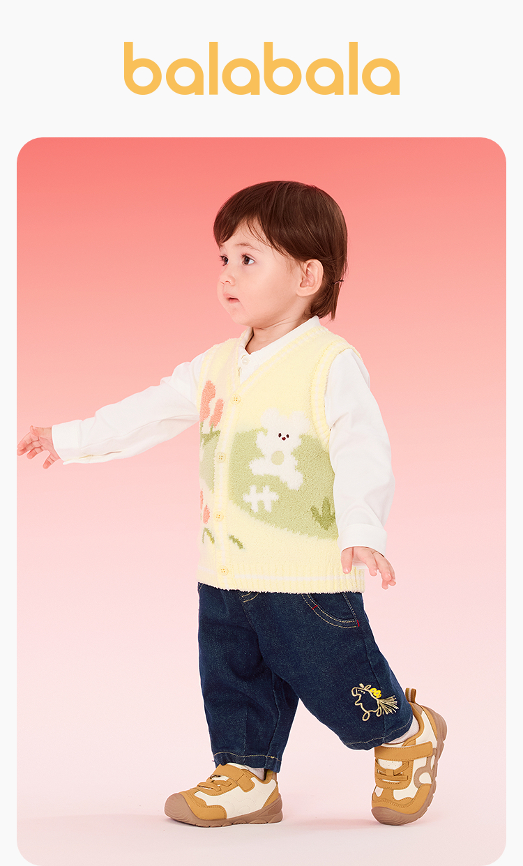 【balaOne】巴拉巴拉童装儿童长裤男童女童牛仔裤春2025新款复古