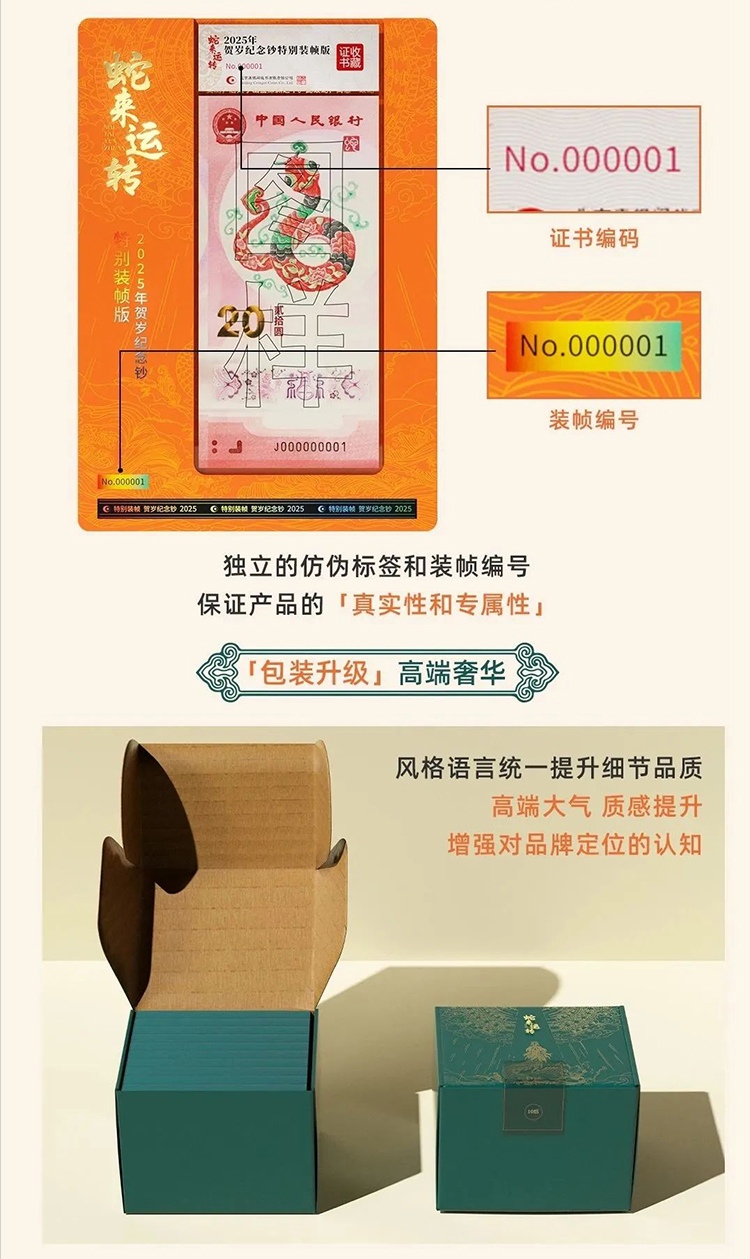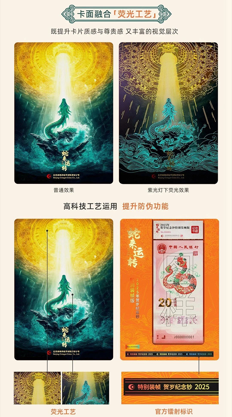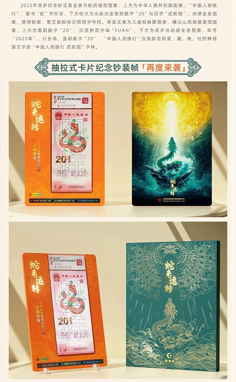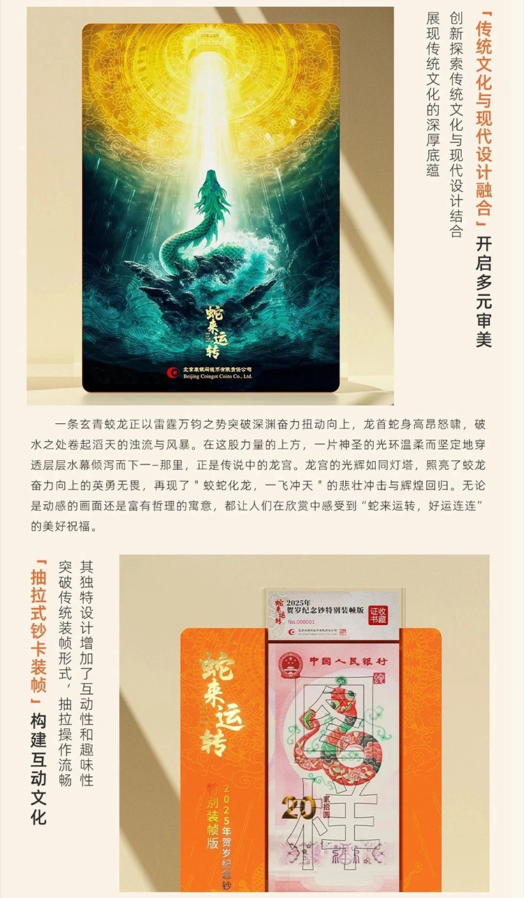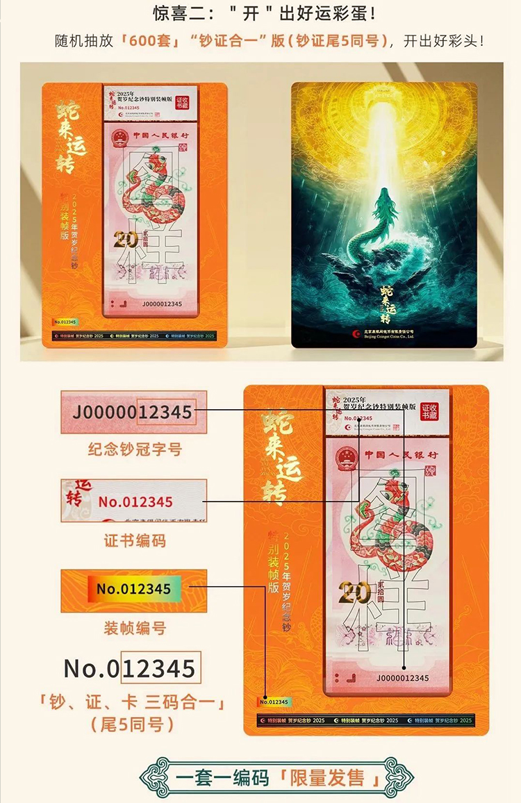 《蛇来运转--2025年贺岁纪念钞特别装帧册》限量装帧6万套。