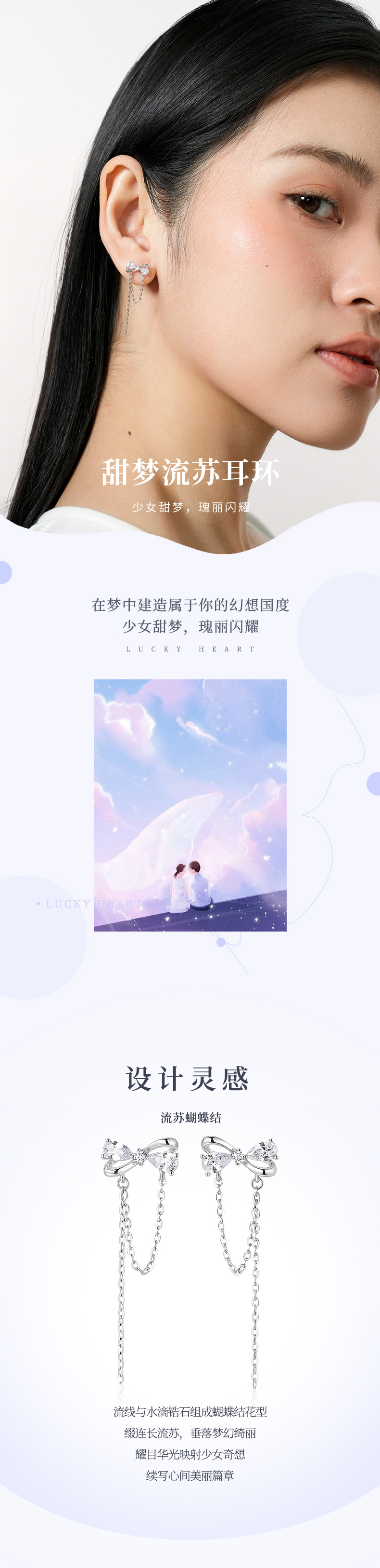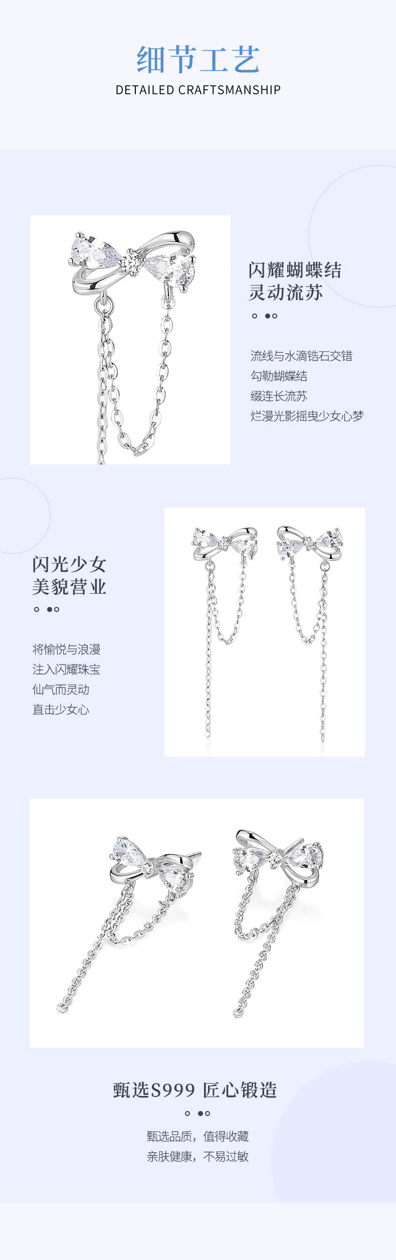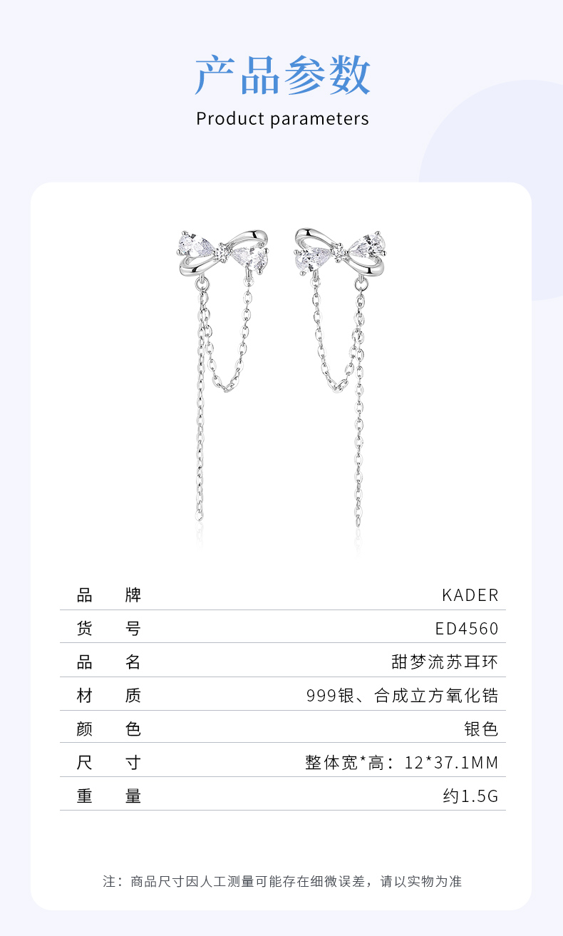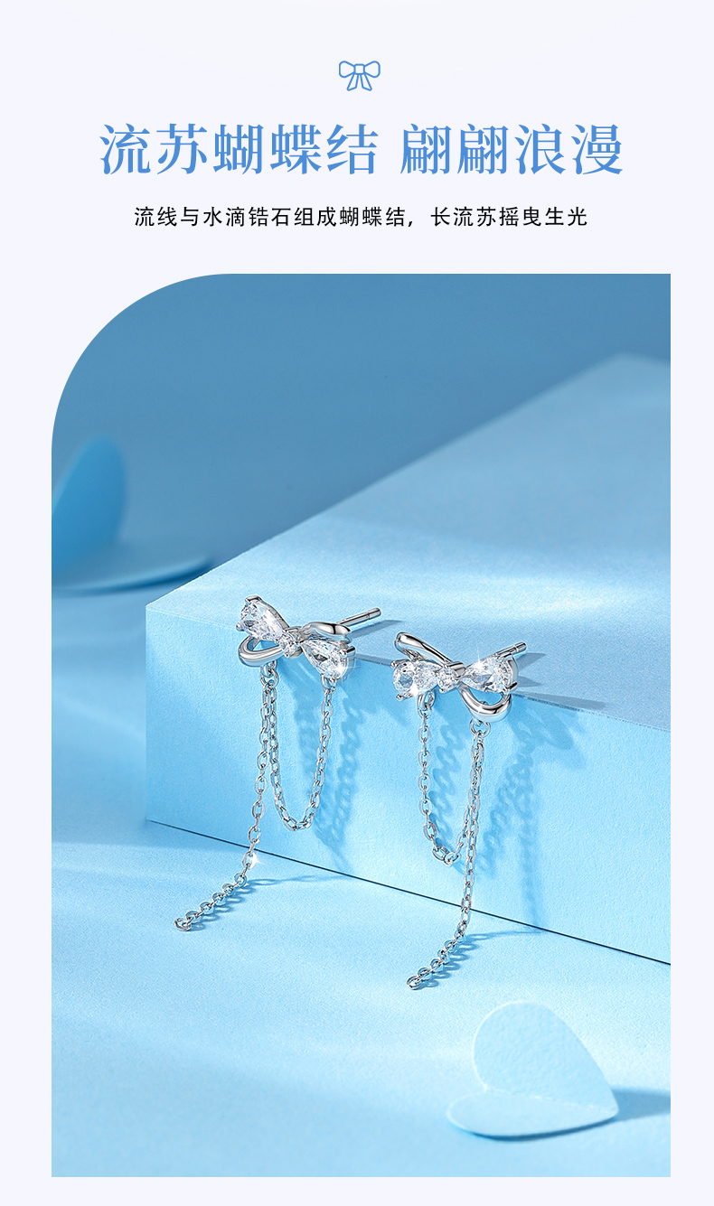 【999足银】卡蒂罗/KADER 甜梦流苏蝴蝶结耳坠甜美小清新耳饰女 在逃公主原创仙气设计气质时尚百搭 女神节礼盒款