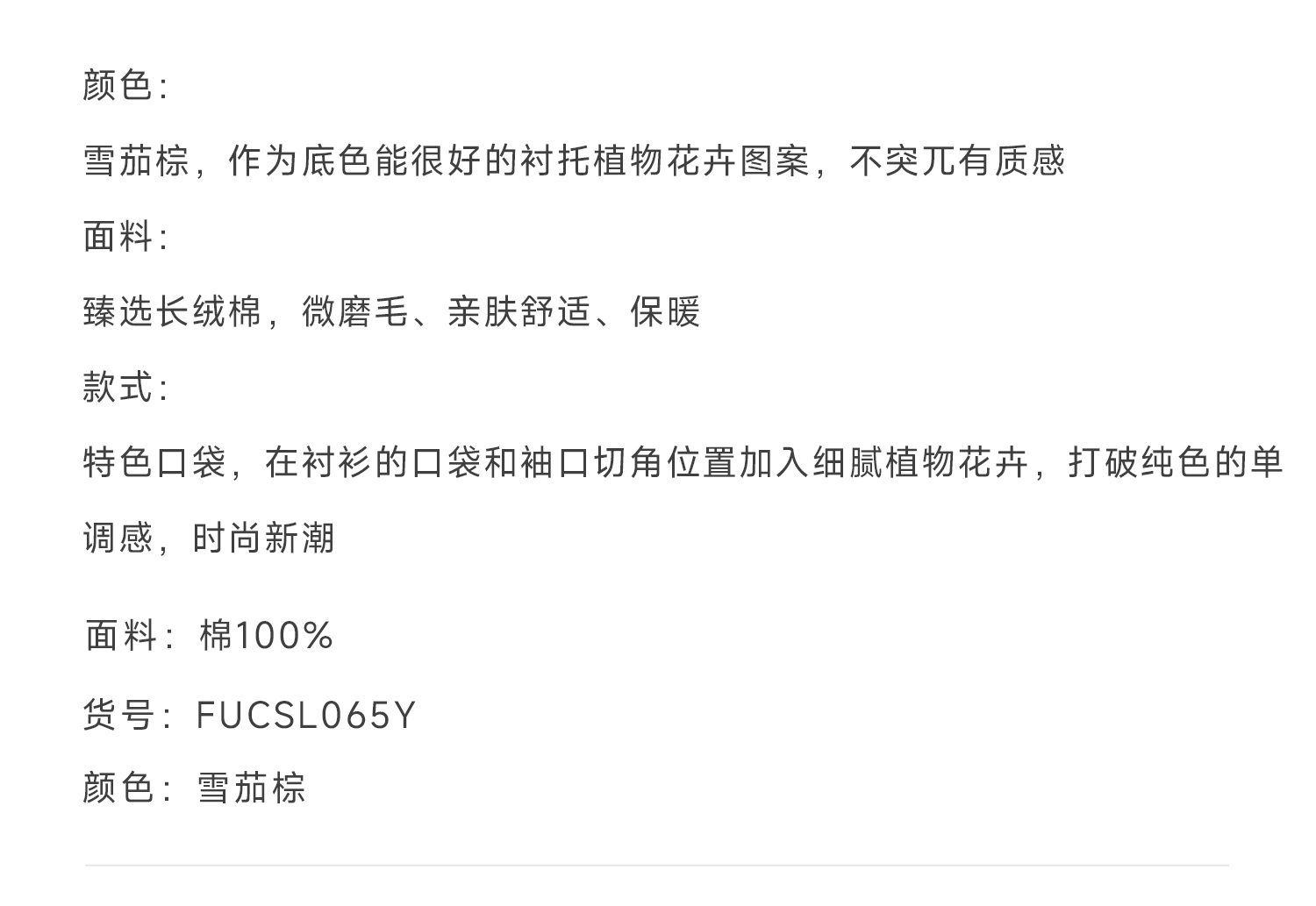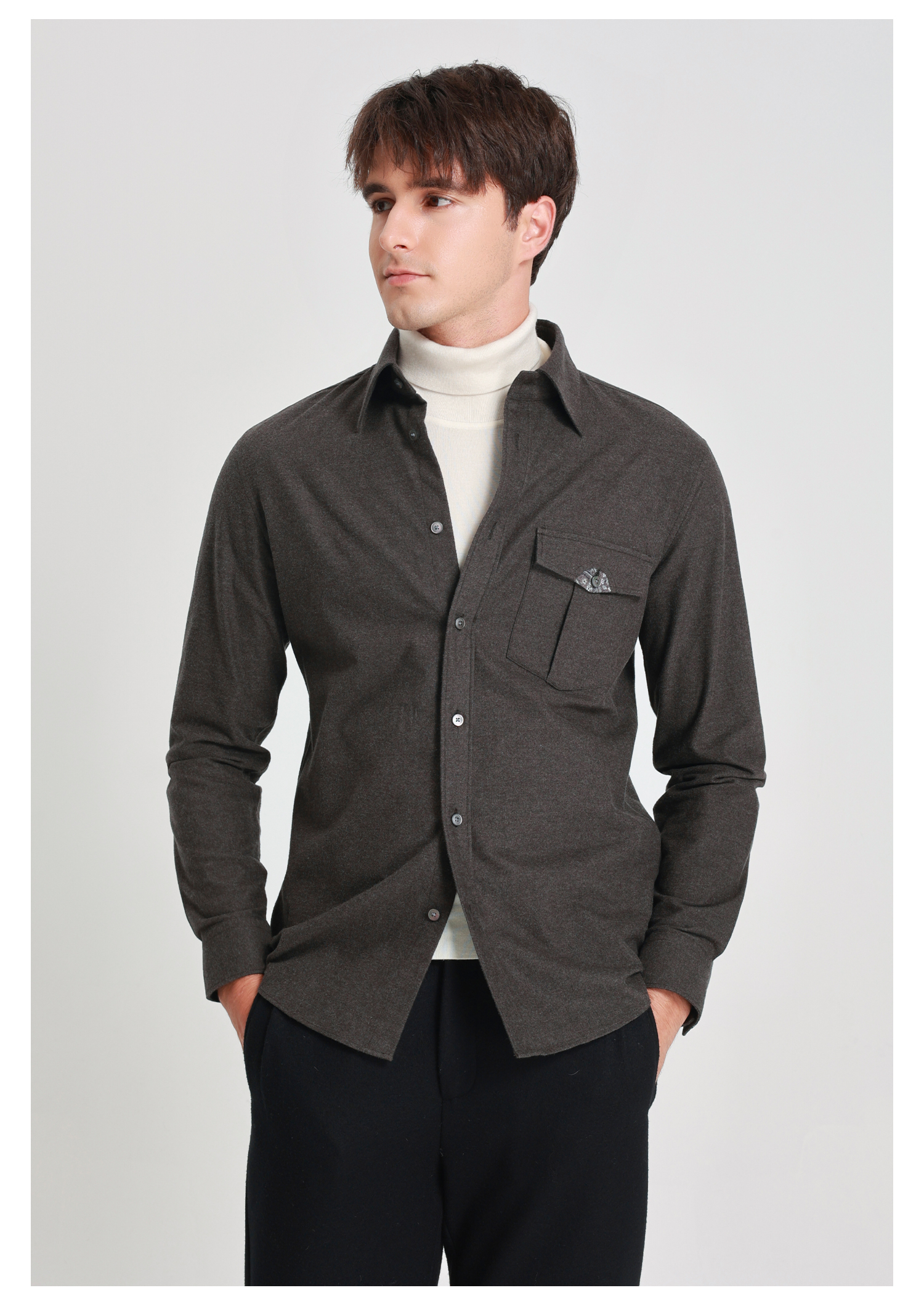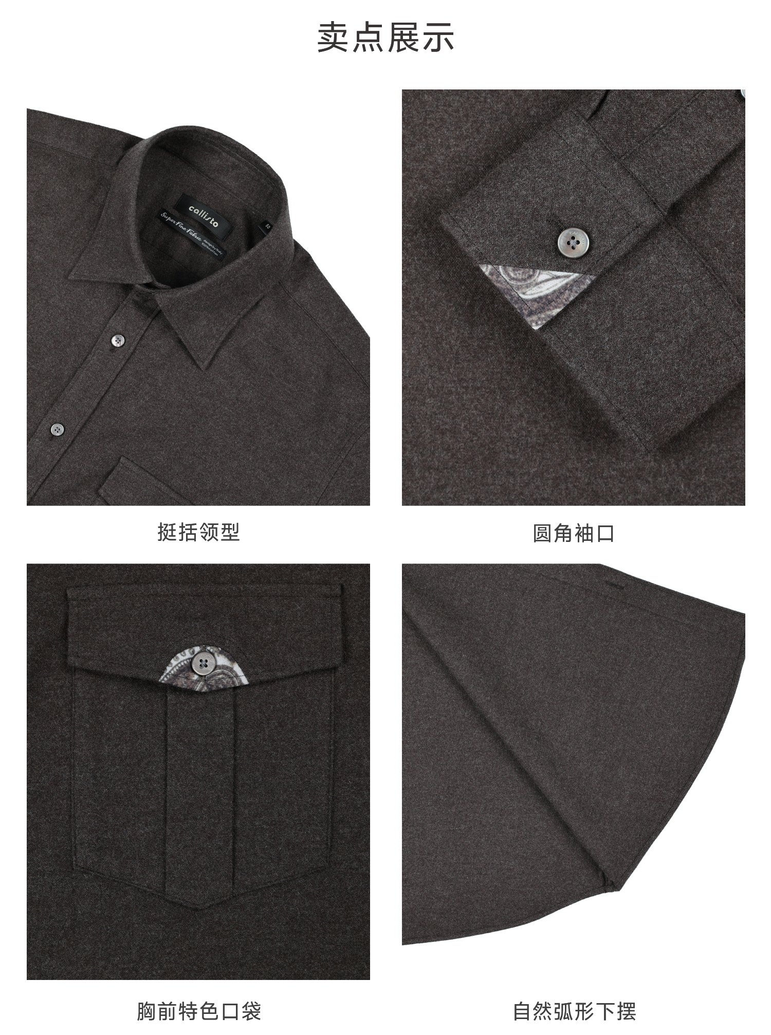 callisto雪茄棕长绒棉休闲长袖衬衫