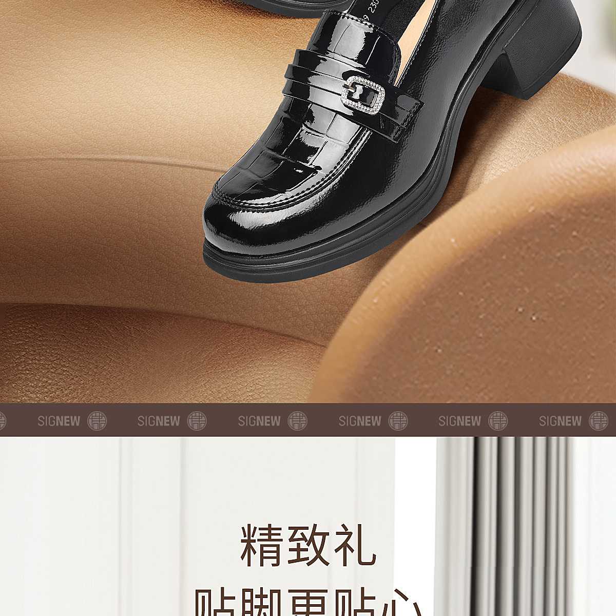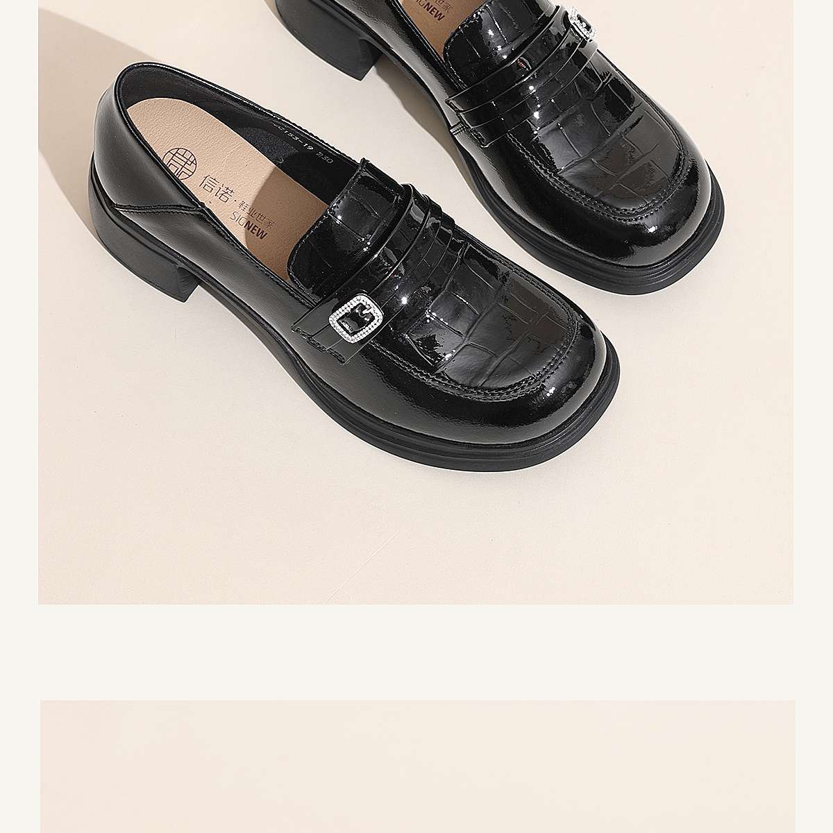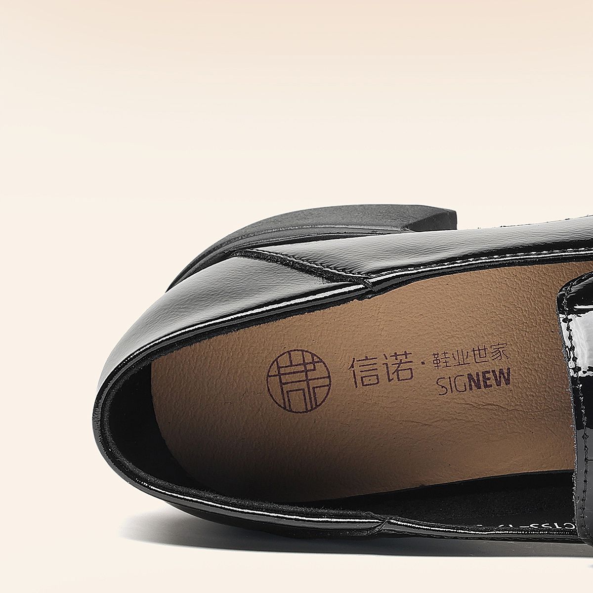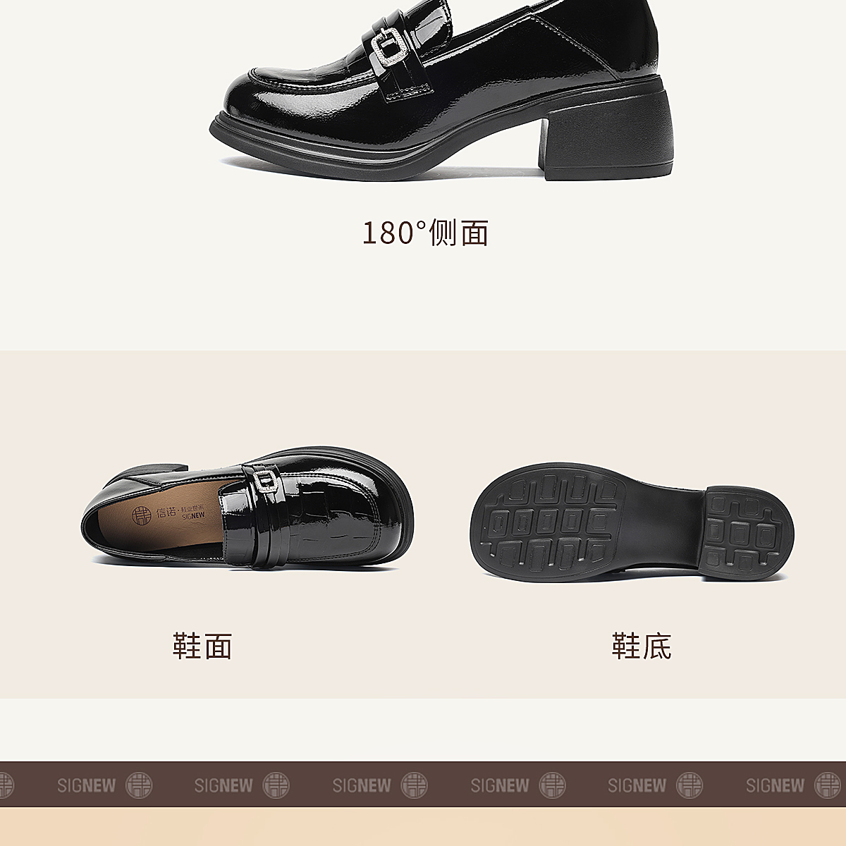 信诺妈妈鞋子英伦风漆皮乐福鞋女粗跟黑色单鞋小皮鞋2026春季新款X6C153-19