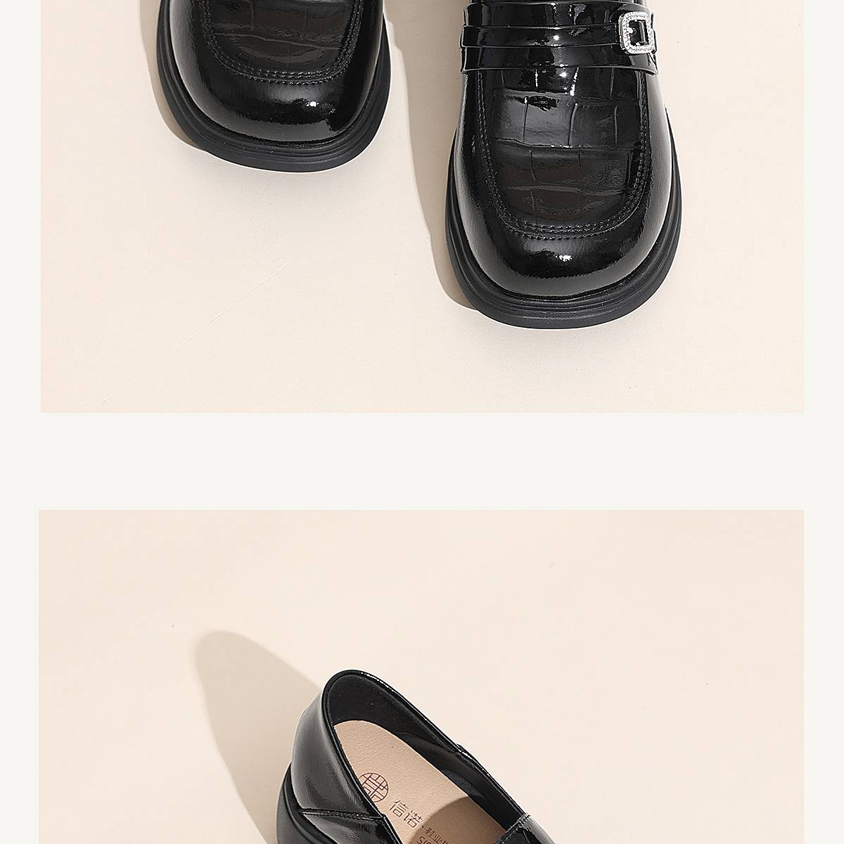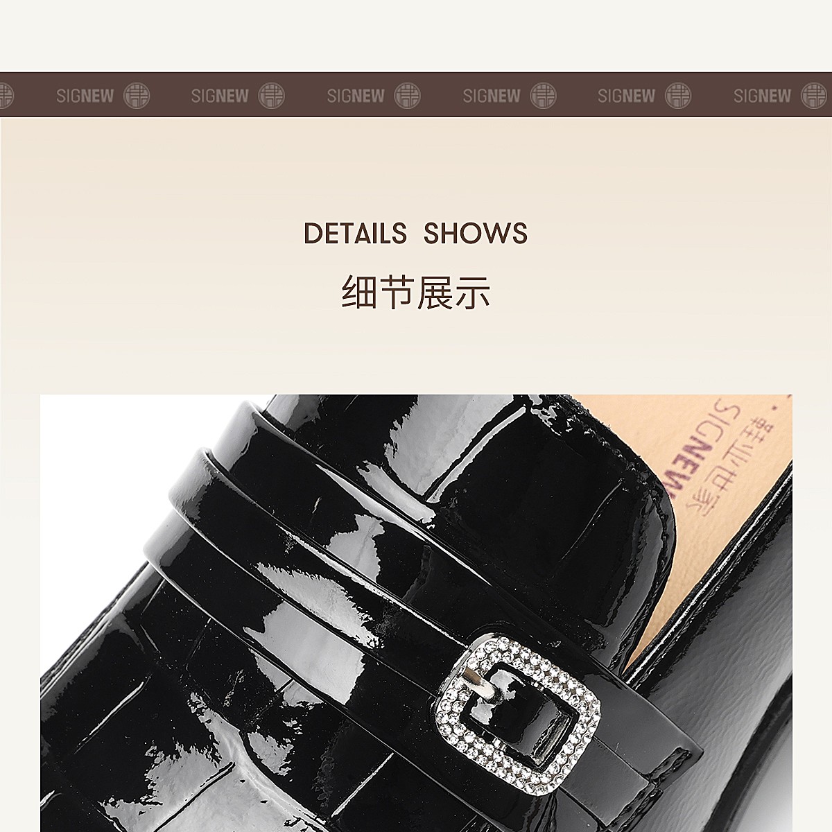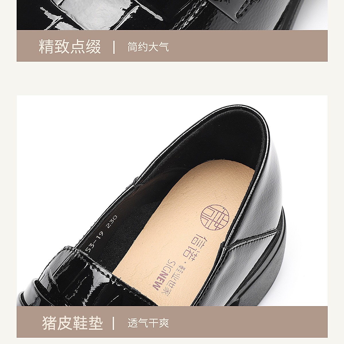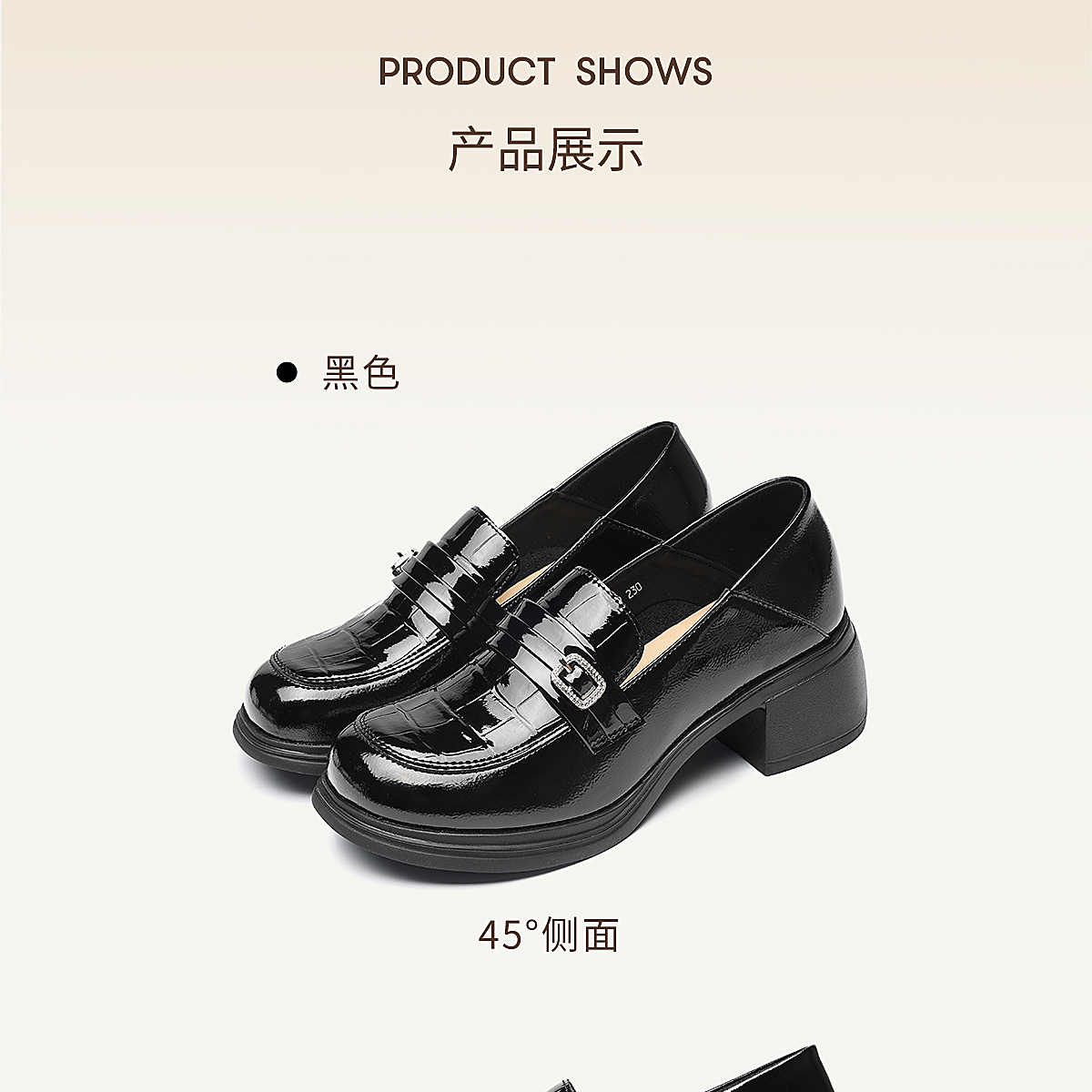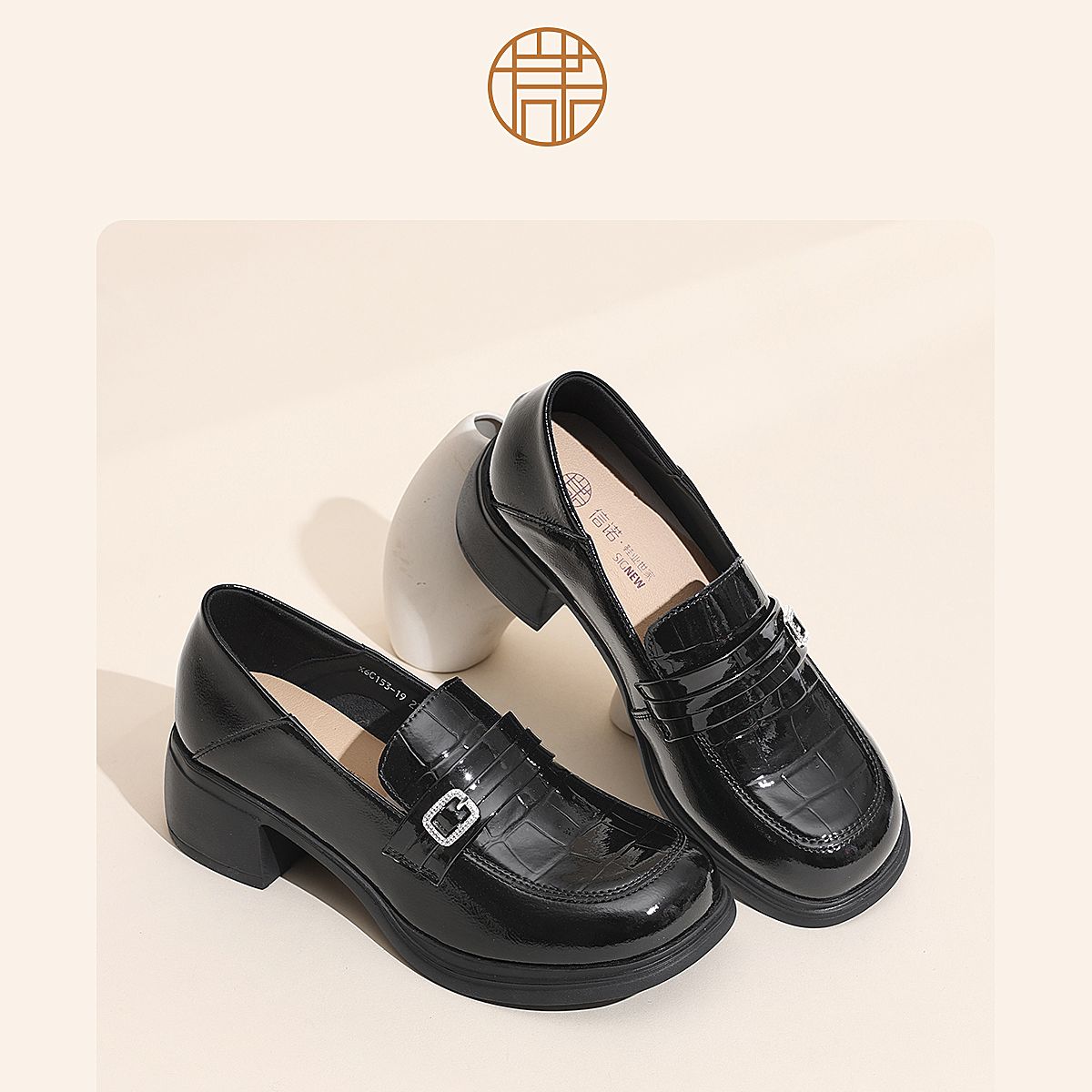 信诺妈妈鞋子英伦风漆皮乐福鞋女粗跟黑色单鞋小皮鞋2026春季新款X6C153-19
