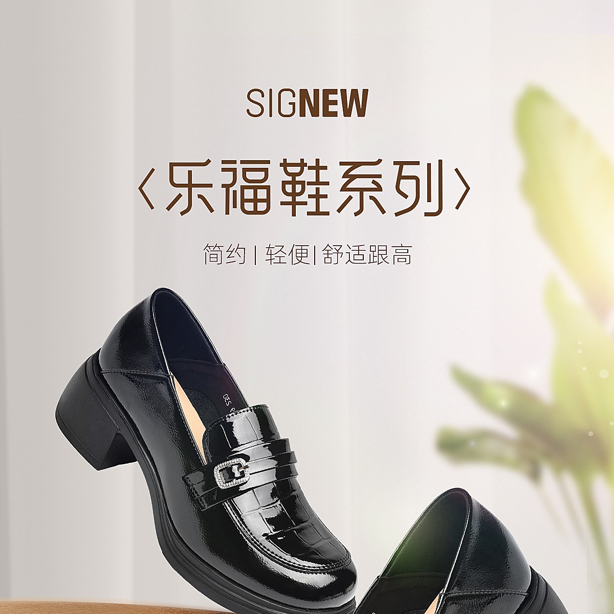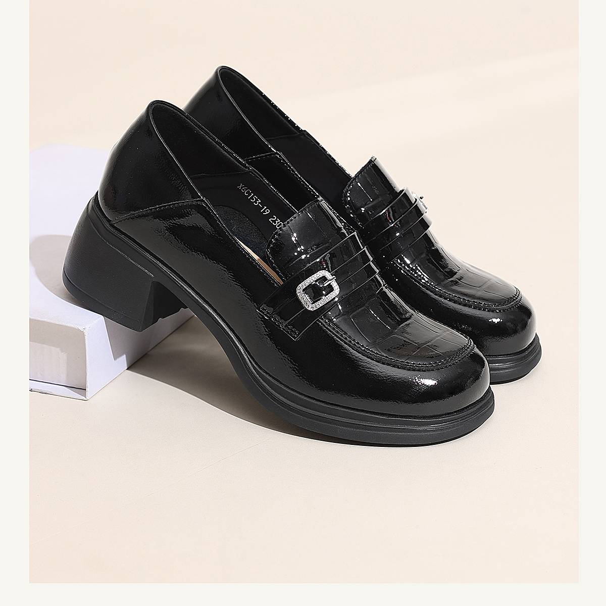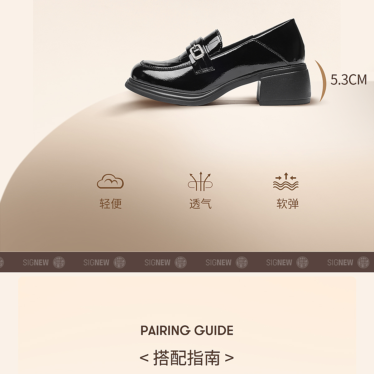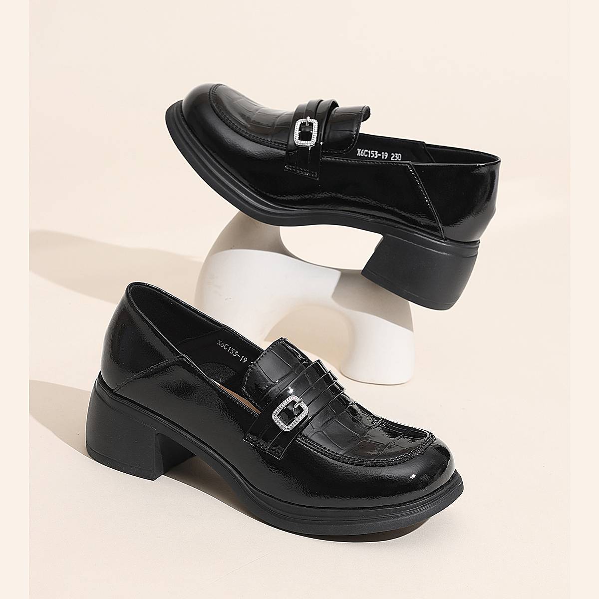 信诺妈妈鞋子英伦风漆皮乐福鞋女粗跟黑色单鞋小皮鞋2026春季新款X6C153-19