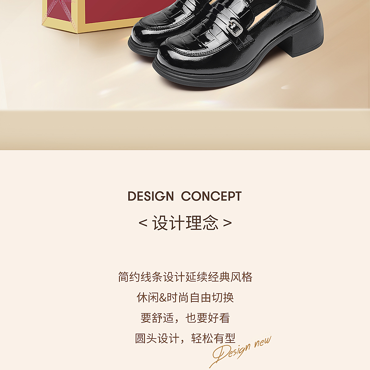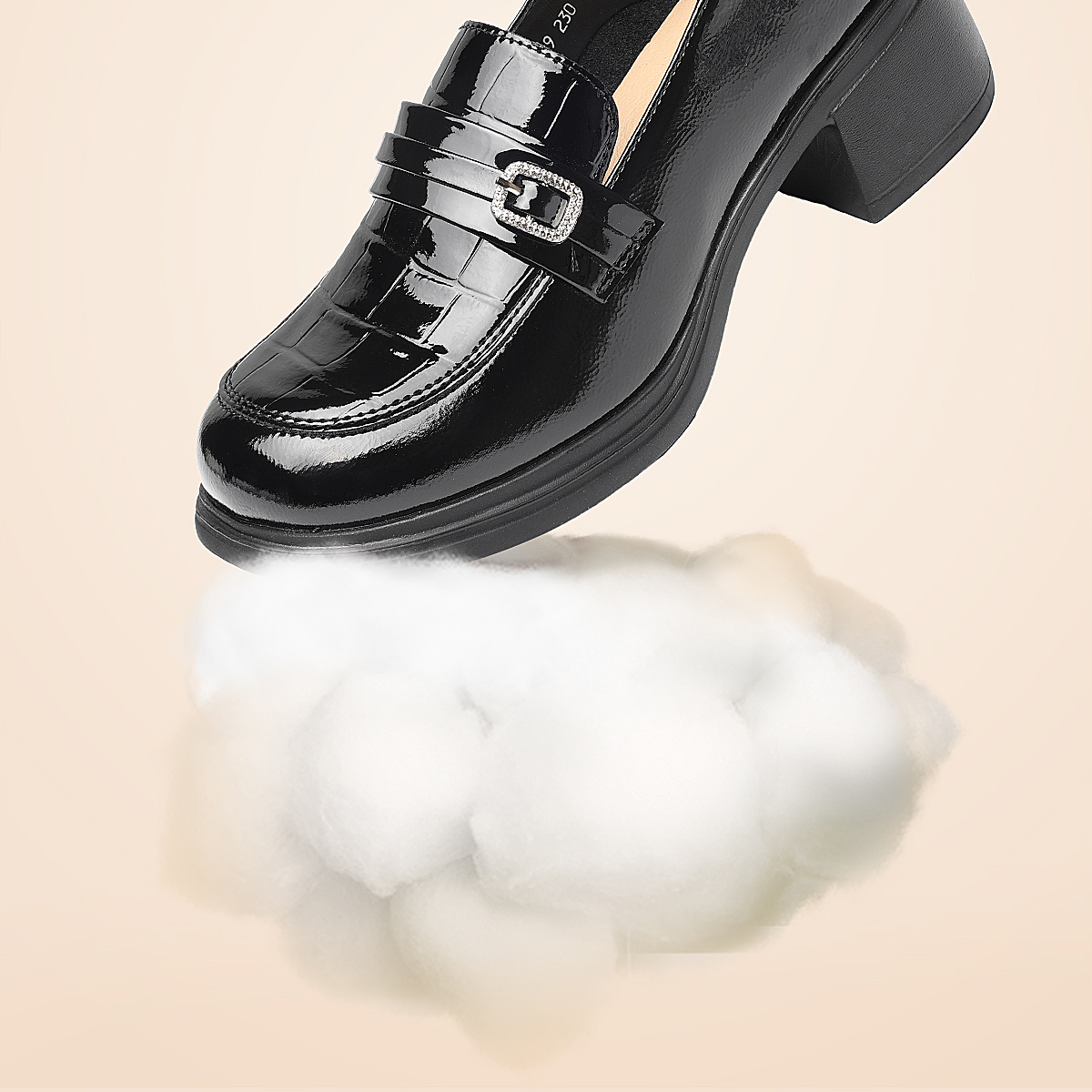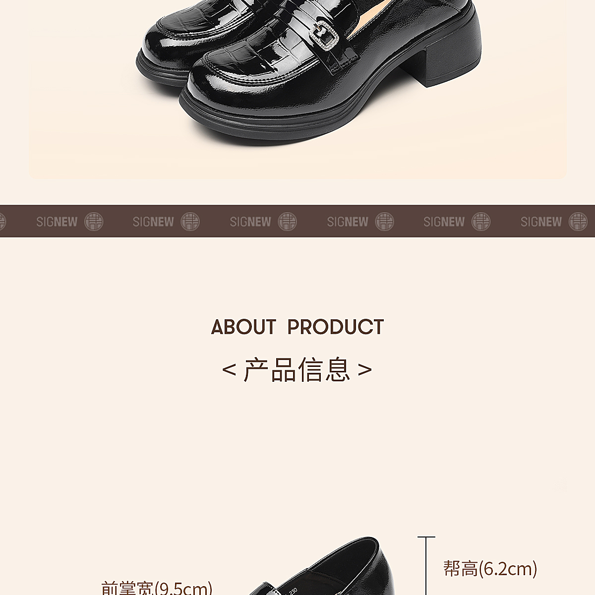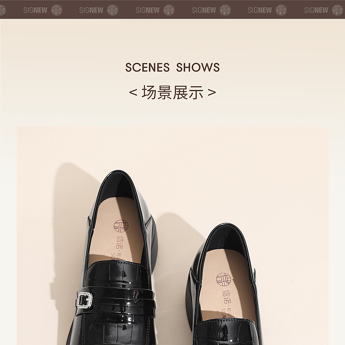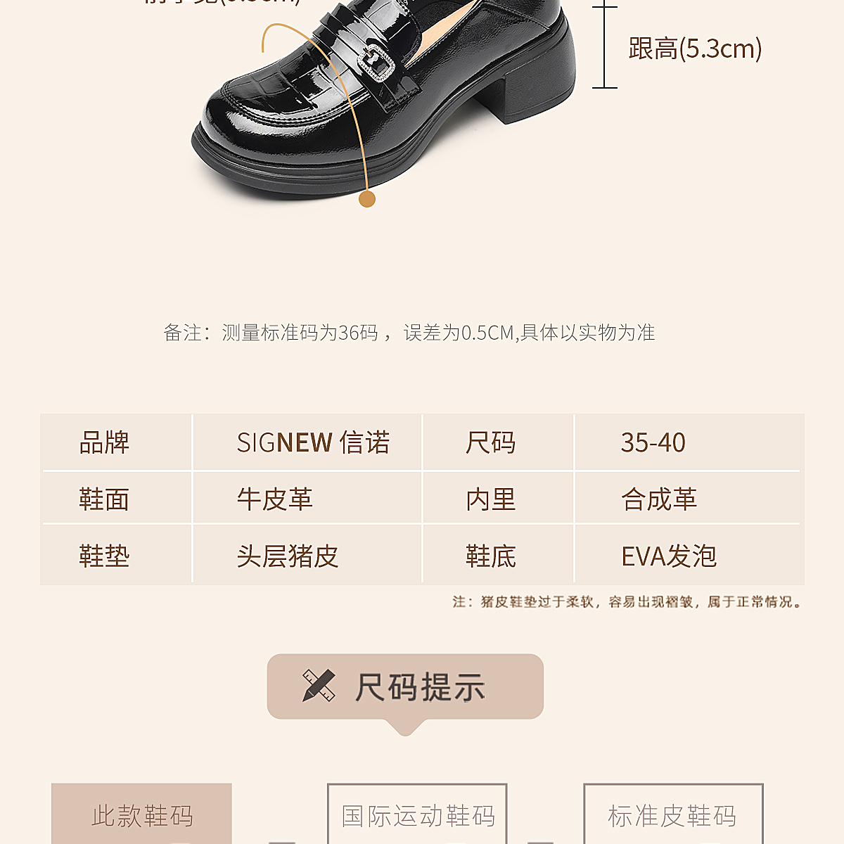 信诺妈妈鞋子英伦风漆皮乐福鞋女粗跟黑色单鞋小皮鞋2026春季新款X6C153-19