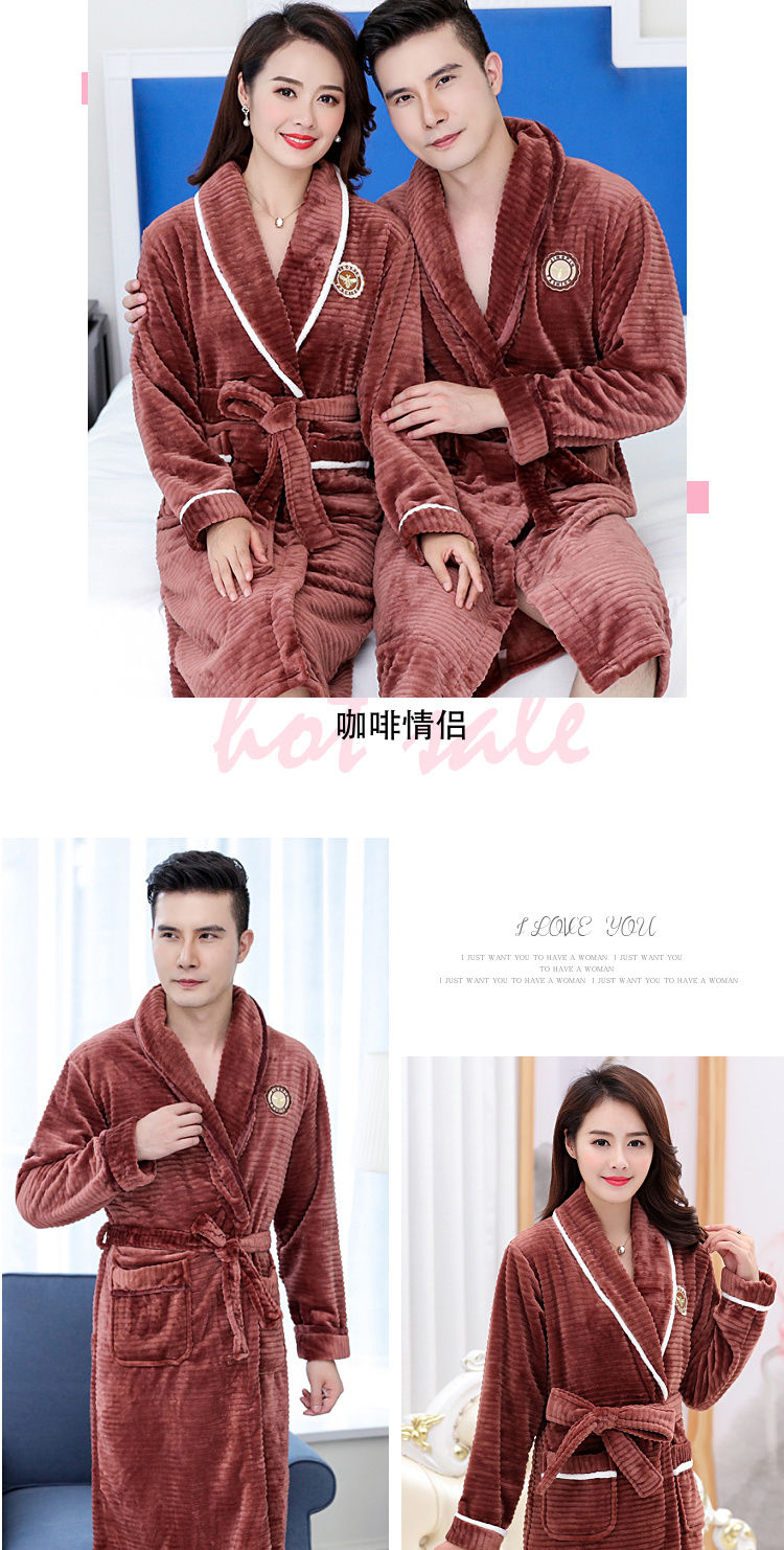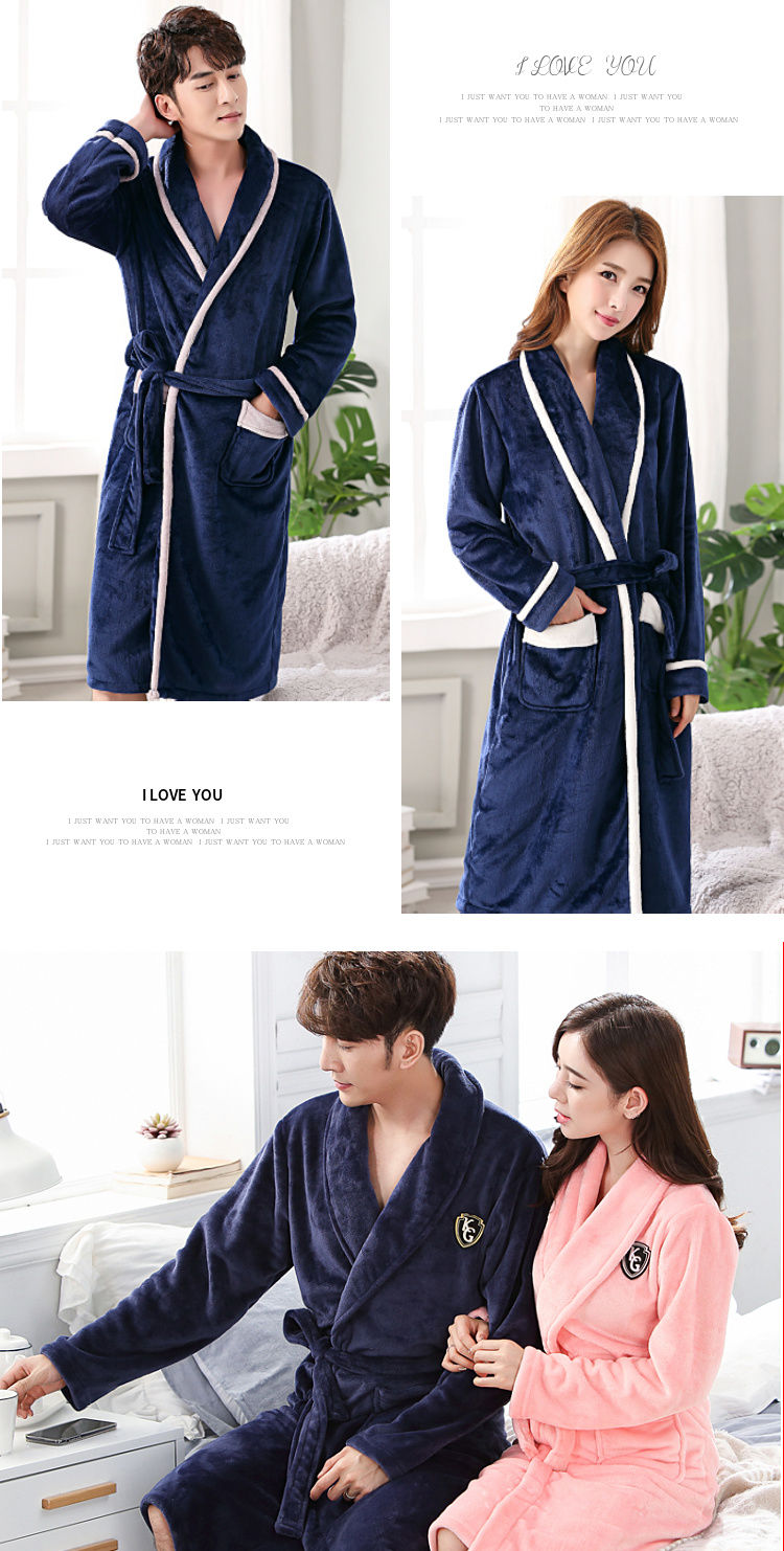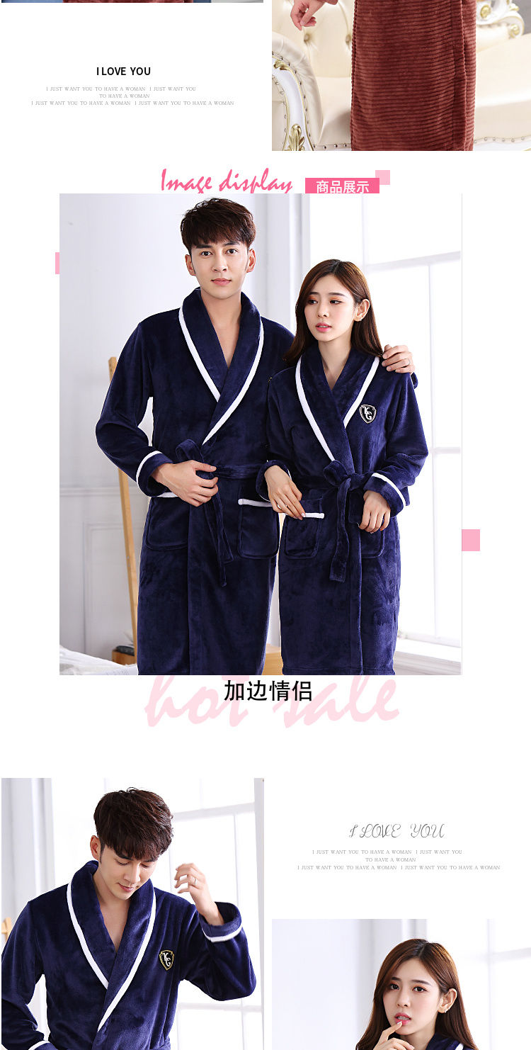【原创正品】冬季珊瑚绒情侣睡袍女加厚法兰绒浴袍男士大码家居服